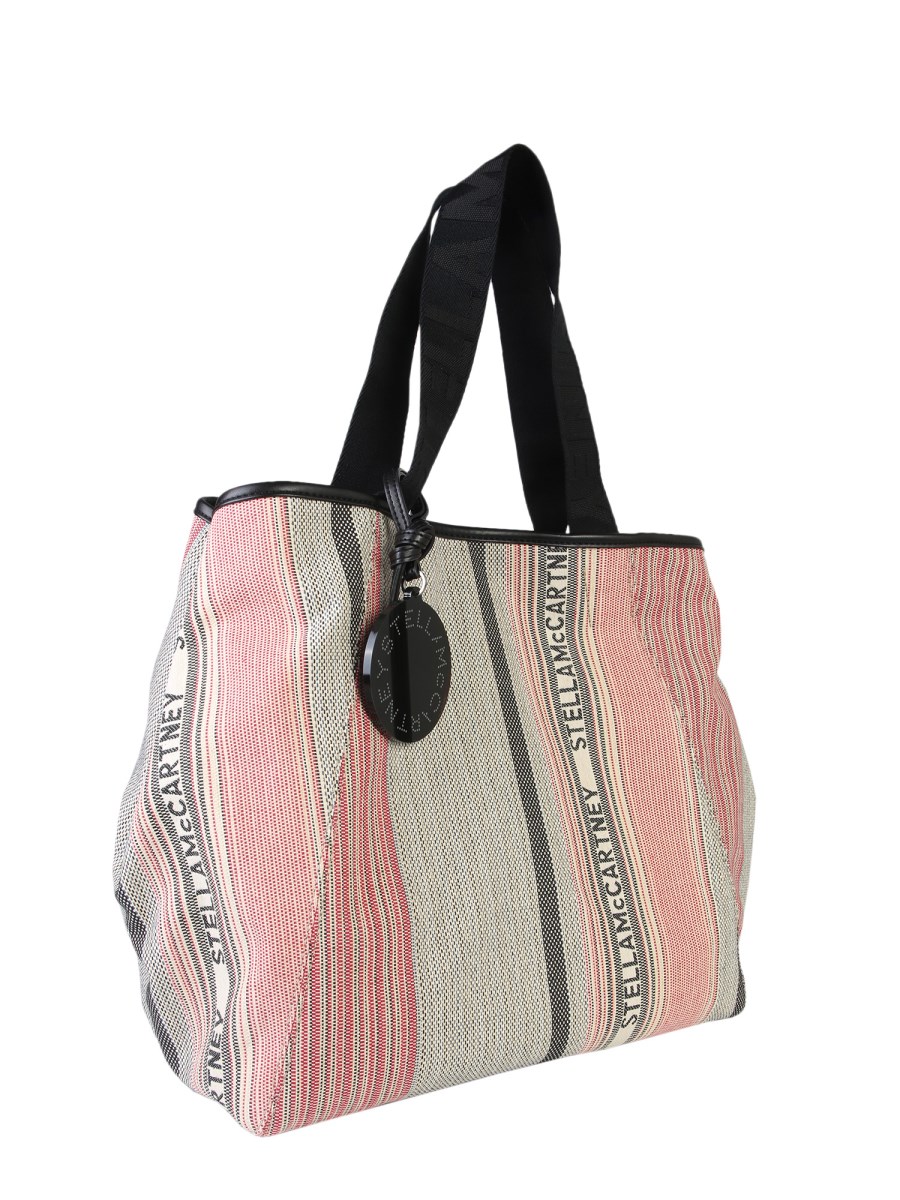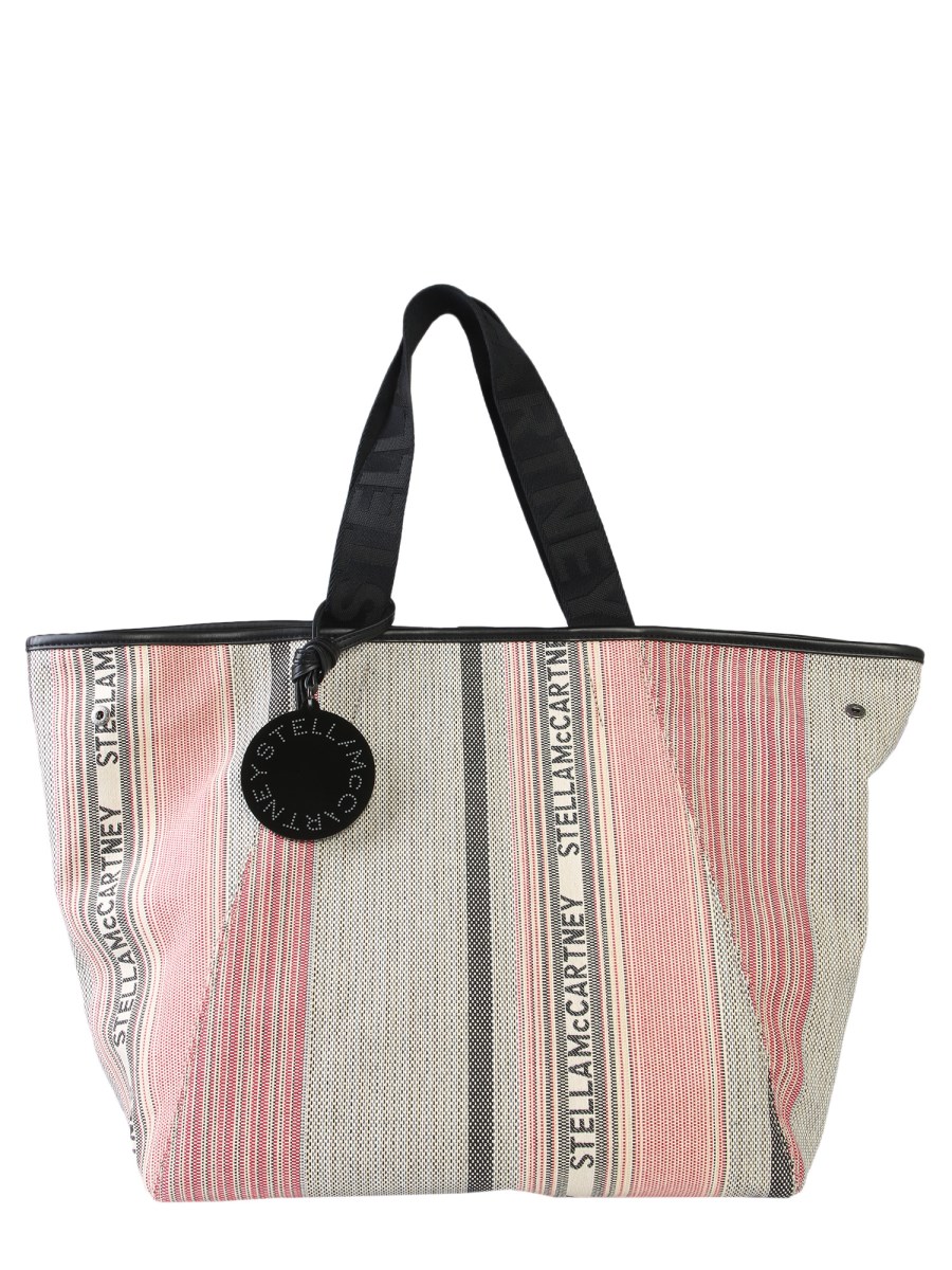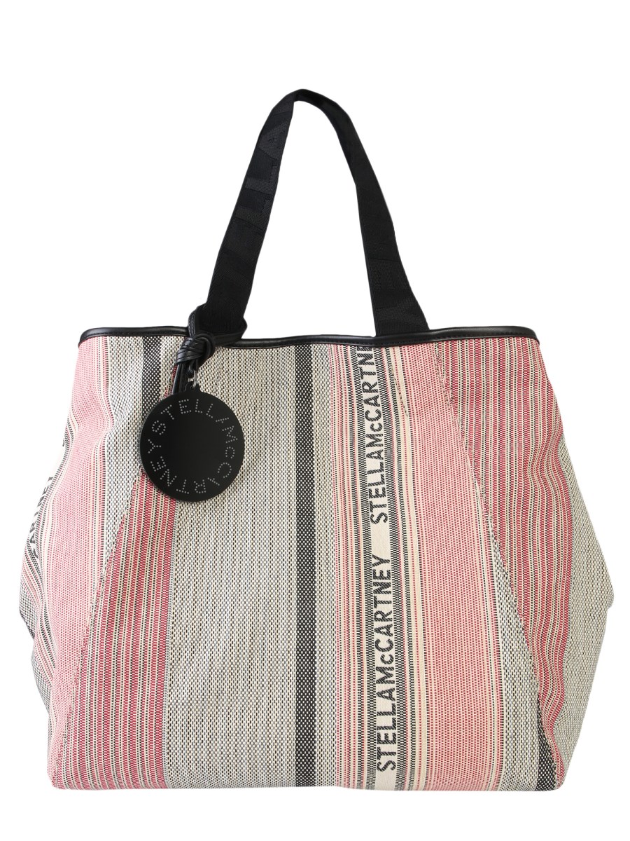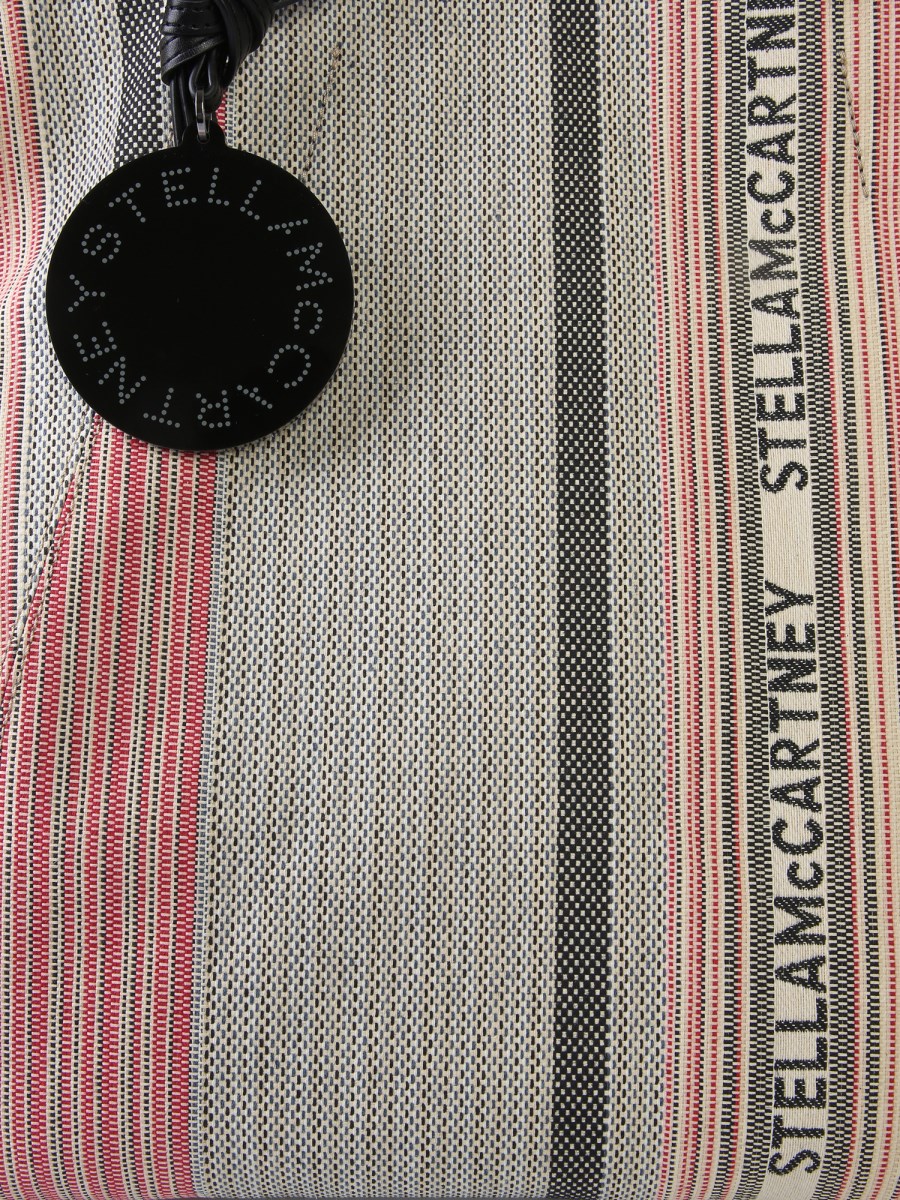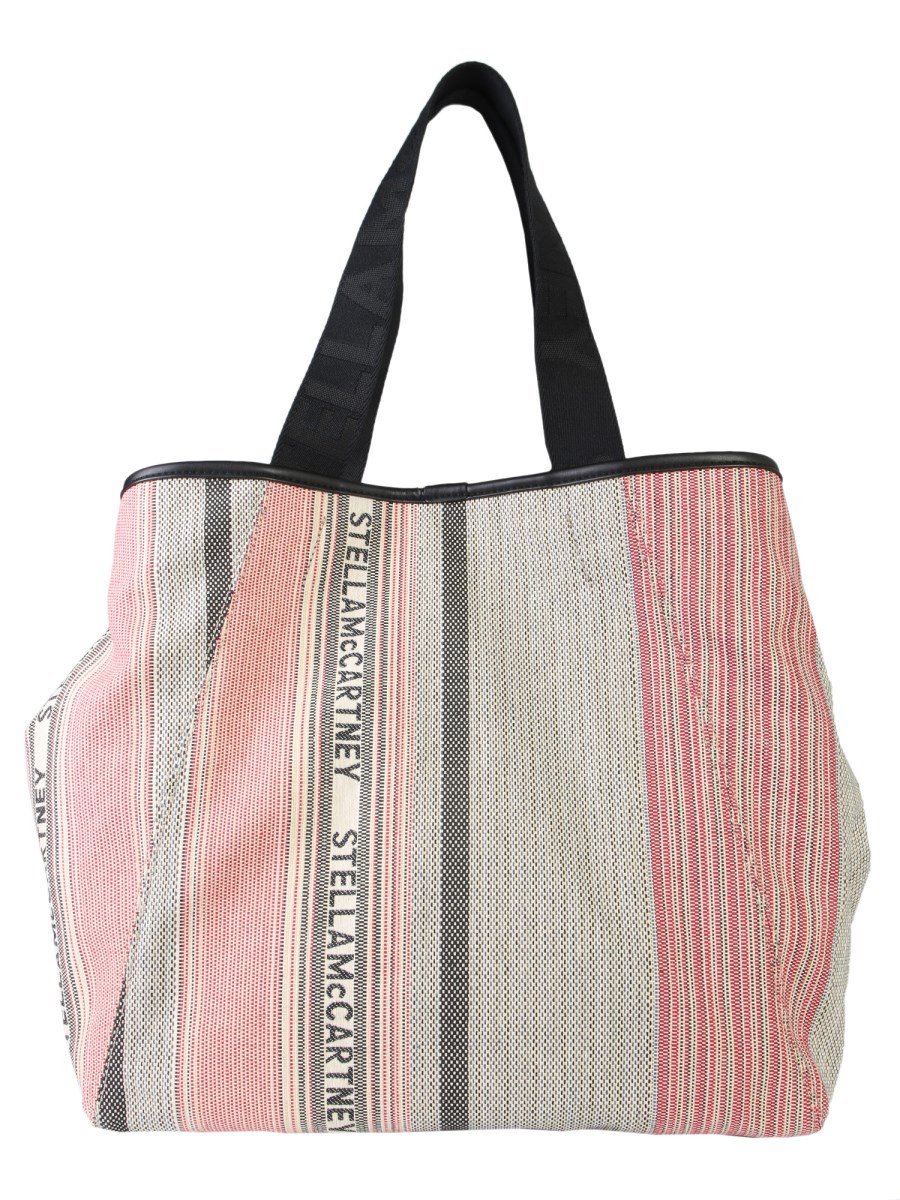 Keep your belongings handy by carrying this small patchwork tote bag from Stella McCartney. The bag comes with a magnet closure to ensure an easy opening. Its surface has vertical patches featuring the brand name. It looks classy with the subtle colours.