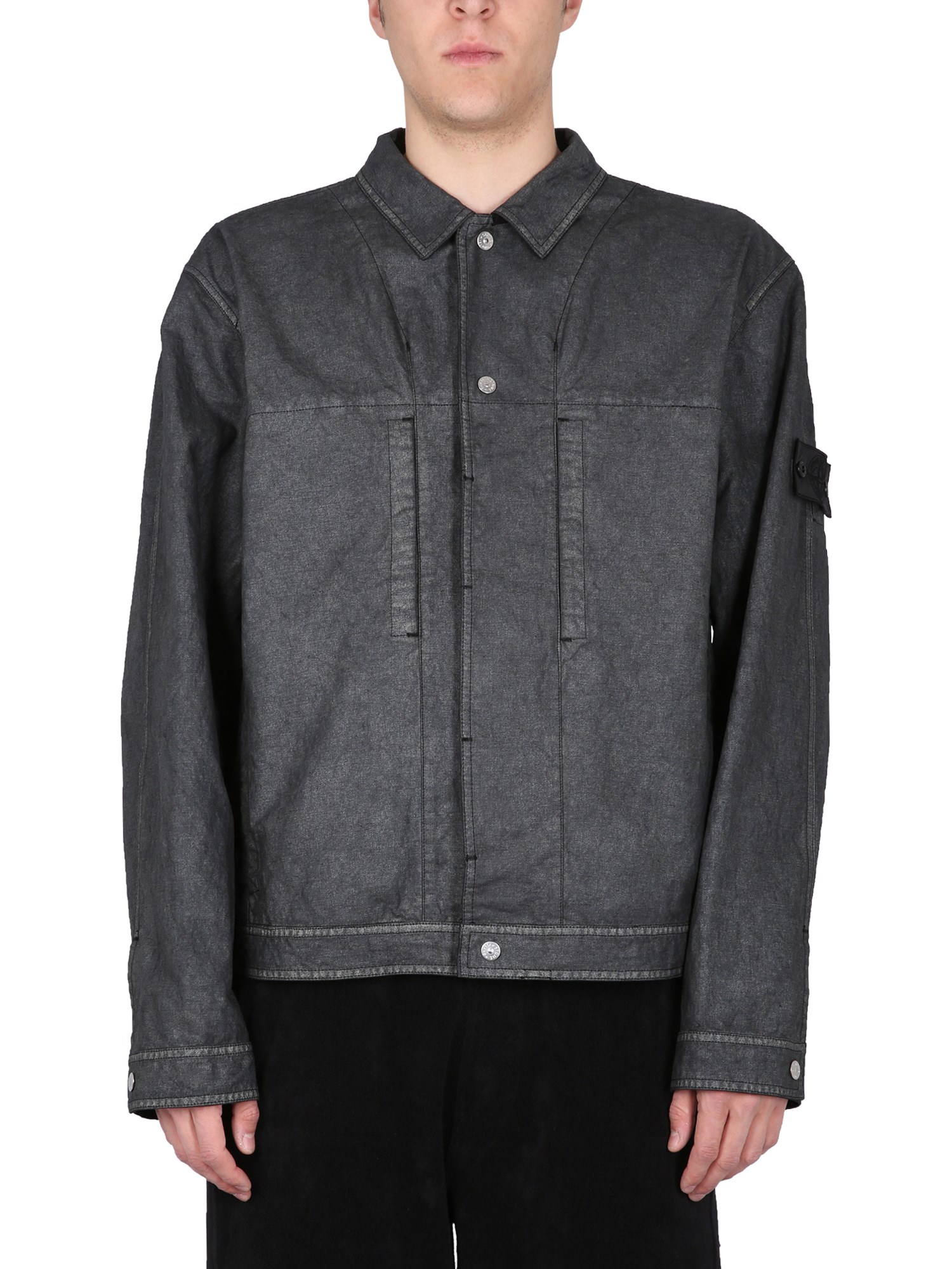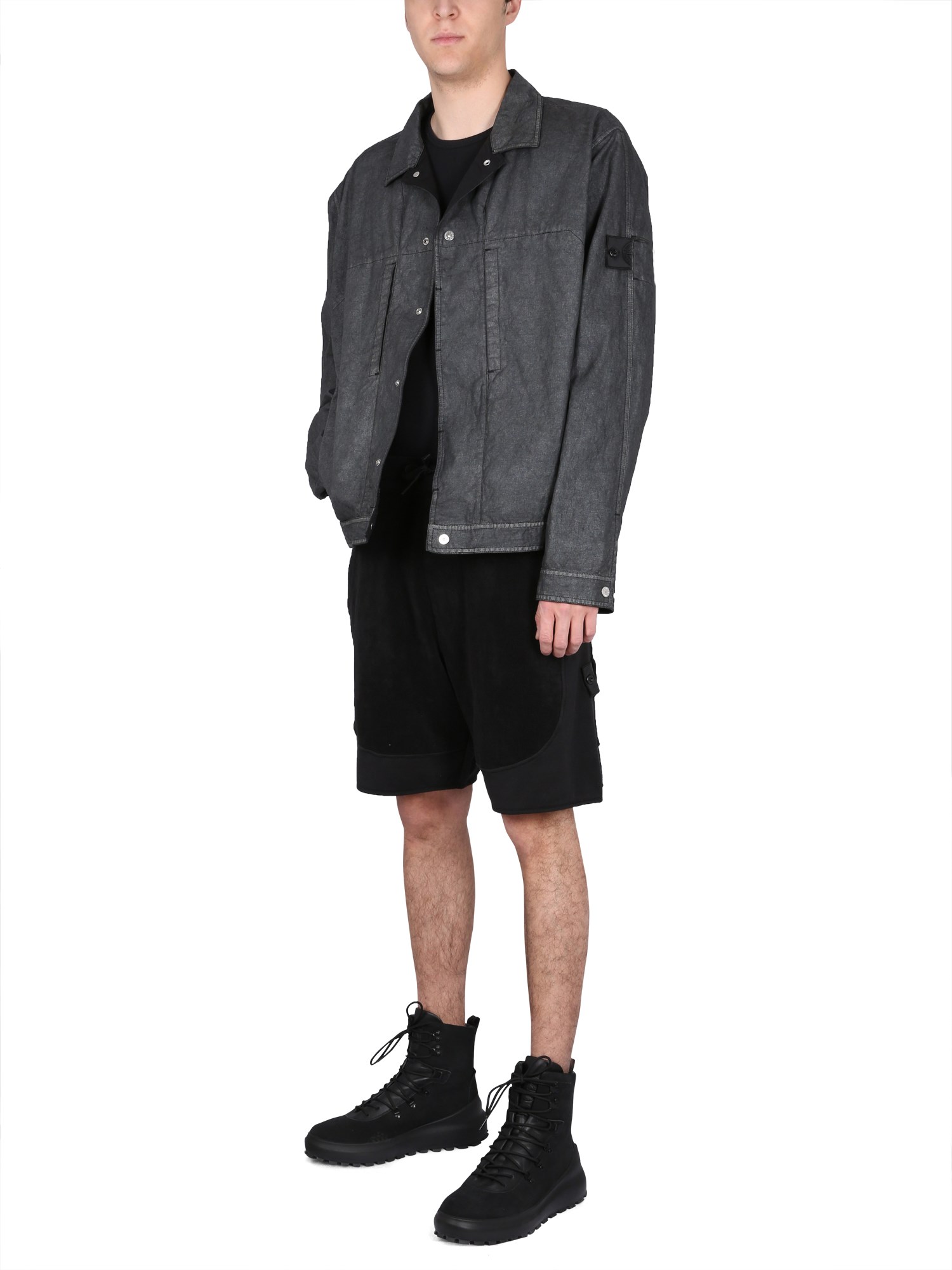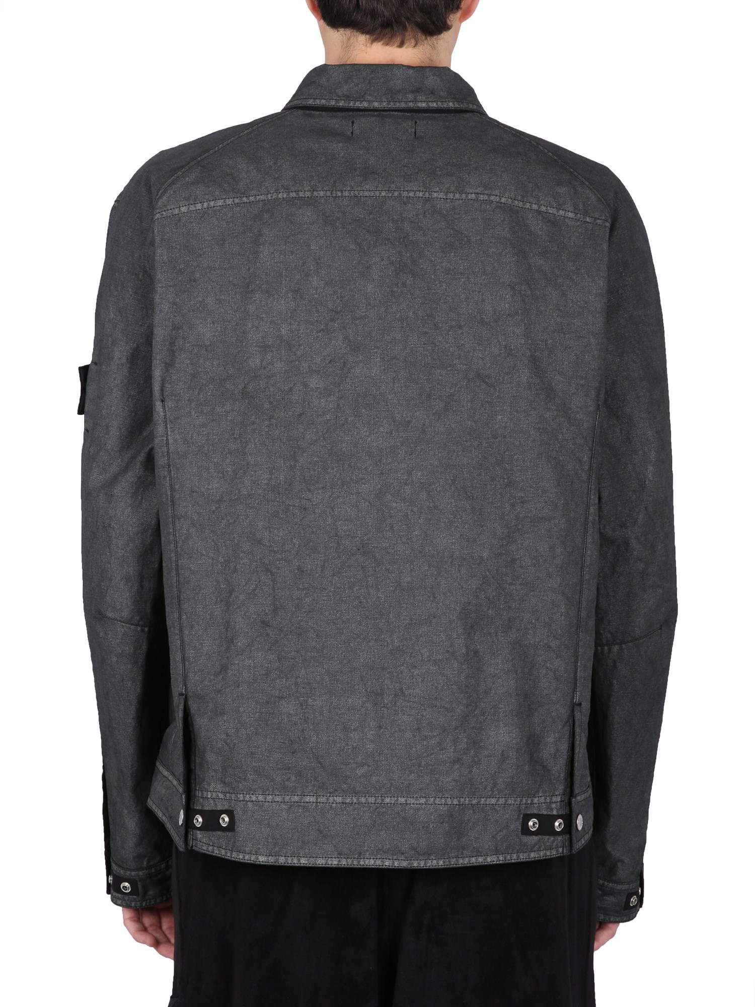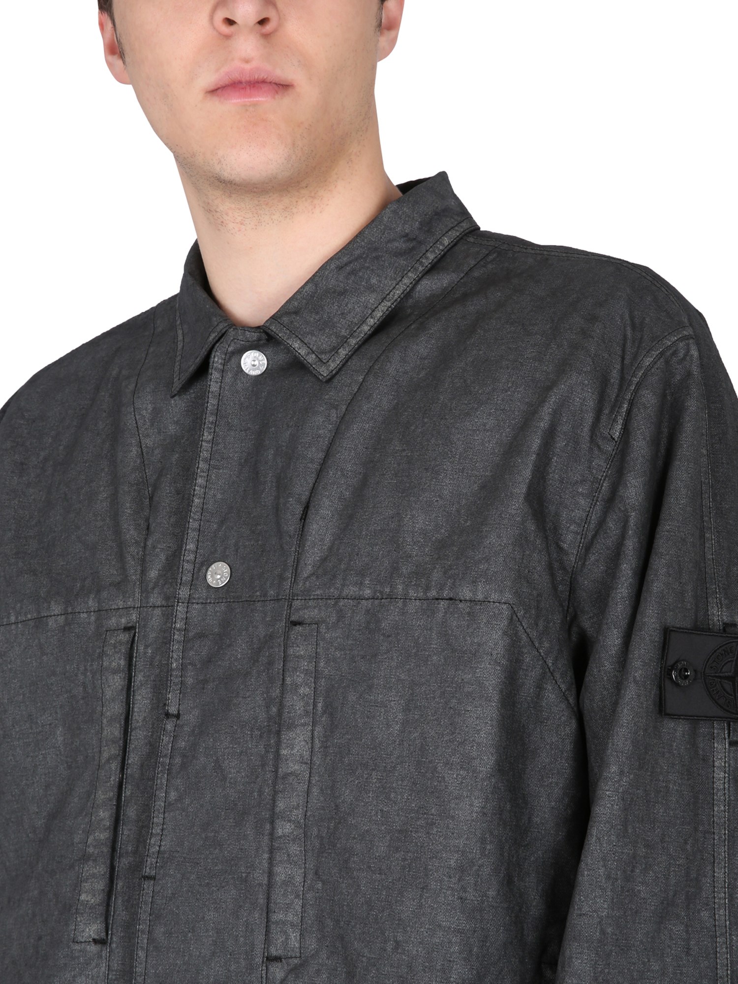 - CLASSIC COLLAR- BUTTON CLOSURE- TWO SIDE POCKETS- PATCH LOGO- 75% COTTON, 25% LINEN