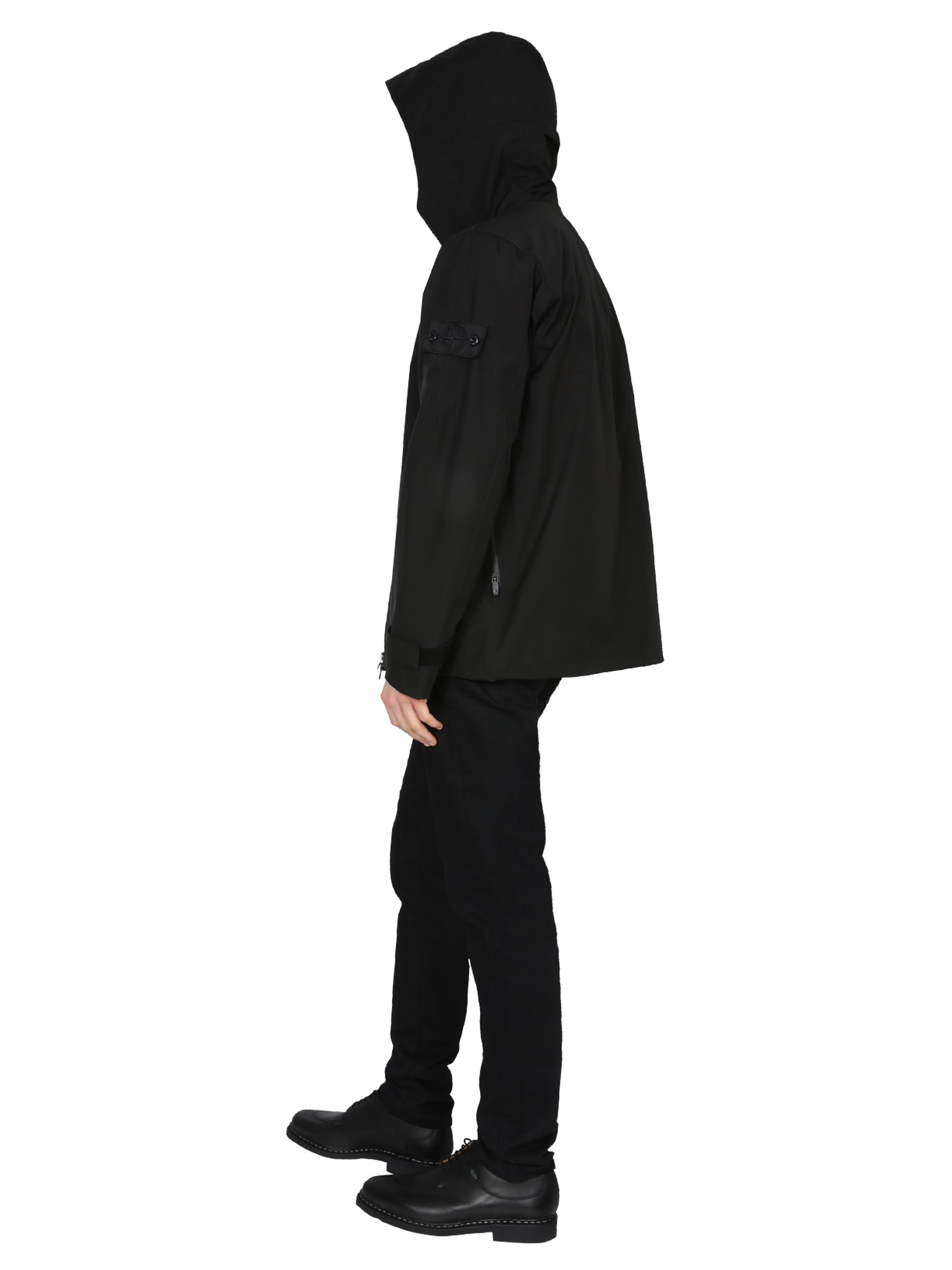 The Gore-Tex Paclite jacket by Stone Island Shadow Project is a product that provides a lightweight and water-resistant shell. The Gore-Tex Paclite jacket is designed to be used as a stand-alone or as a layer. It features a hooded tail neck, front zip closure, front zip detail, two side pockets, and an unlined inner. The sleeves showcase a logo patch.
