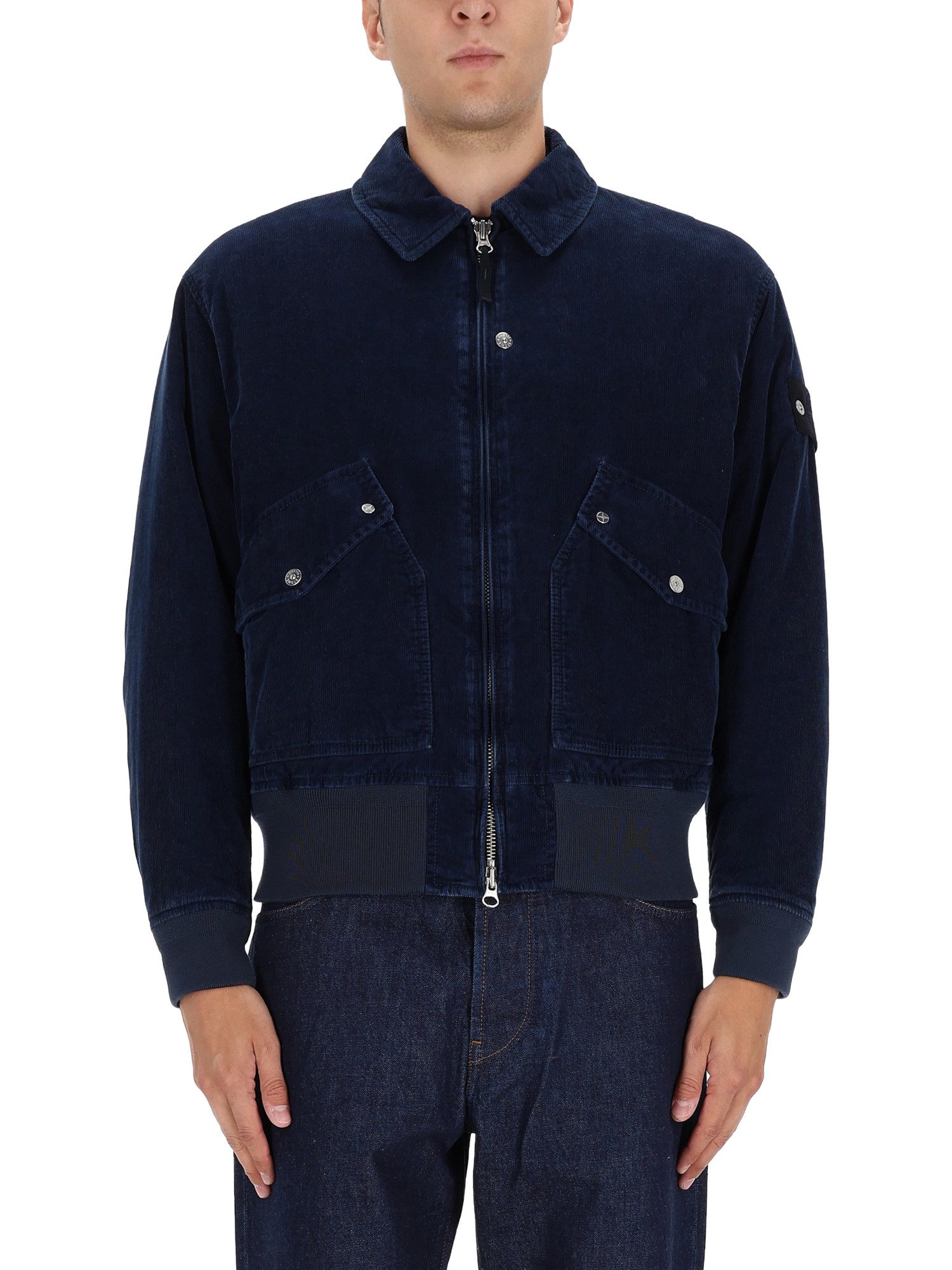 DENIM BOMBER JACKET WITH LOGO PATCH
