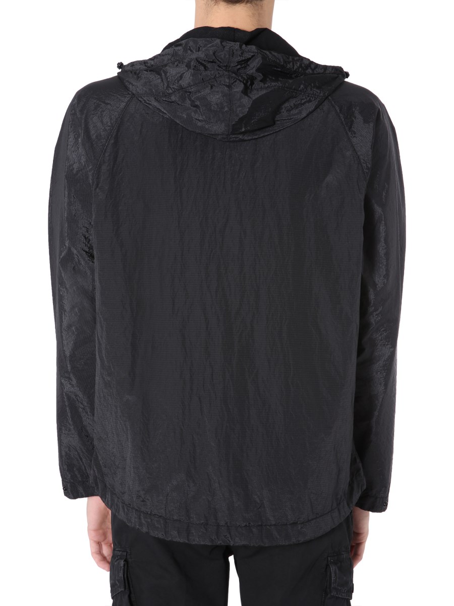 Complete your hiking or trekking outfit with the jacket by Stone Island. This nylon apparel has a lined inner that keeps you comfortable and cosy throughout the trip. It has a hood and zip closure with coulisse bottom. The jacket has two side zipper pockets to keep small essentials.