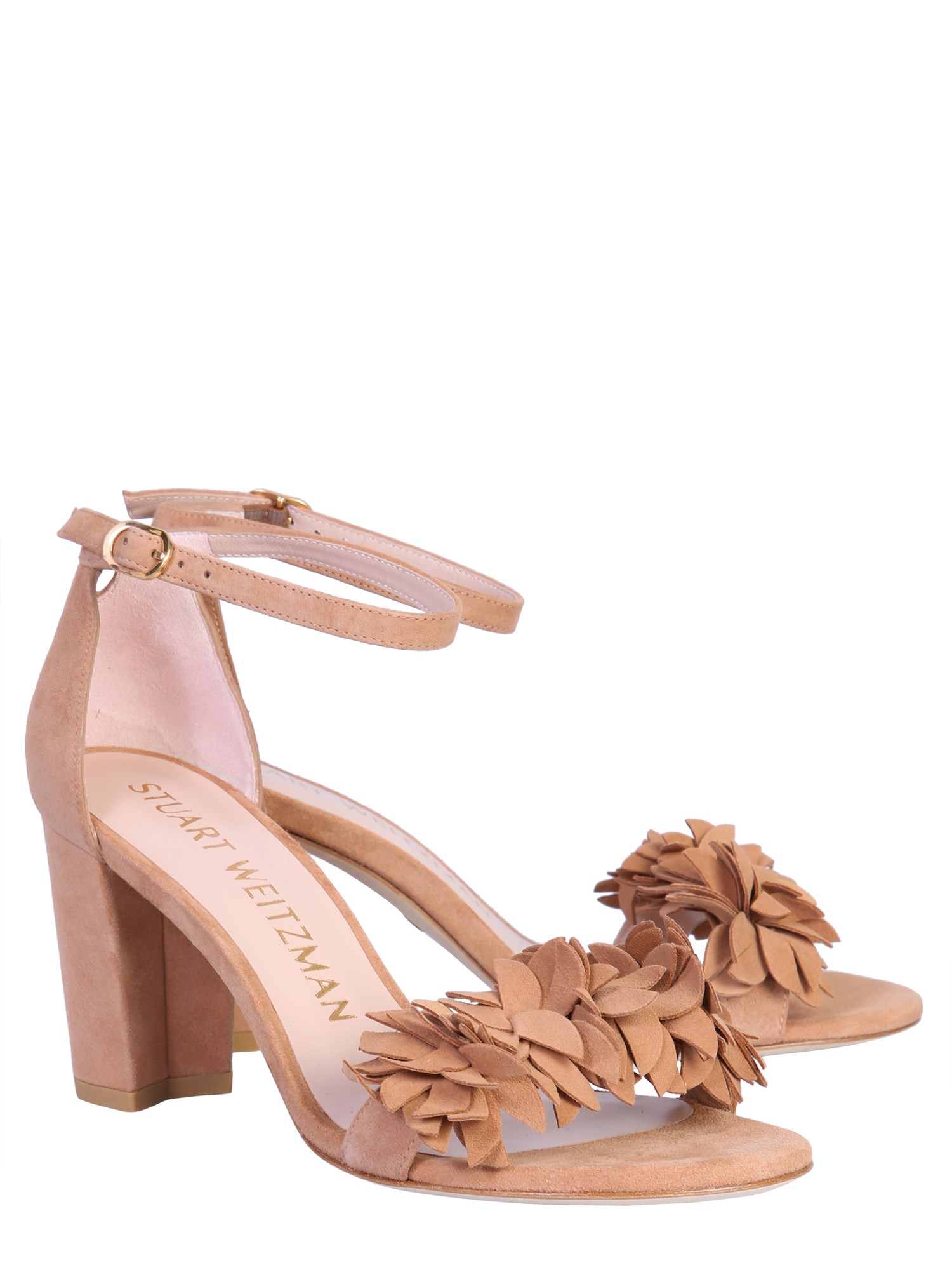 Every girl needs a pair of "nearly flower" sandals by Stuart Weitzman that goes with party, casual and official attires. They have 7cm block-shaped heels to let you walk gracefully on all surfaces. The flower detail on the front band adds a feminine and chic appeal to the look.