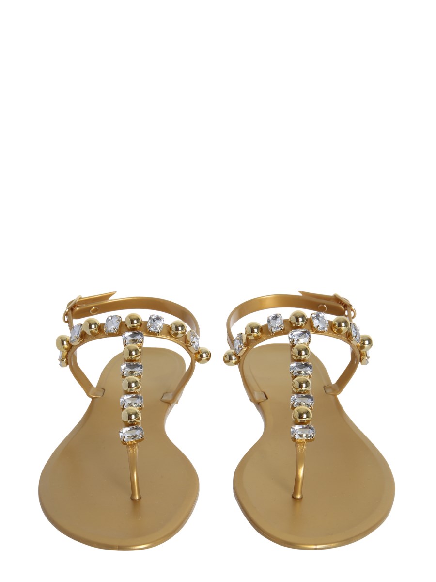 - JELLY THONG BANDS UPPER WITH CRYSTALS AND METAL BALLS
