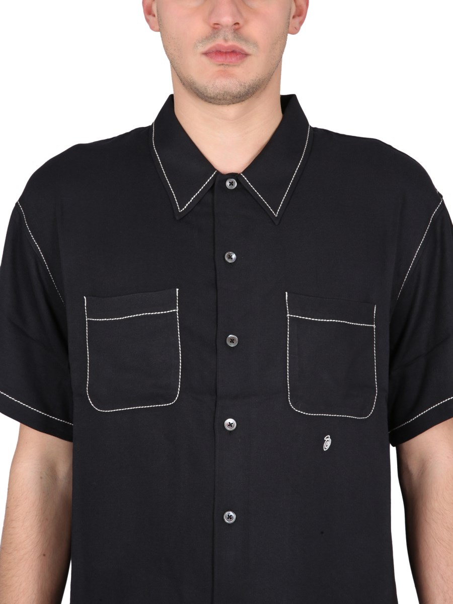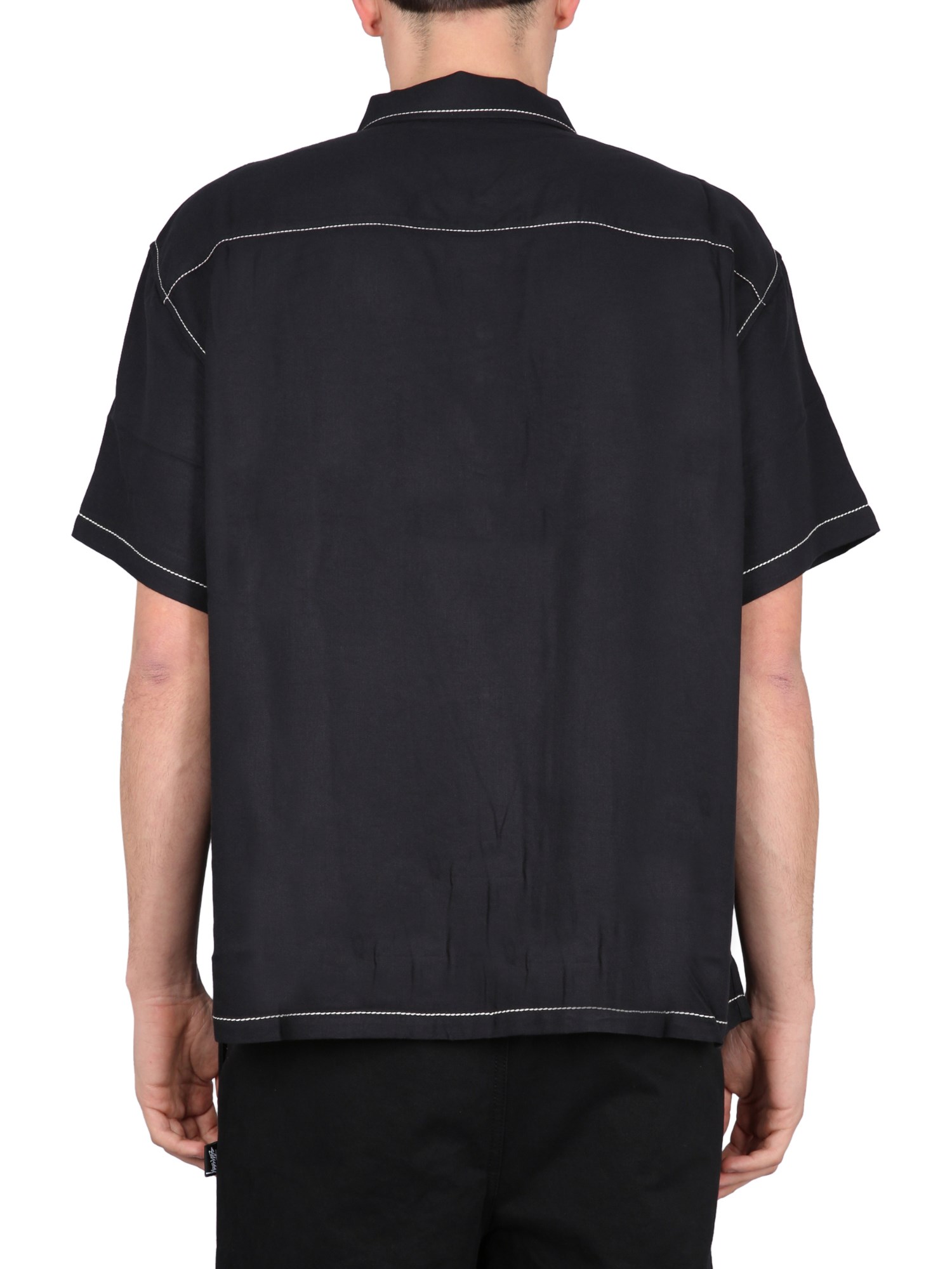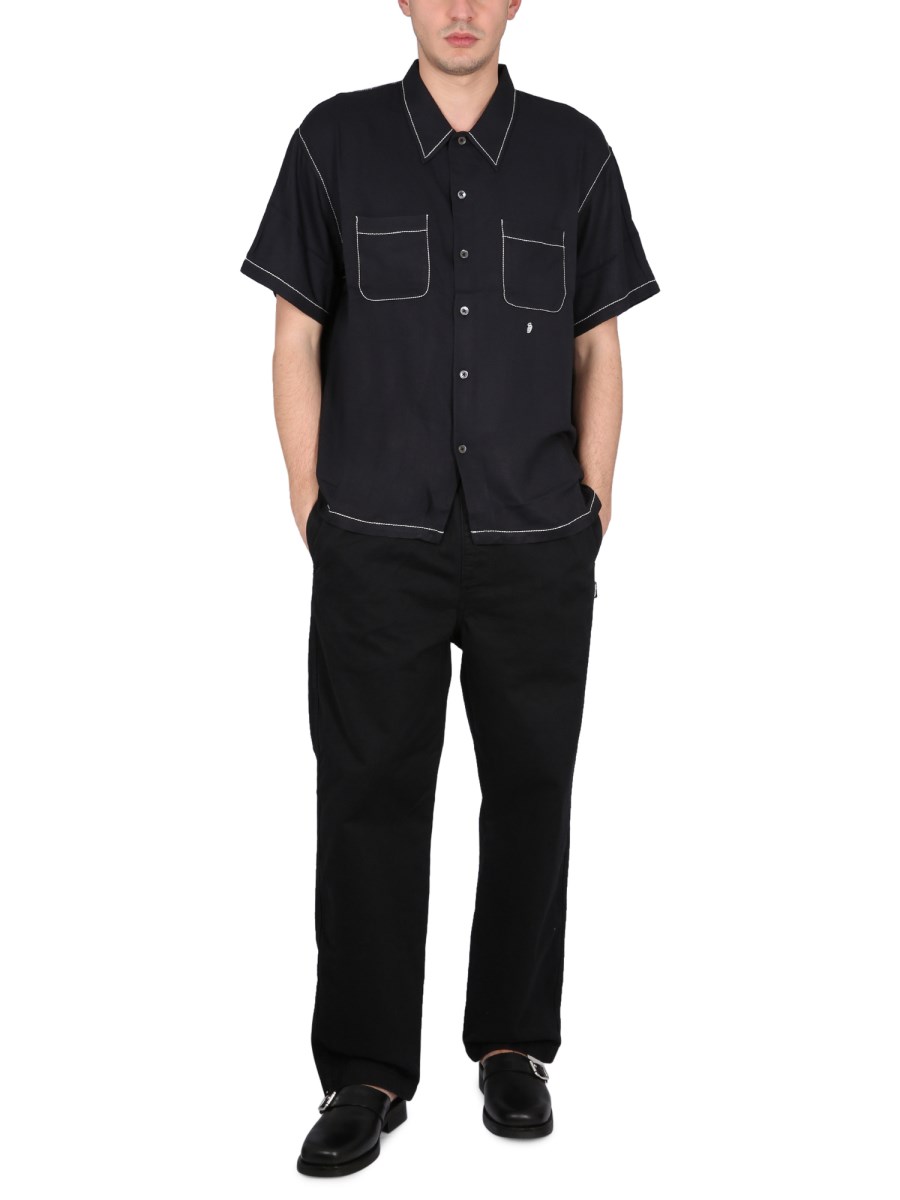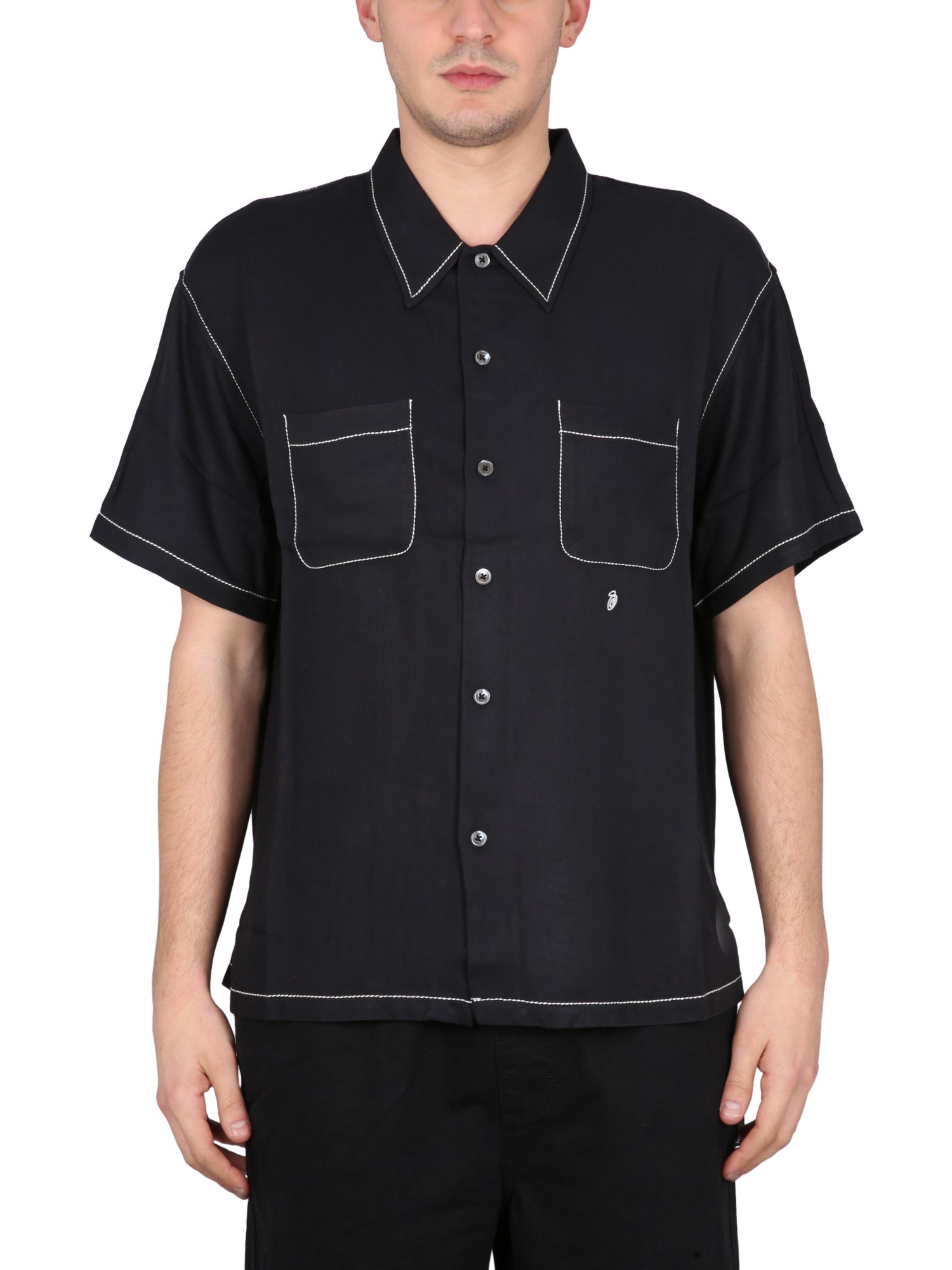 The shirt from Stussy is a great piece to pair with a blazer or jacket for a professional look. It's a versatile, on-trend shirt that looks great paired with a pair of jeans and boots. This viscose shirt has a classic collar and two patch pockets. The contrast stitching on the sleeves, collar, and back give it a cool and stylish vibe.