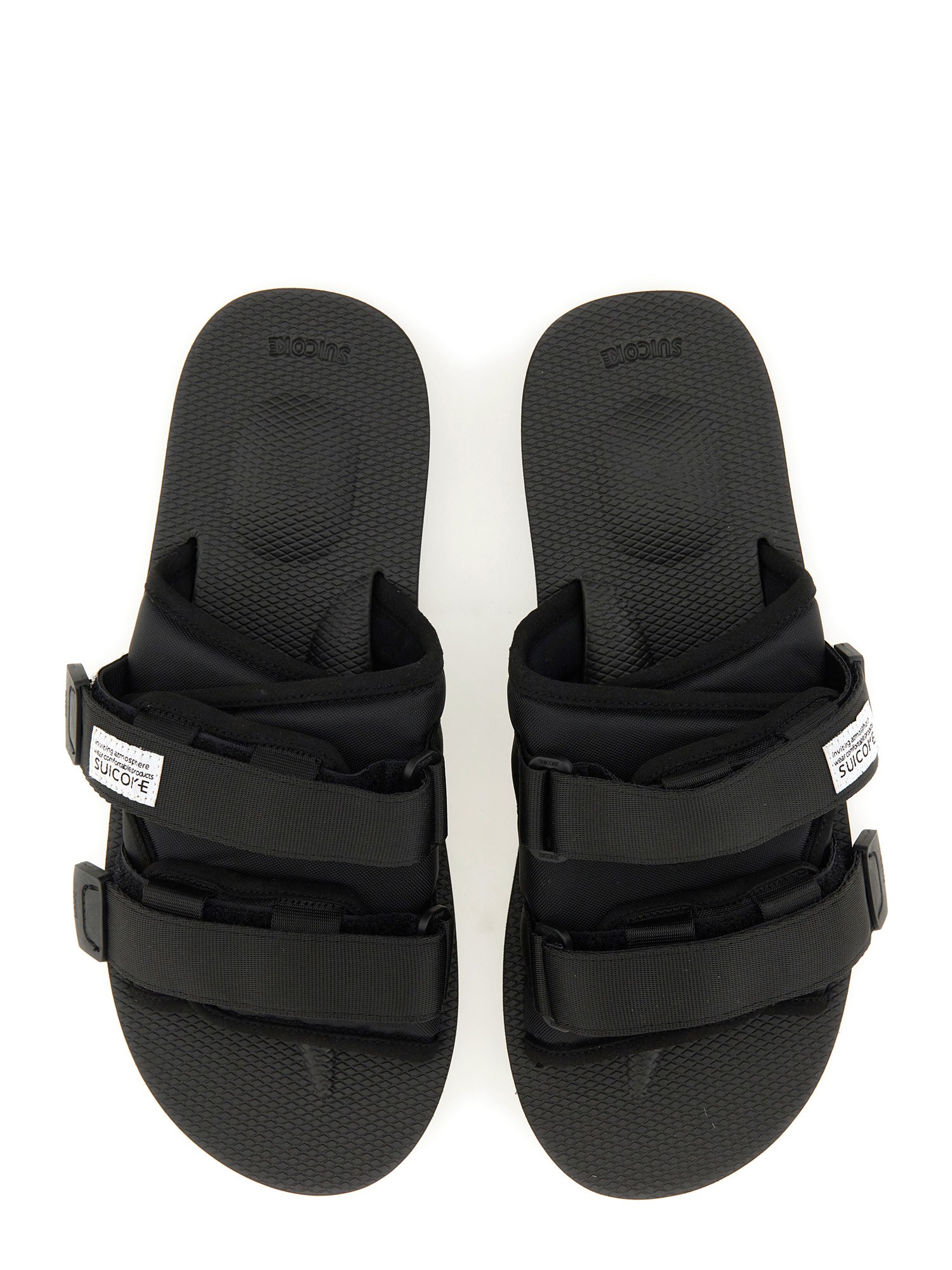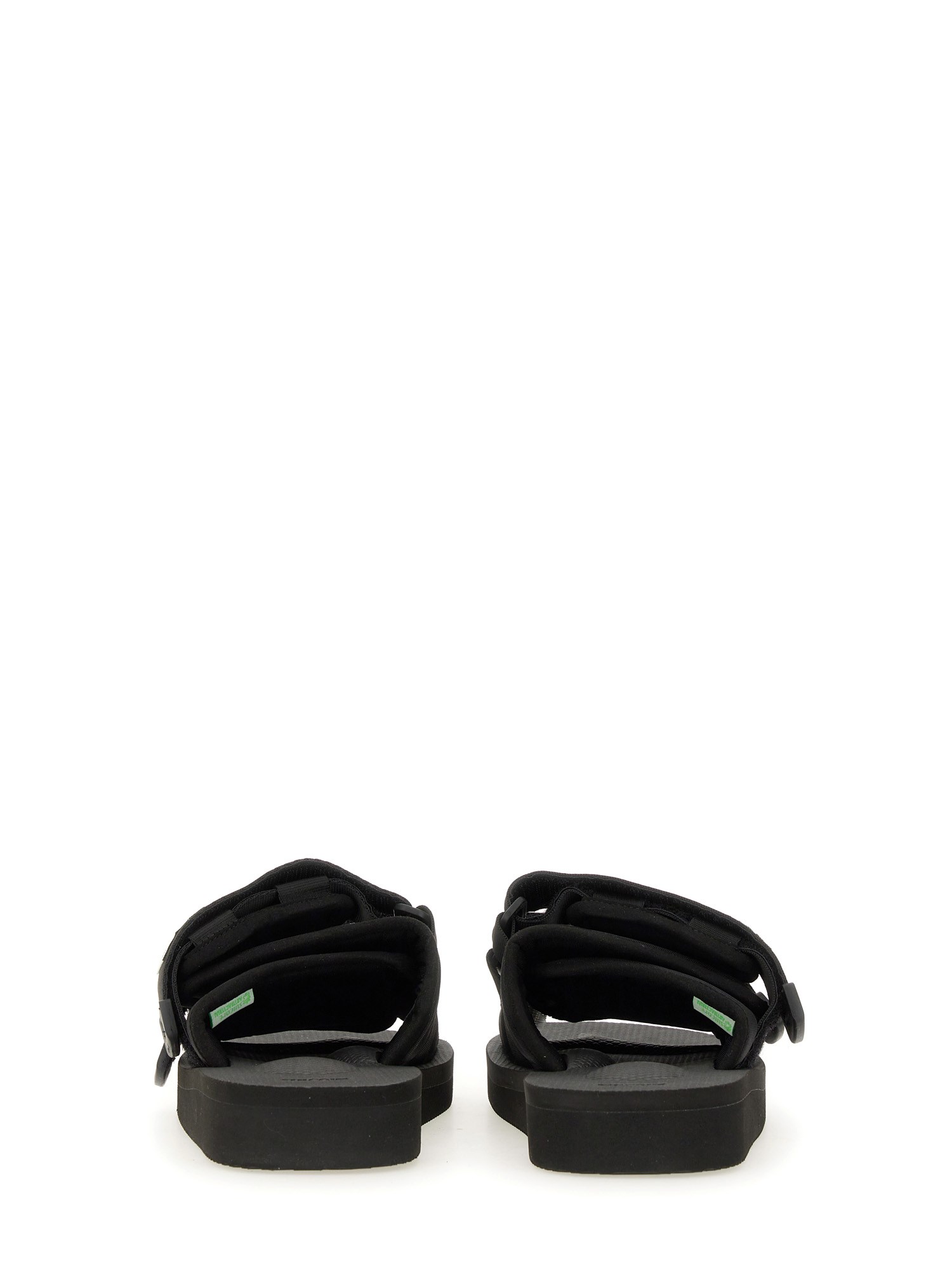 These open toe, open heel double strap black slides from Suicoke are the perfect combination of style and comfort. The sleek black colour makes them versatile for any outfit, while the double straps provide extra support and stability.
