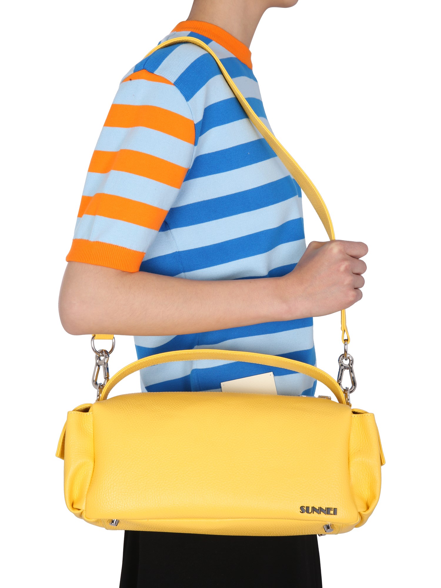 A stylish and versatile pick for your next party, the Labauletto hammered leather bag from Sunnei features an eye-catching front logo with a spacious interior. It features a lined inner, zip closure, two side pockets with flap, and metallic feet at the base. The bag has a leather shoulder strap and upper handle for ease of carrying. With the metallic feet at the base, the bag stands still wherever you keep it.