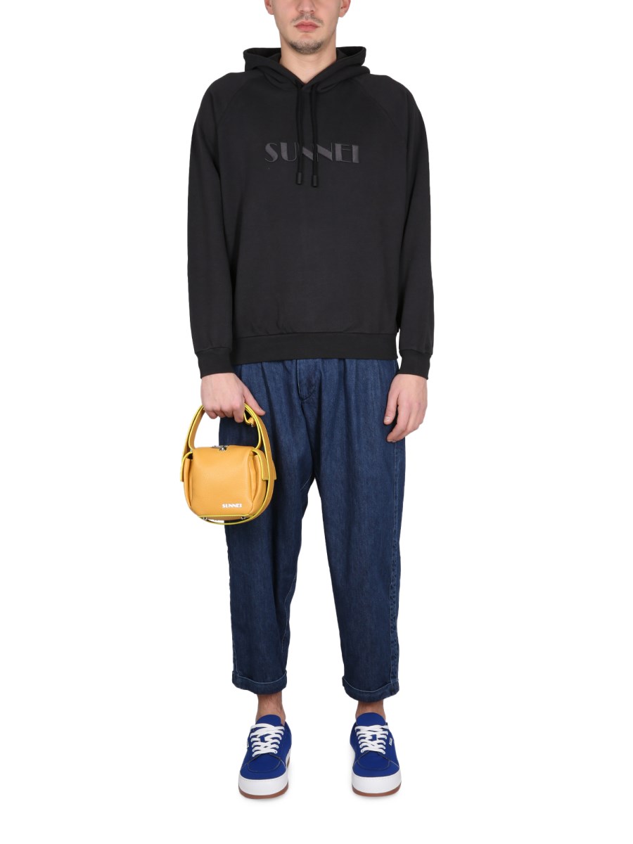 This stylish, comfortable, sweatshirt from Sunnei is a perfect addition to any wardrobe. This is a comfy, super soft sweatshirt with an embroidered logo front. The drawstring hood is super cute and the regular fit is just right. This is the perfect hoodie for layering or for staying cosy.