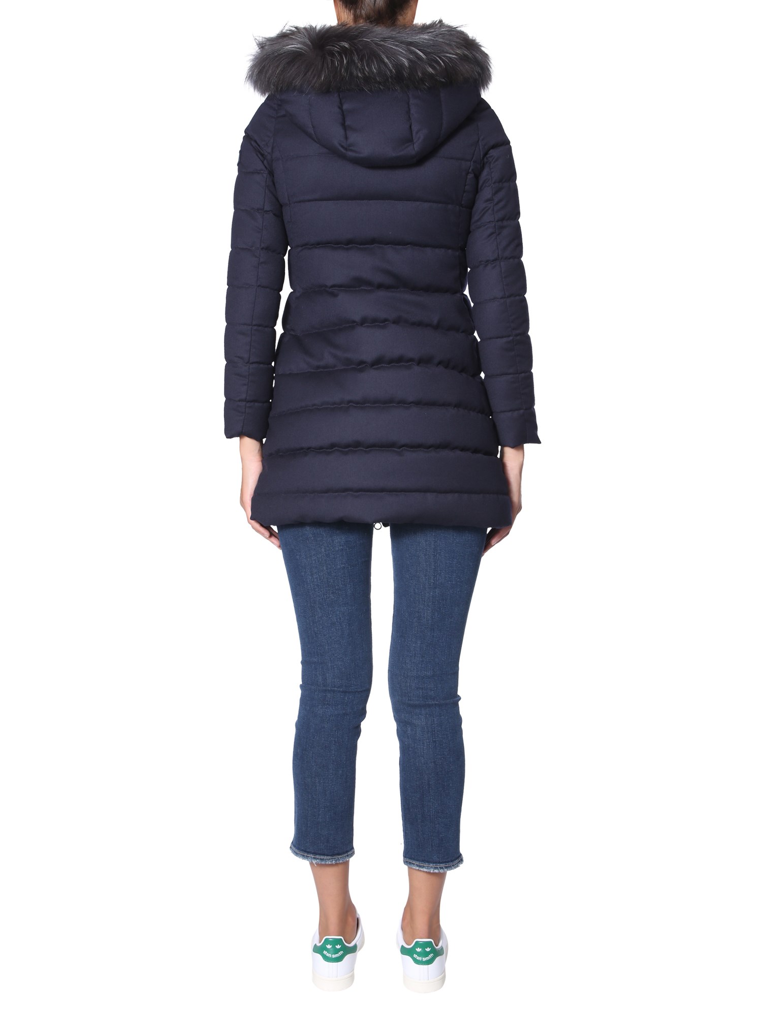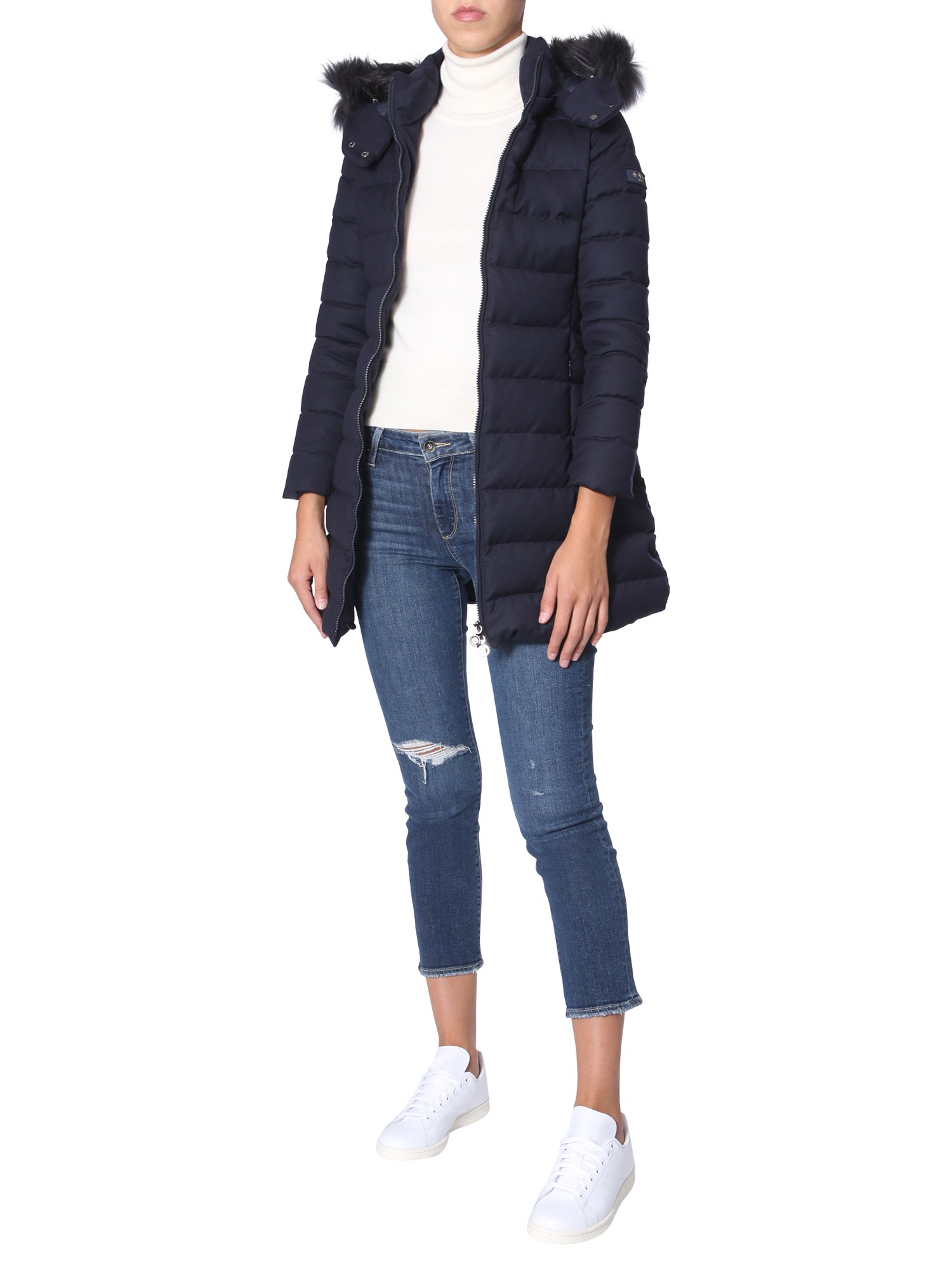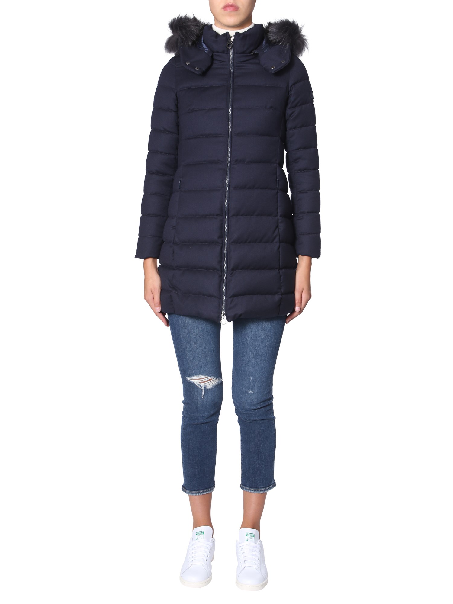 Look great wearing the Laviana down jacket from Tatras that comes with a removable fur hood. The tufted exterior is made from 100% nylon material while the interior is lined with a soft fabric. The two side and inner pockets help you carry some essentials while the front zip closure provides complete protection from cold and chilly winters.