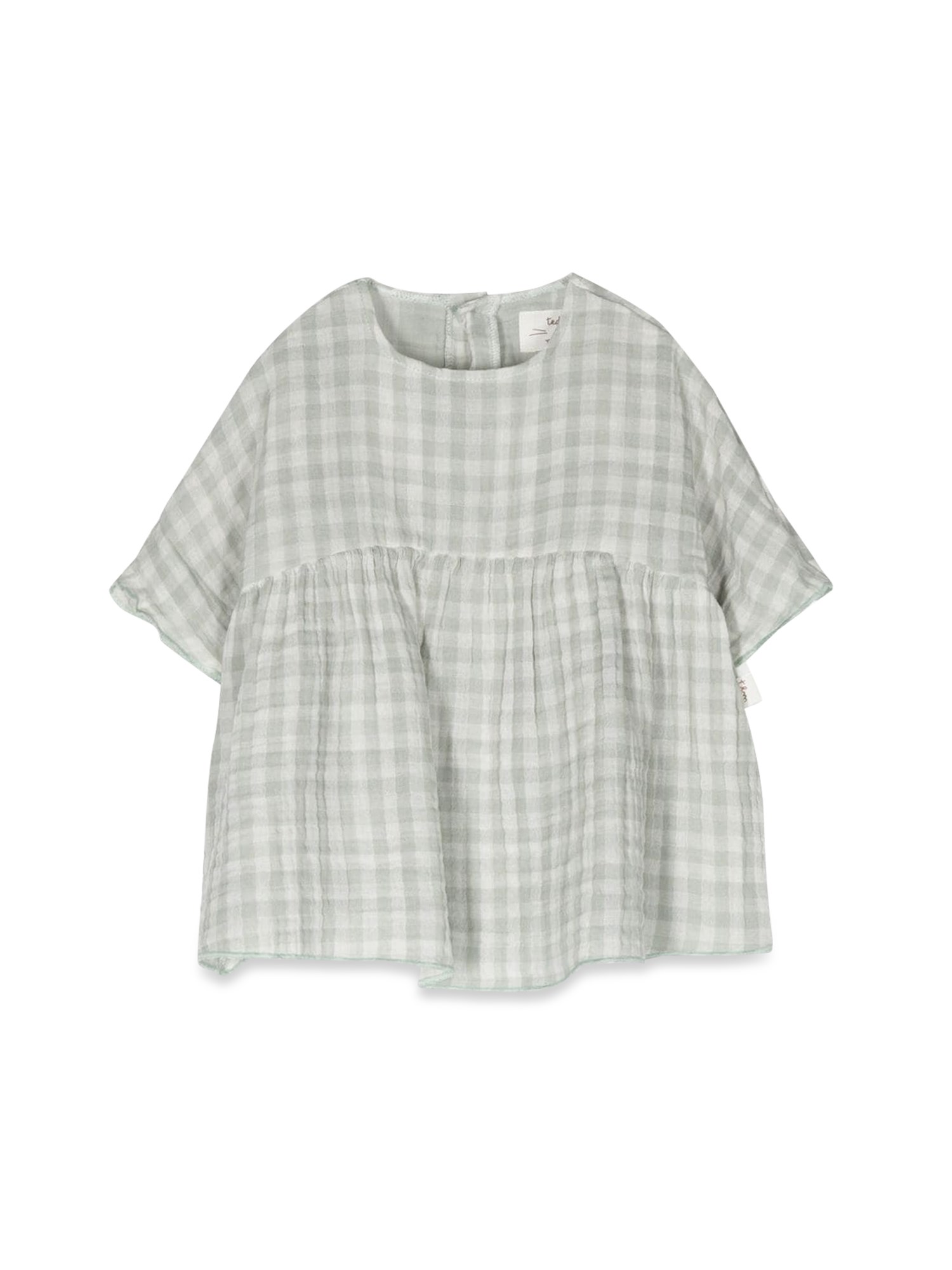 Make a style statement in the checkered dress from Teddy & Minou. It features a round neckline, short sleeves, and a flowy skirt. The dress has a back button closure and is adorned with a checkered pattern. Made of soft and durable cotton material, the dress is easy and comfortable to wear.