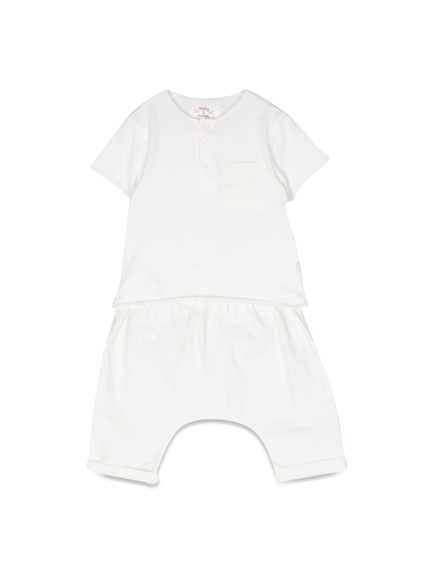 Crafted in soft and breathable fabric, the classic T-shirt and pants suit from Teddy & Minou is sure to become your favourite go-to look. The suit has a T-shirt designed with a crew neckline, short sleeves, and a straight hemline. The pants have an elasticized waistband for easy and comfortable wear.