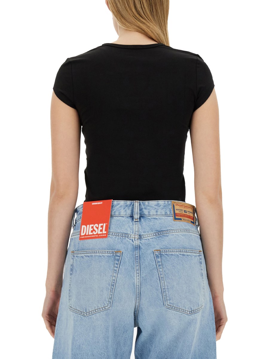 This T-shirt from Diesel is both comfortable and stylish, perfect for everyday wear. The crew neck design adds a classic touch, while the cap sleeves give it a modern twist. Whether you're dressing it up or down, this black T-shirt is versatile enough to suit any occasion.
