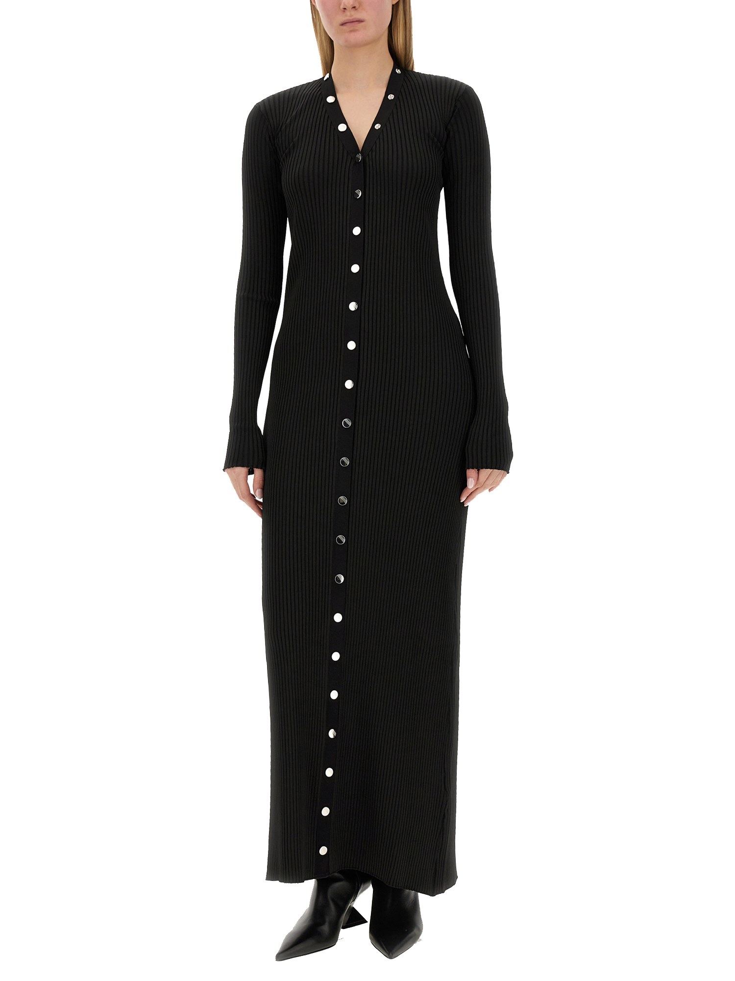 This opulent piece from The Attico features a front button closure, allowing you to effortlessly adorn yourself with grace and sophistication. Made from a luxurious viscose blend, this dress offers a divine drape and a heavenly touch against your skin. Perfect for both formal occasions and glamorous soirées, this dress is a timeless addition to your wardrobe, exuding an air of refined allure.