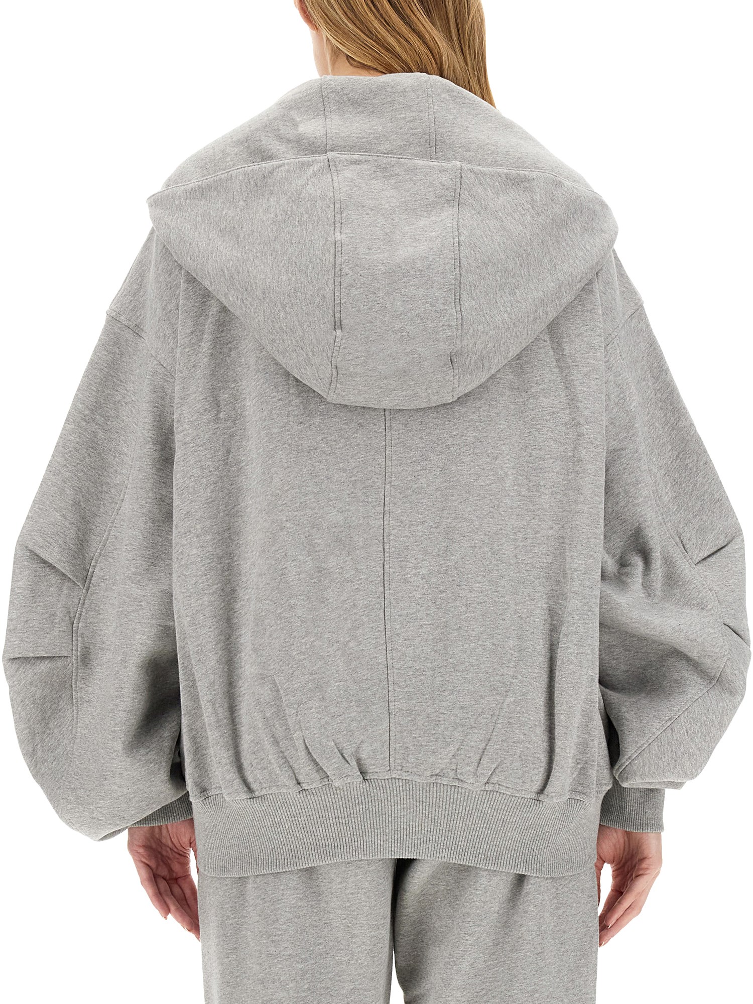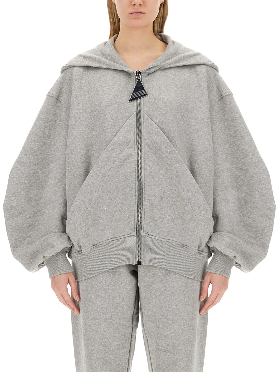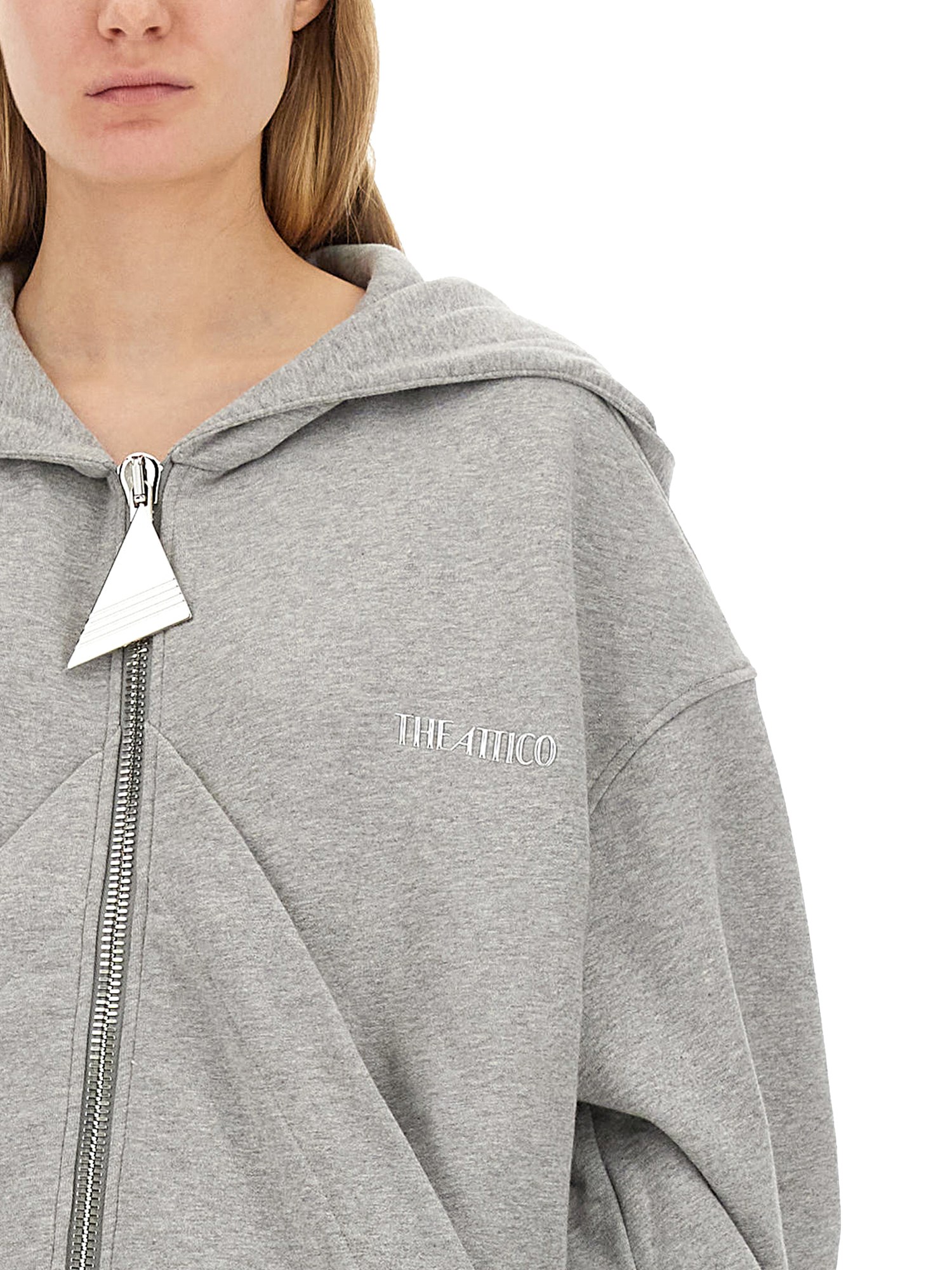 This sweatshirt from The Attico is designed to provide ultimate warmth and style. Made from high-quality cotton fabric, this sweatshirt offers a soft, plush feel against the skin, ensuring maximum comfort all day long. The hoodie design adds a touch of urban coolness to your outfit, while the zipper closure allows for easy and convenient wear.