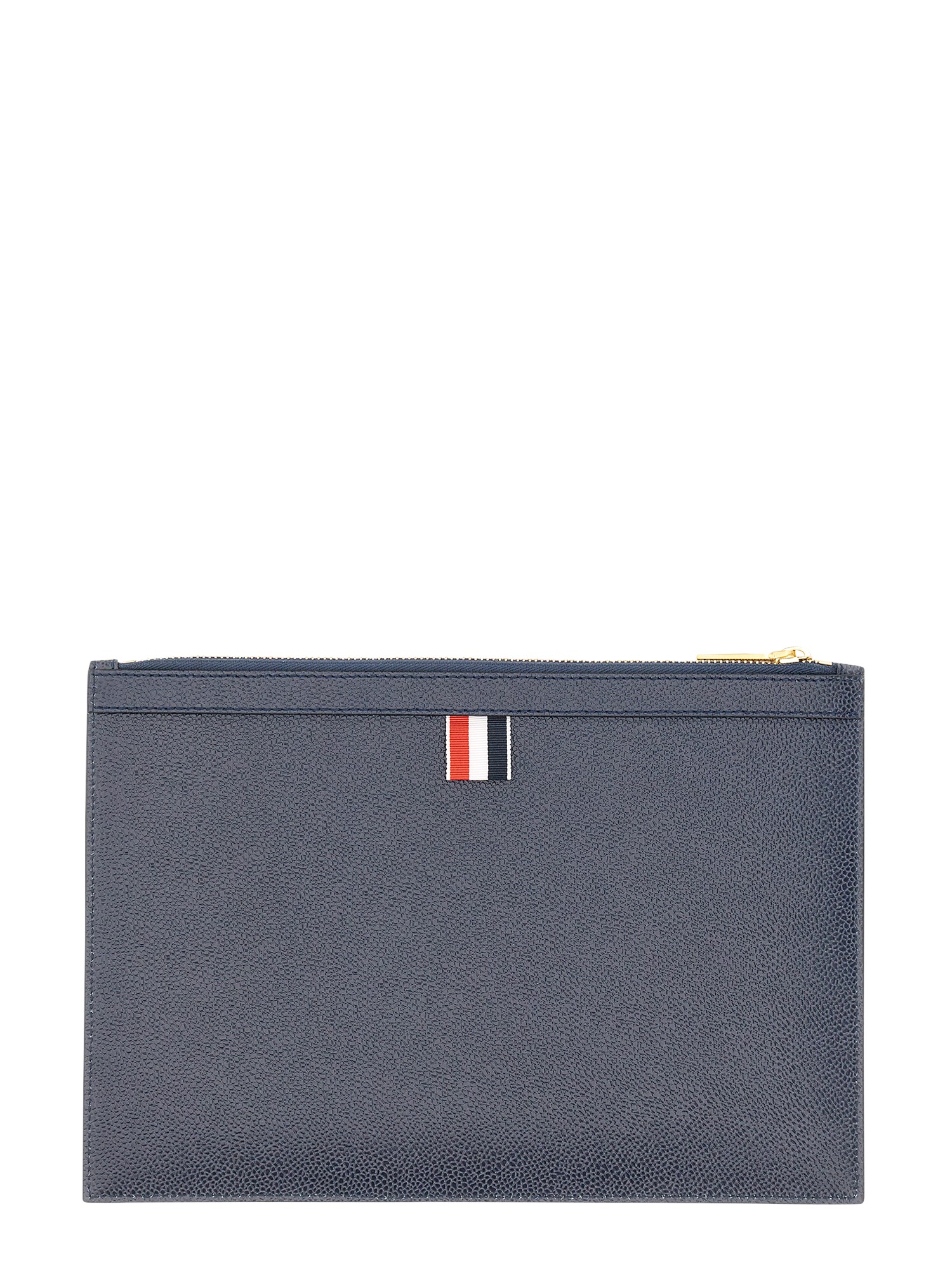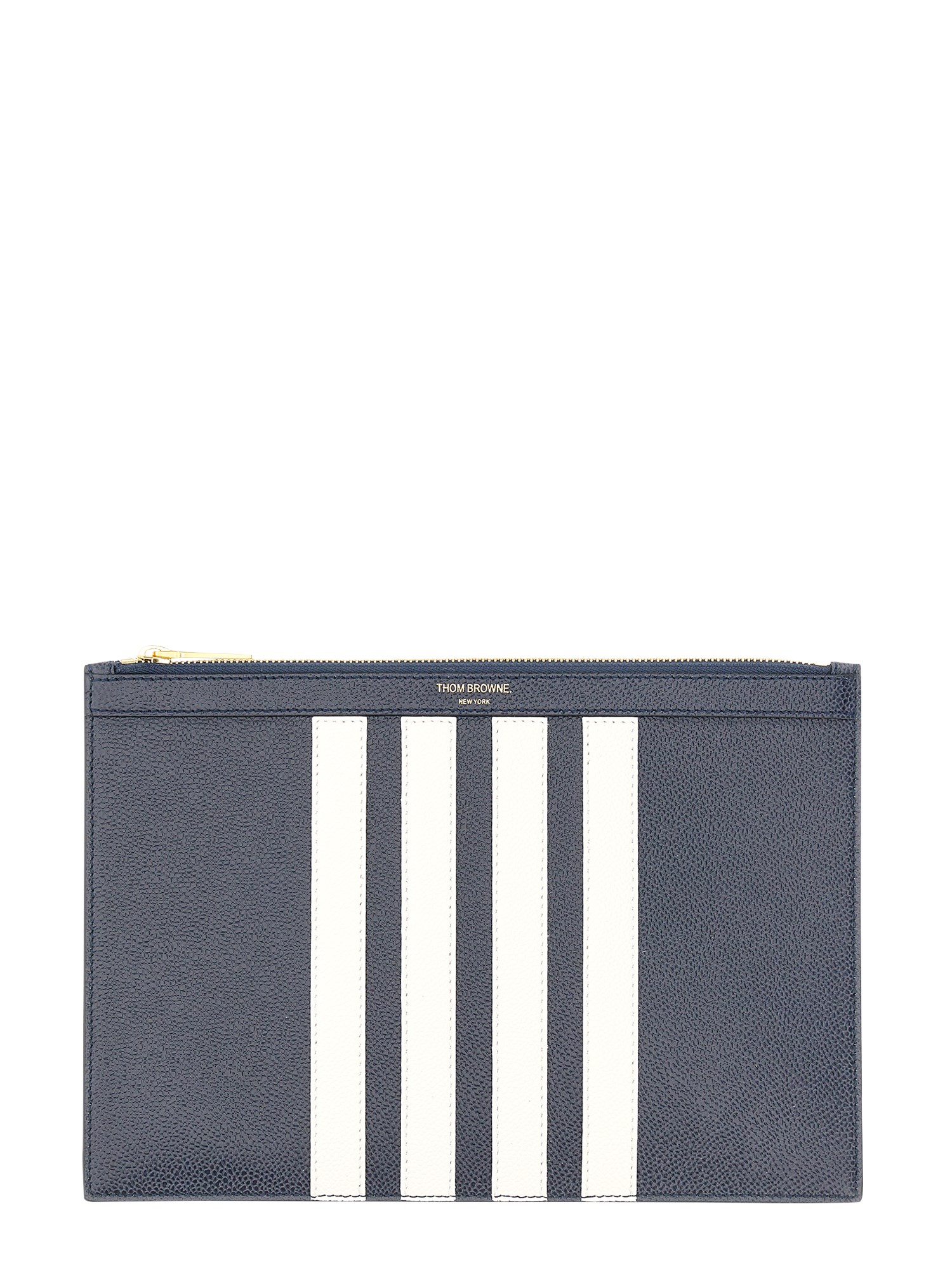This pebble grain leather document holder from Thom Browne has a design that is made with leather, has a zippered closure, and is adorned with four iconic bars. This leather document holder is ideal for those who want a piece of leather to hold their important documents and tote around.