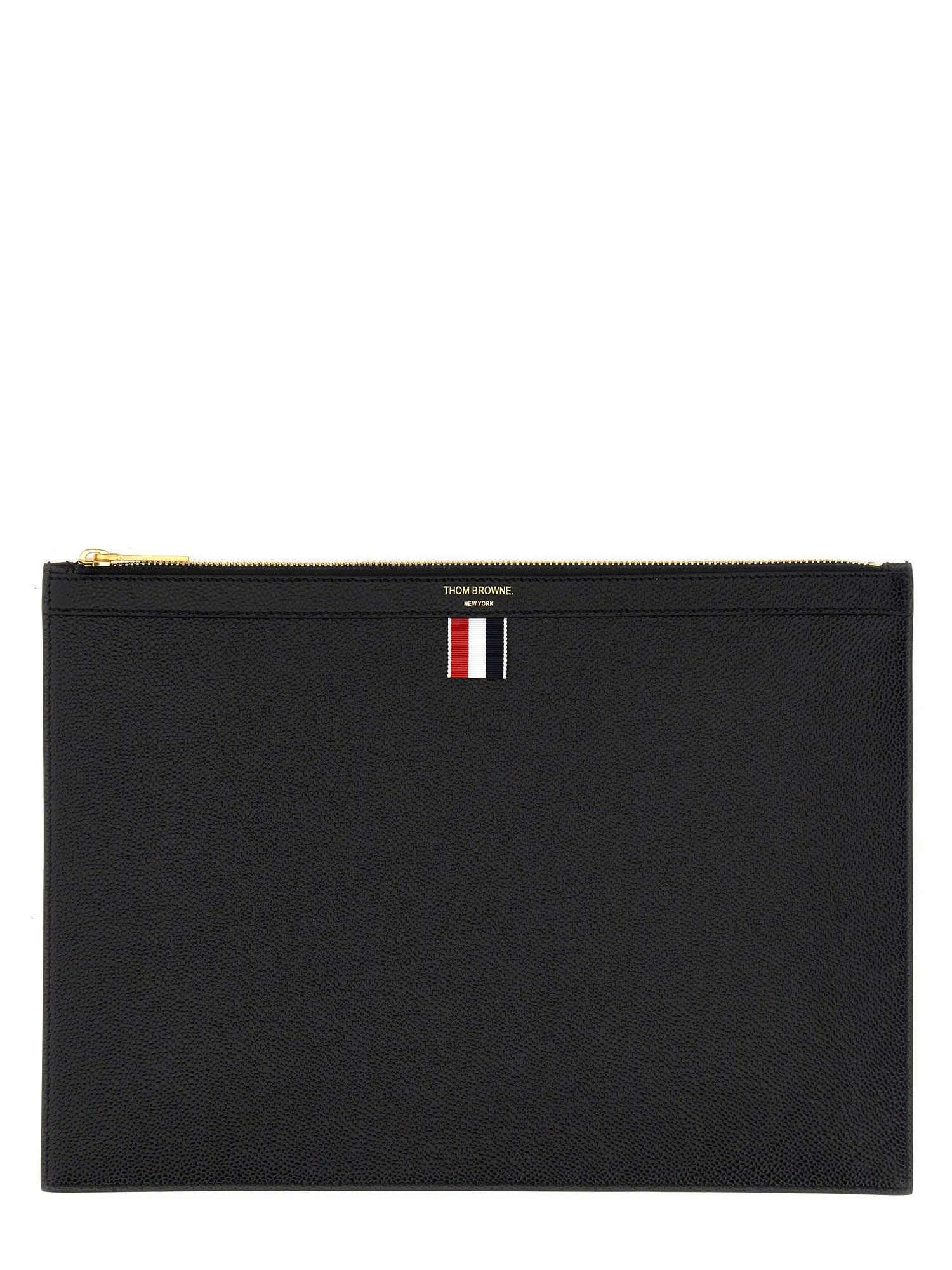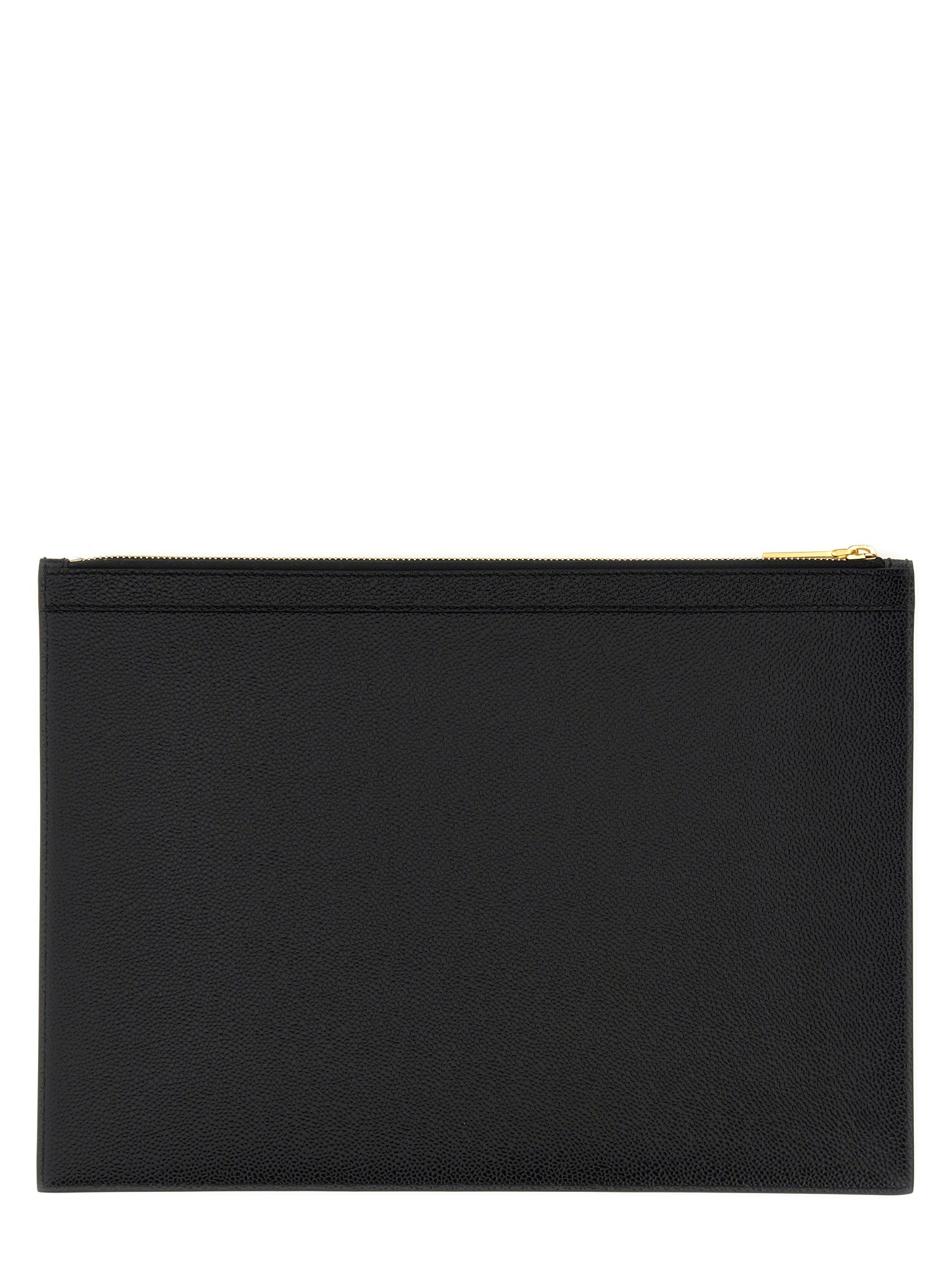 Stay organized in style with the Medium Document Holder from Thom Browne. Made from luxurious pebble grain leather, this sleek accessory is perfect for keeping your important papers and documents secure and in order. Elevate your on-the-go look with this sophisticated addition to your everyday essentials.