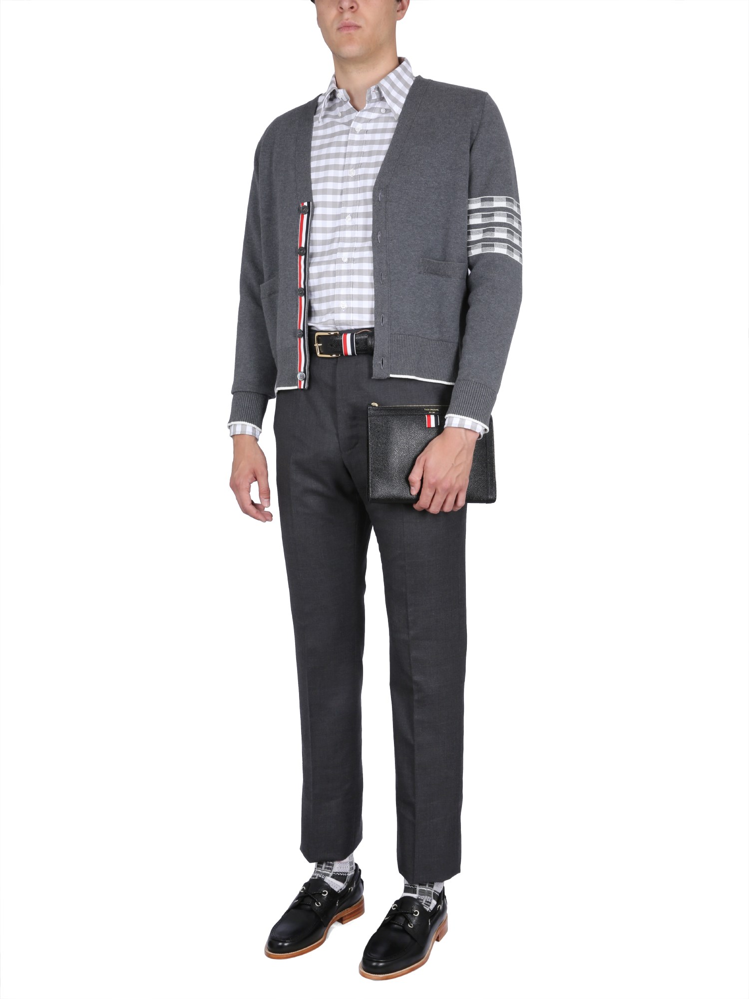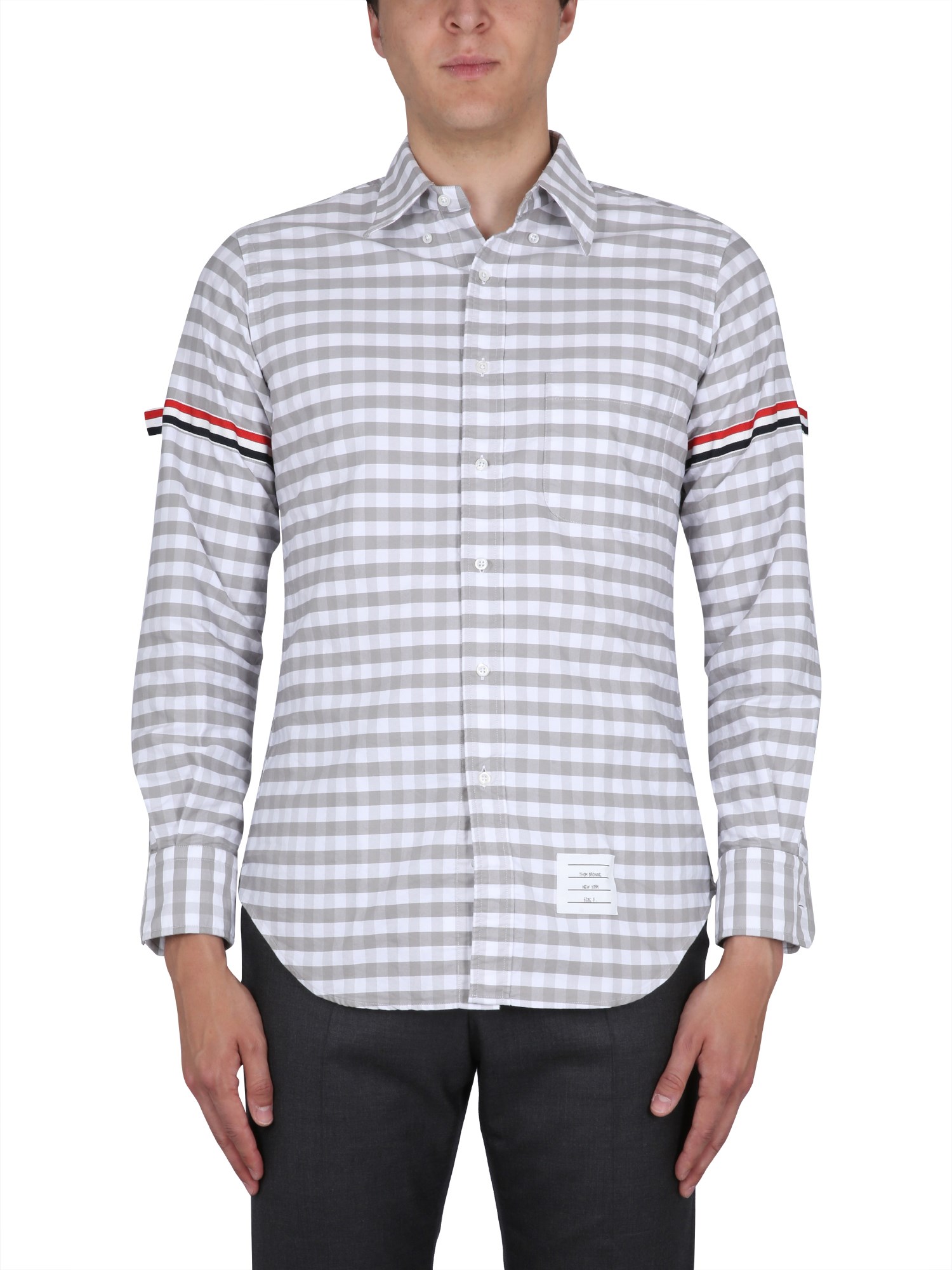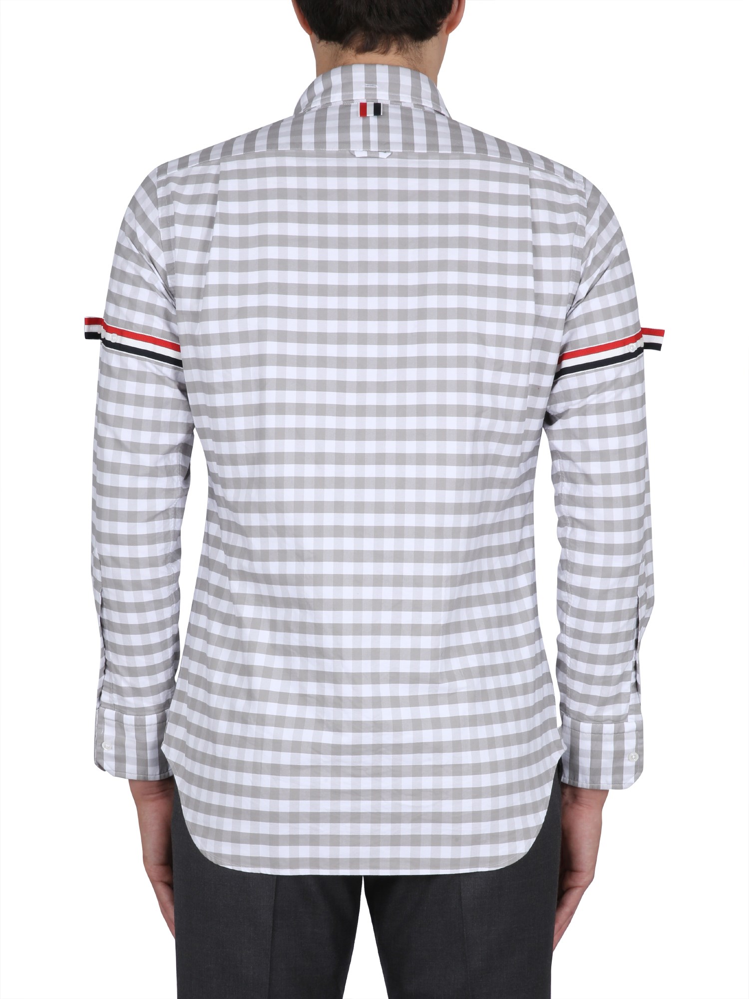 This is a simple, yet very fashionable shirt from Thom Browne that's made from 100% cotton. It has a button-down collar and button closure. It's a regular fit and features a plaid pattern. This shirt is perfect for any occasion because of its classic style and versatility. The regular fit and plaid fabric are both comfortable and stylish.