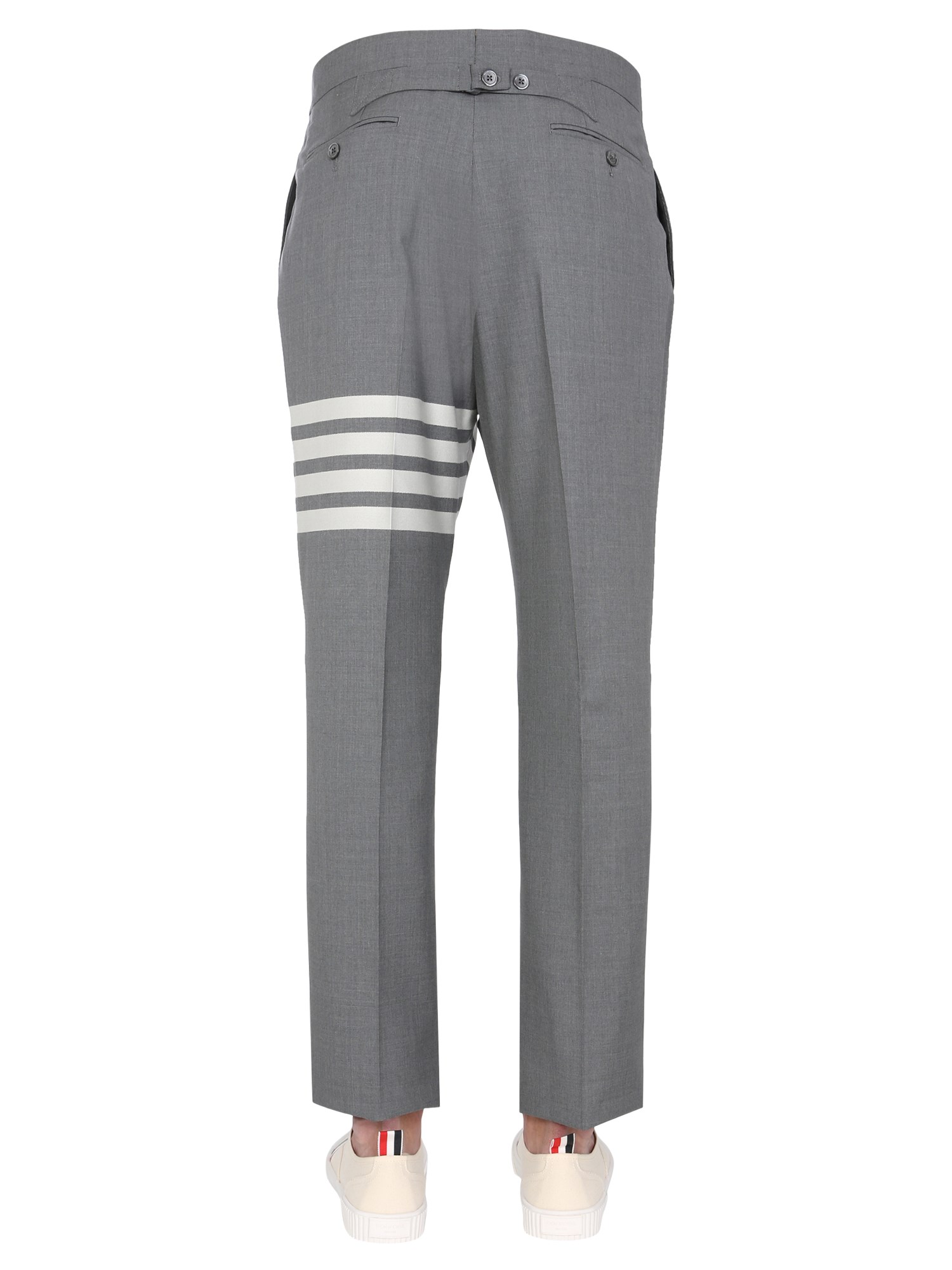 Elevate your style game with the Classic Wool Pants with Martingale by Thom Browne. Crafted with the utmost attention to detail, these pants feature a hook-and-bar closure for easy and secure fastening. The two hand pockets provide ample space for storing your daily essentials, making them practical yet stylish. Made from premium quality wool, these pants offer a lightweight feel and ensure durability.