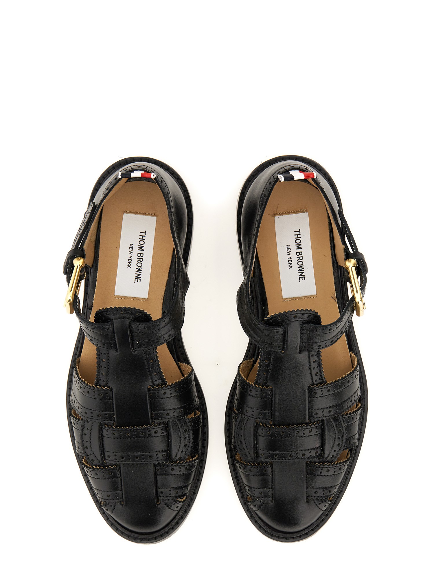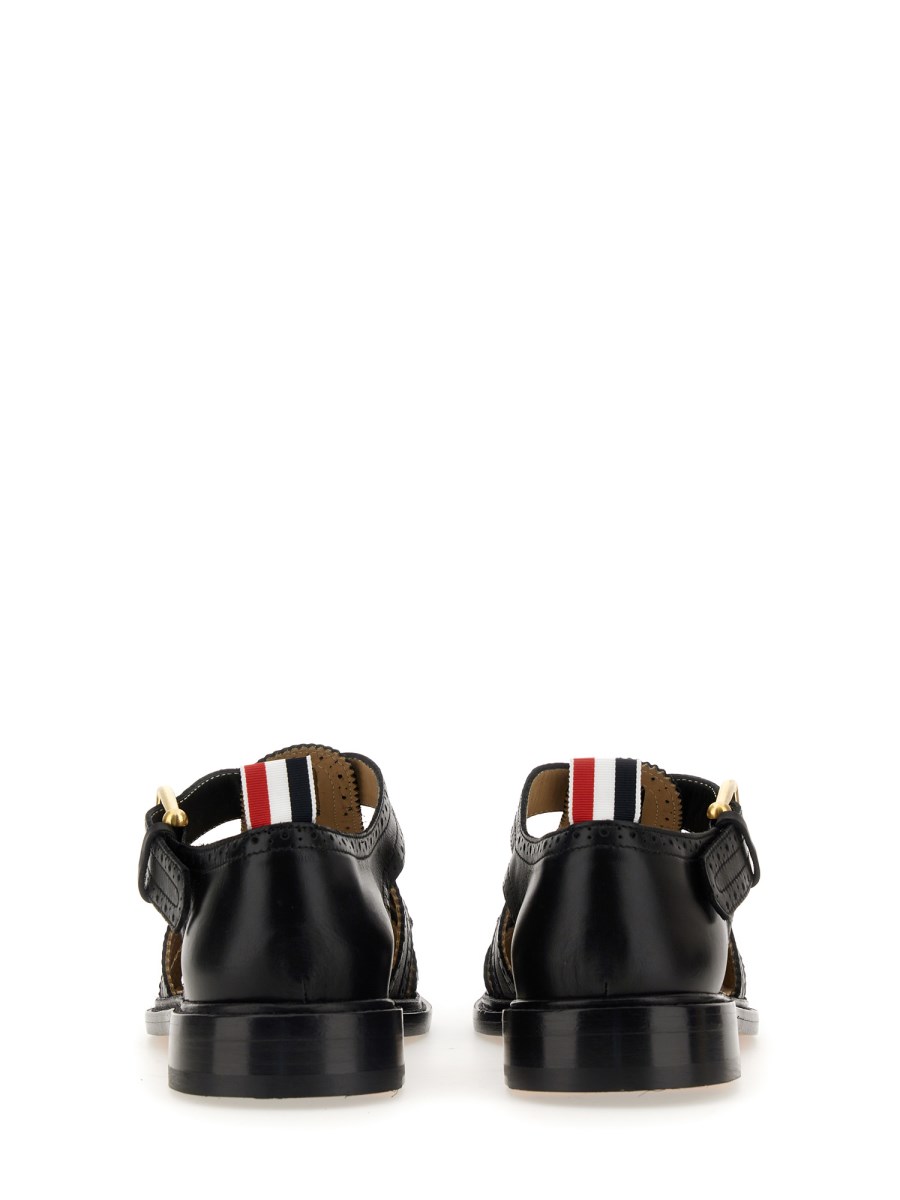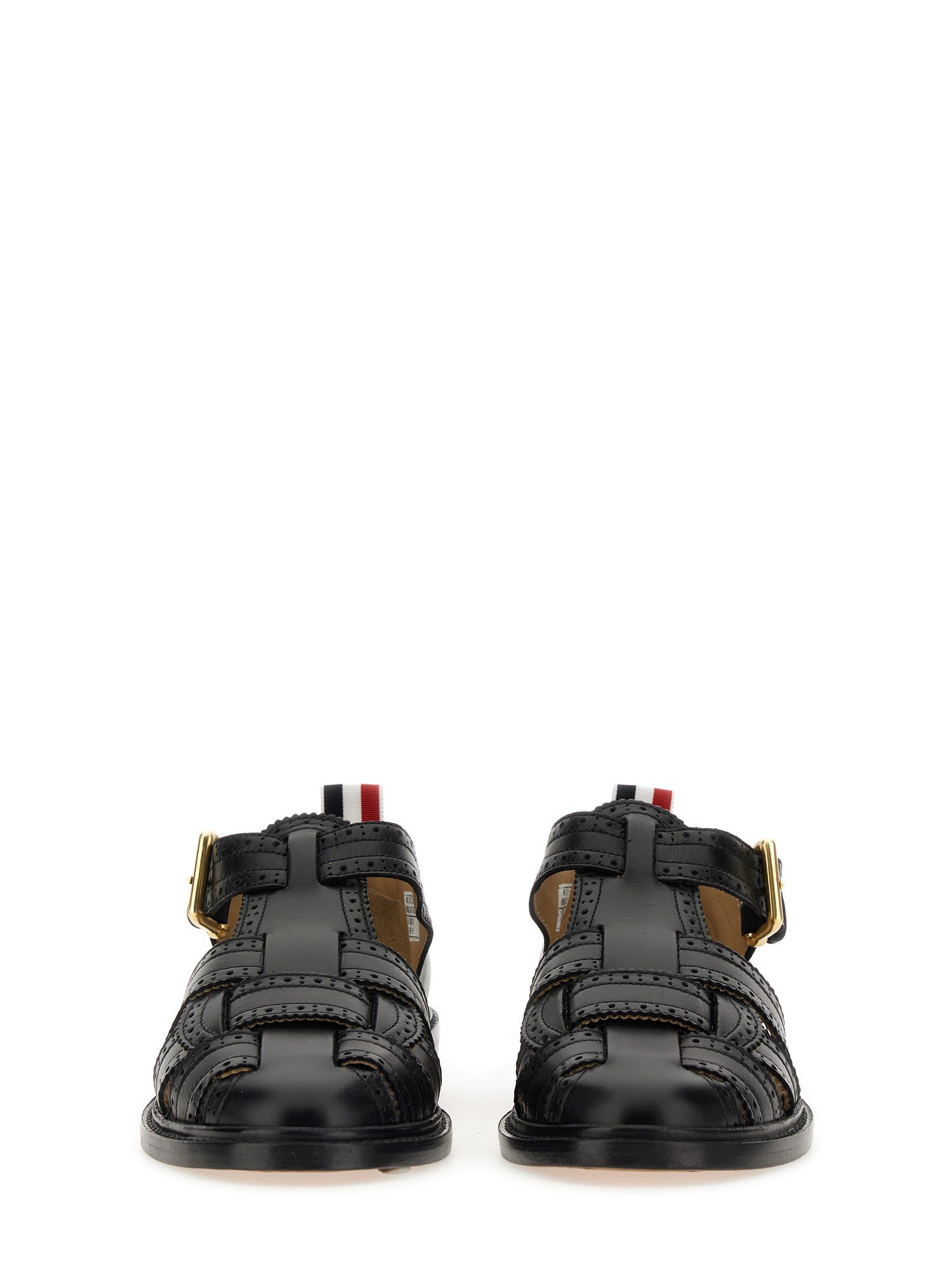Sturdy and durable, these fisherman sandals from Thom Browne will keep your feet comfy and protected. They are made of quality leather, making them absolutely durable. The adjustable ankle strap will keep them securely on your feet, and the grosgrain pull on the back of the sandal will help with getting them on and off. The soft, cork-like insole will help you keep your feet comfortable all day long.