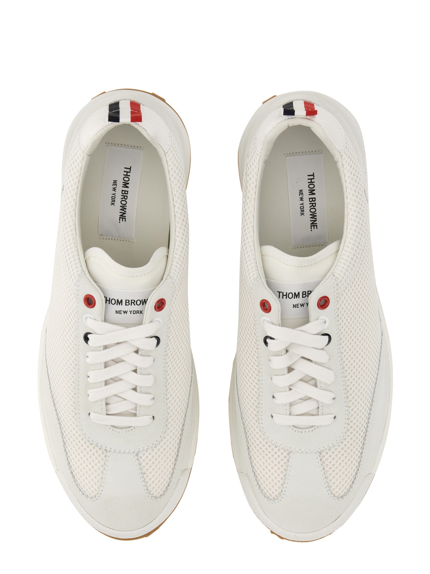 Thom Browne's Tech Runner Mesh sneakers are comfortable and ideal for outdoor activities. Thanks to the combination of suede and mesh, these casual sneakers have a breathable design perfect for summer. With a lace-up closure and a rubber outsole, these sneakers are sure to be comfortable.