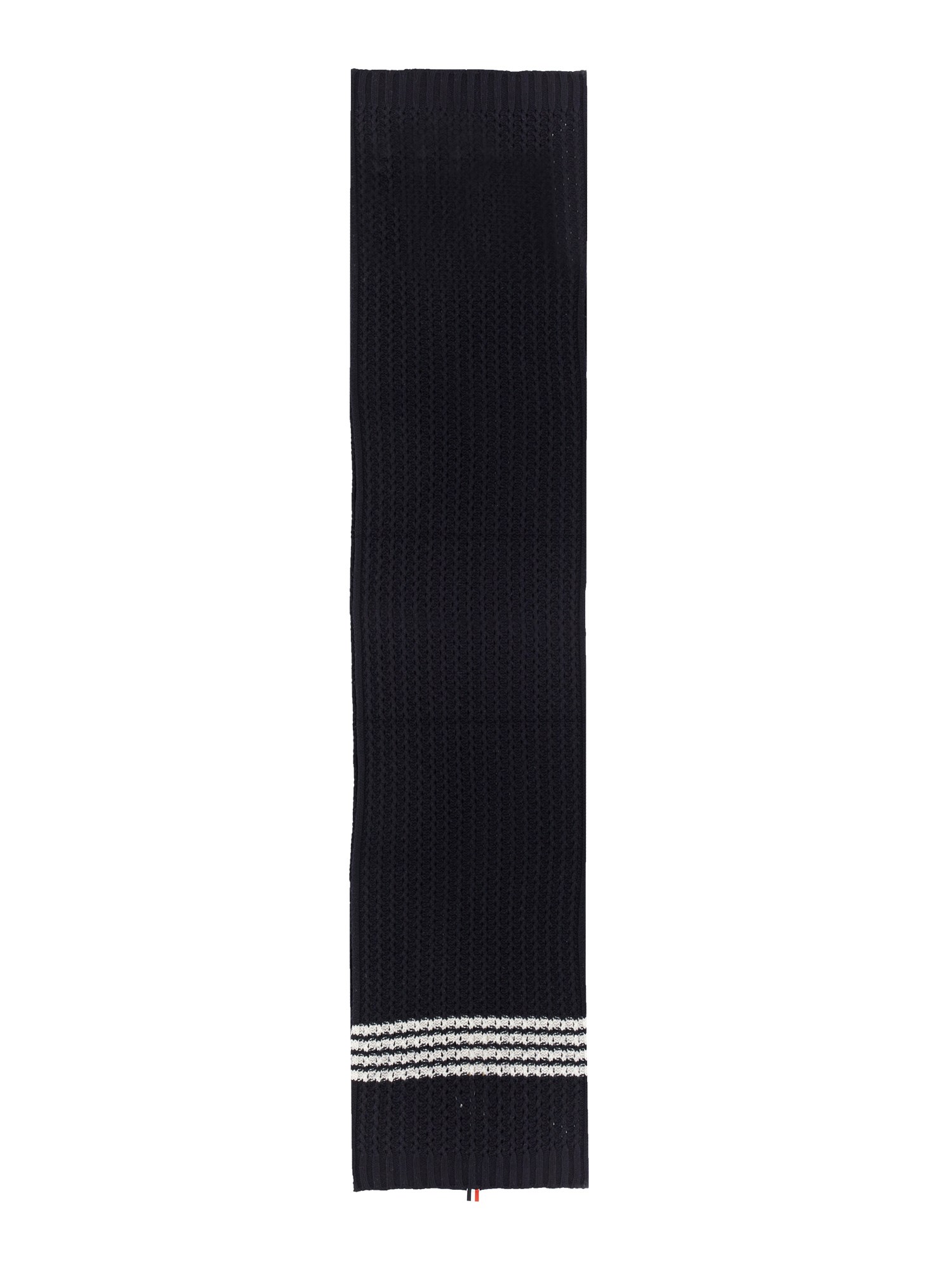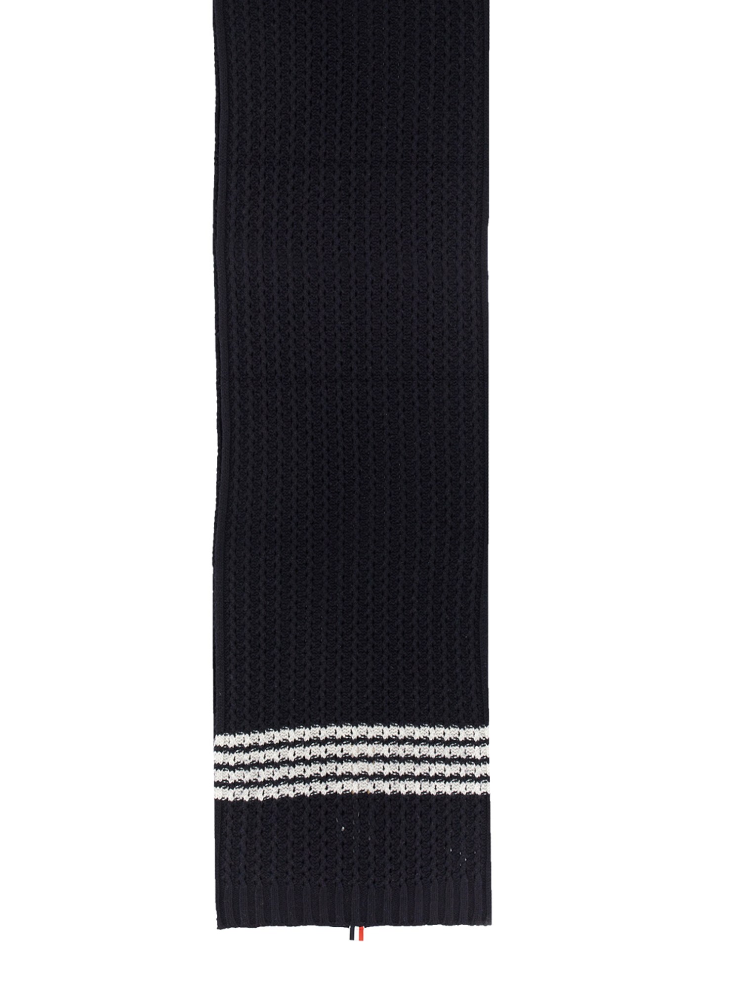 This Merino wool scarf from Thom Browne is a luxurious, fashionable, and versatile accessory for your winter wardrobe. Perfect for both men and women, this scarf can be worn in a variety of different ways to suit your needs. The scarf has ribbed profiles, a four-bar pattern, and grosgrain RWN detail.