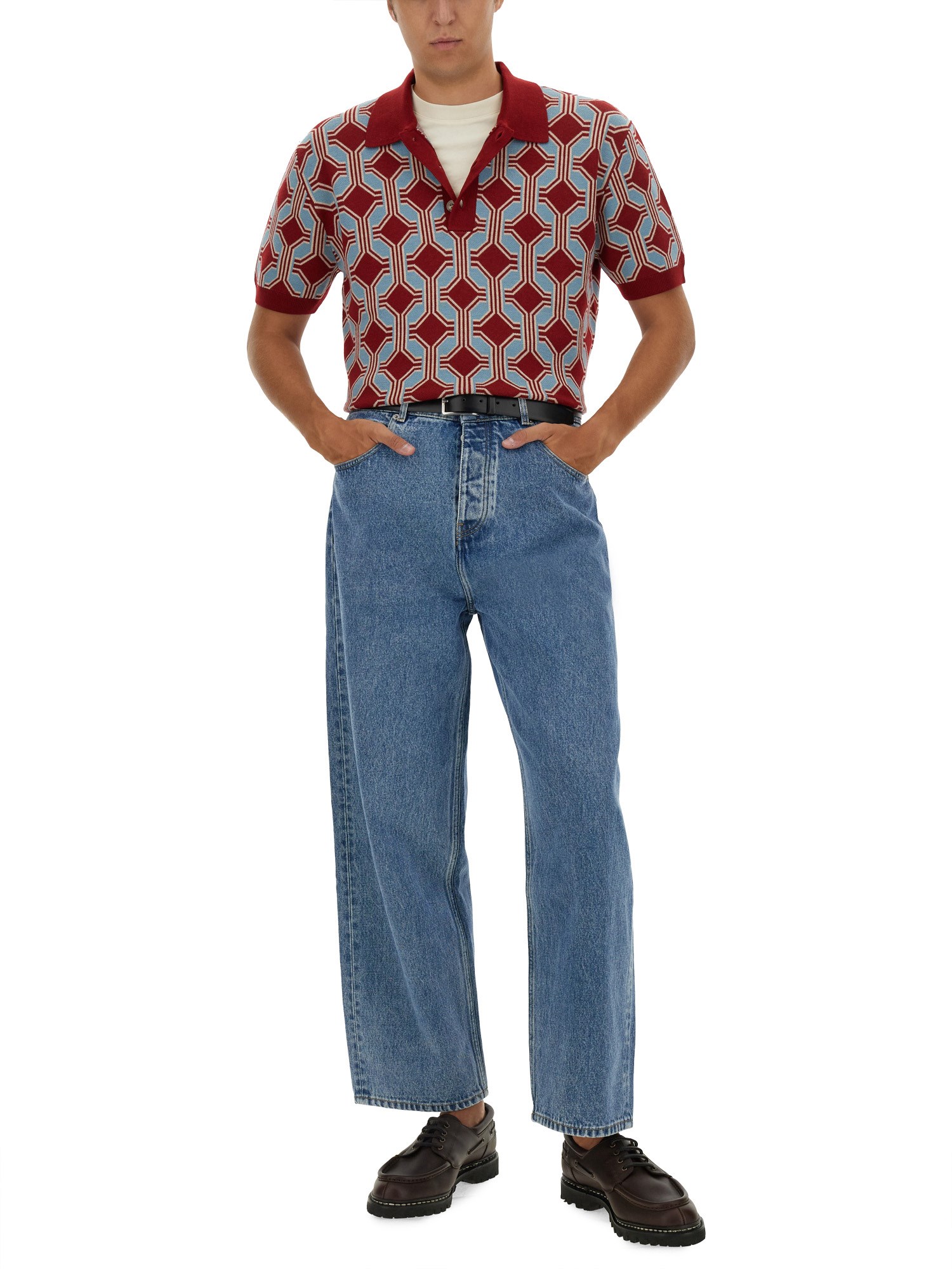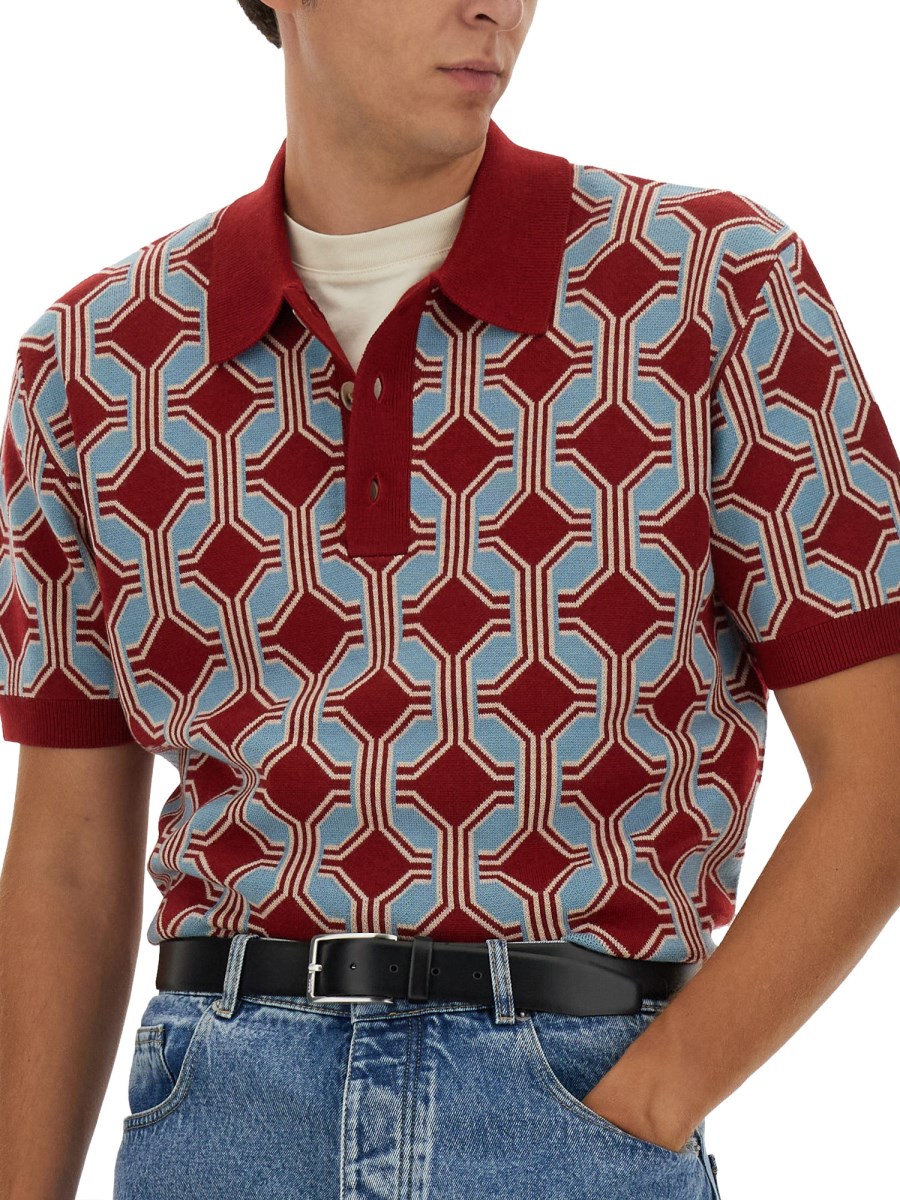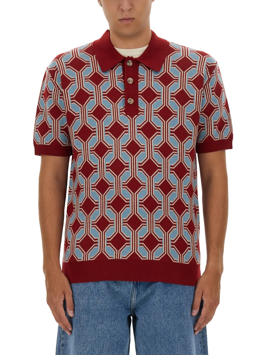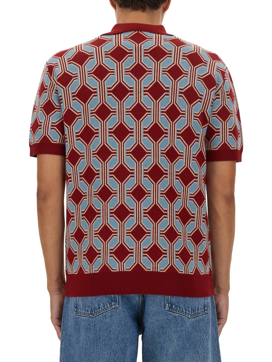WOOL KNIT POLO SHIRT WITH GEOMETRIQUE PATTERN