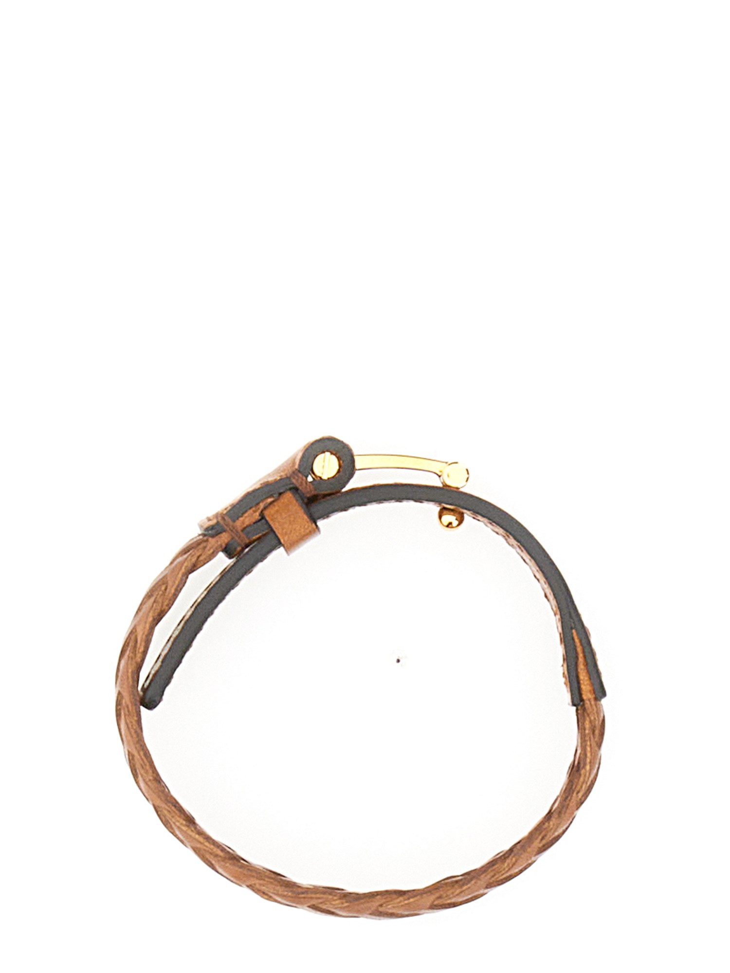 This braided leather bracelet from Tom Ford is a bold statement piece with a contemporary gold finish and a traditional clasp. The braided leather has a good weight and a classic look, and the clasp has the classic symbol of the woman in charge. This is the perfect accessory for a stylish and confident woman who knows how to look her best.