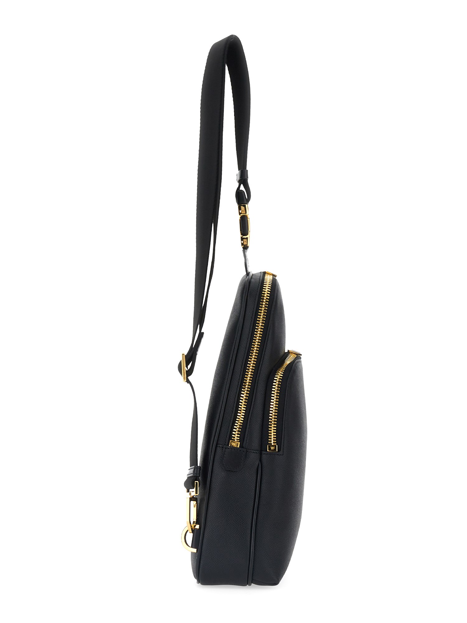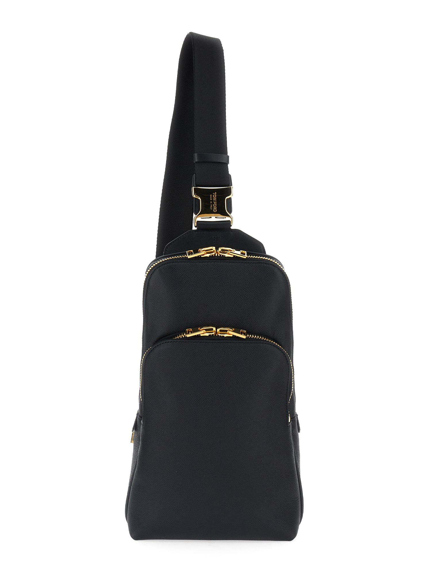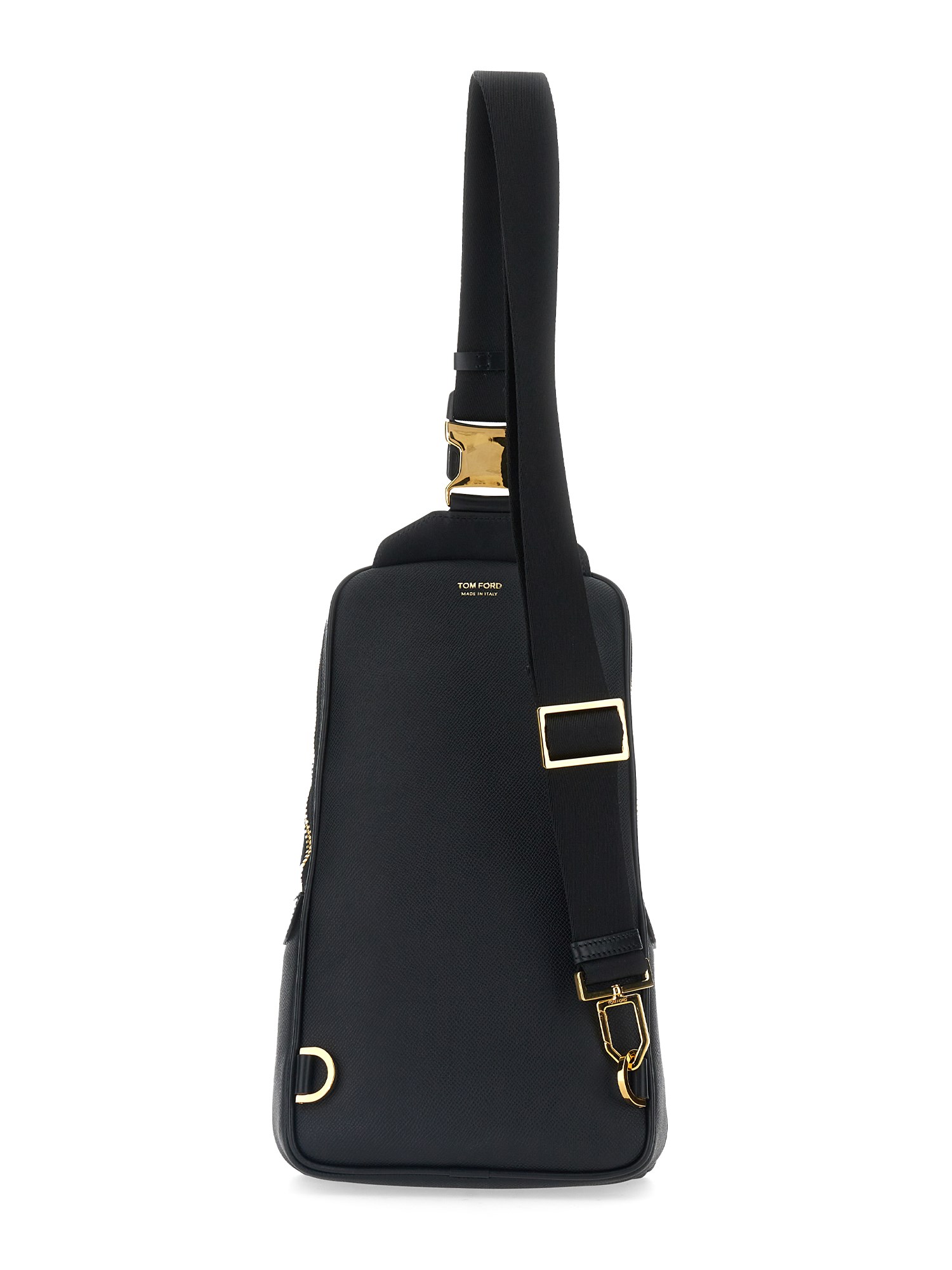 A luxurious, elegant, and comfortable sling bag from Tom Ford made of high-quality materials. The front compartment has an adjustable zipper and a shoulder strap that can be tucked in when not in use. The bag is lined with calfskin leather and has a pocket on the back for extra storage.