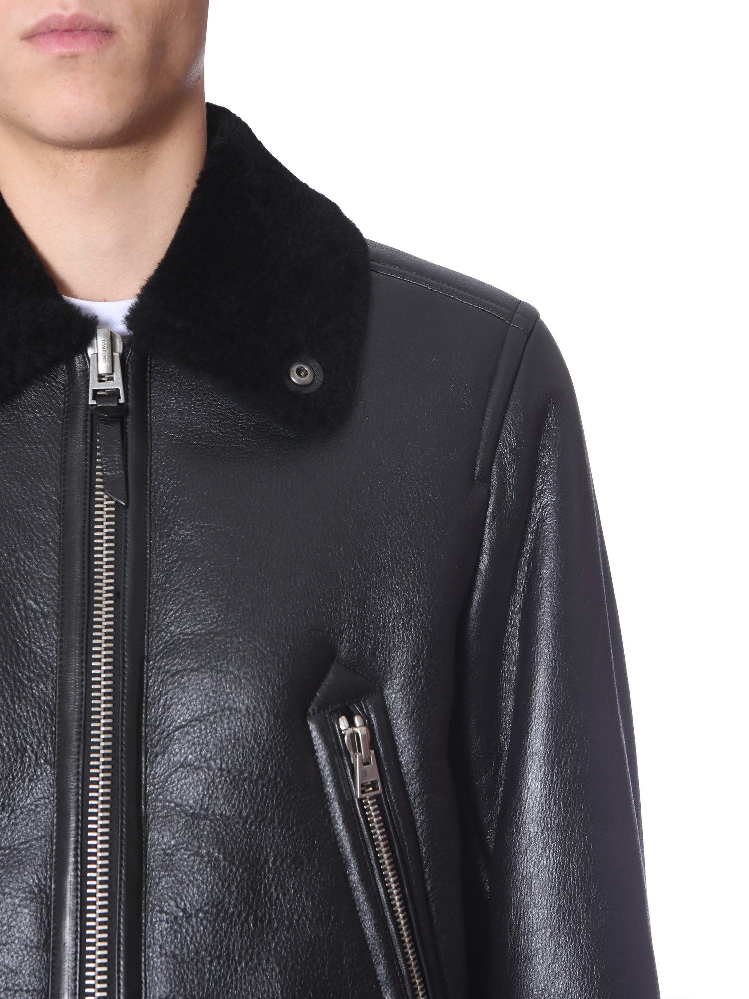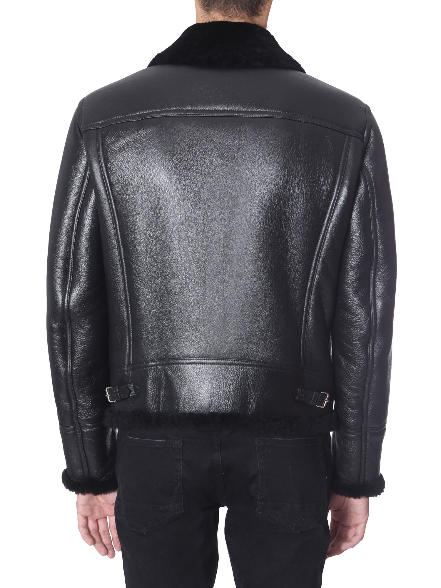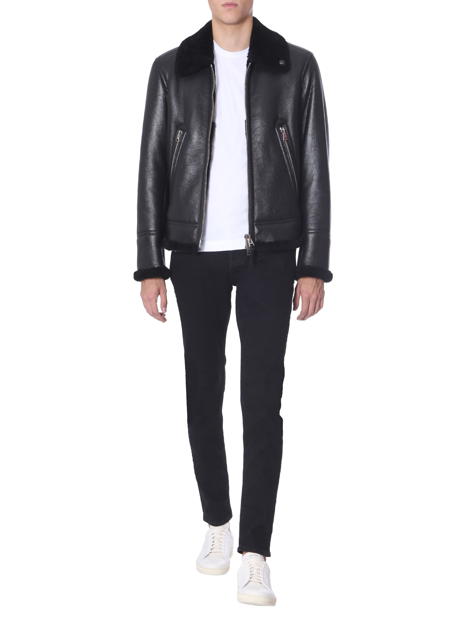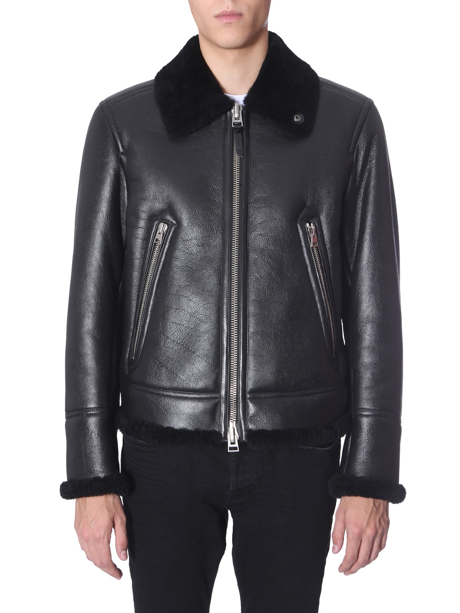 Look dashing and attract attention in the shearling jacket by Tom Ford. This jacket is made of 100% leather for a luxurious finish and wear-resistance. It has a double slide zip closure at front for a tight fit. The classic collar and shearling inner of jacket make it more stylish and trendy.