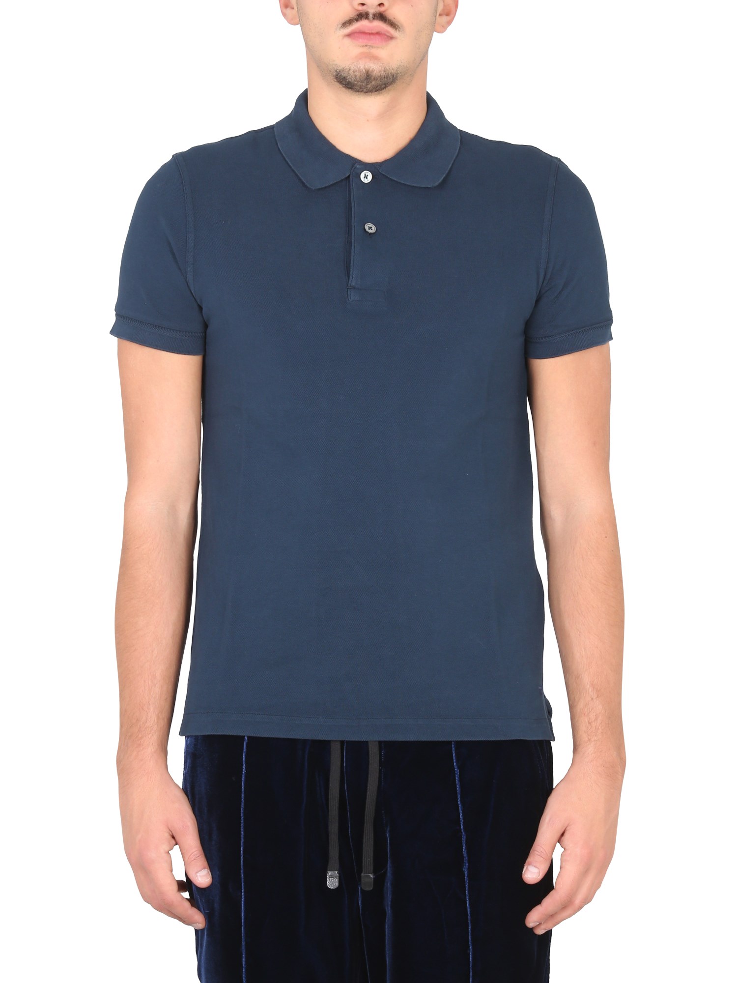 This cotton pique polo shirt from the house of Tom Ford is a perfect addition to your wardrobe. The shirt features a relaxed fit and looks great paired with jeans or pants. The shirt has a classic collar, short sleeves, a straight hem, and a button closure on the front. The pull-on style shirt is cut in a classic polo style.