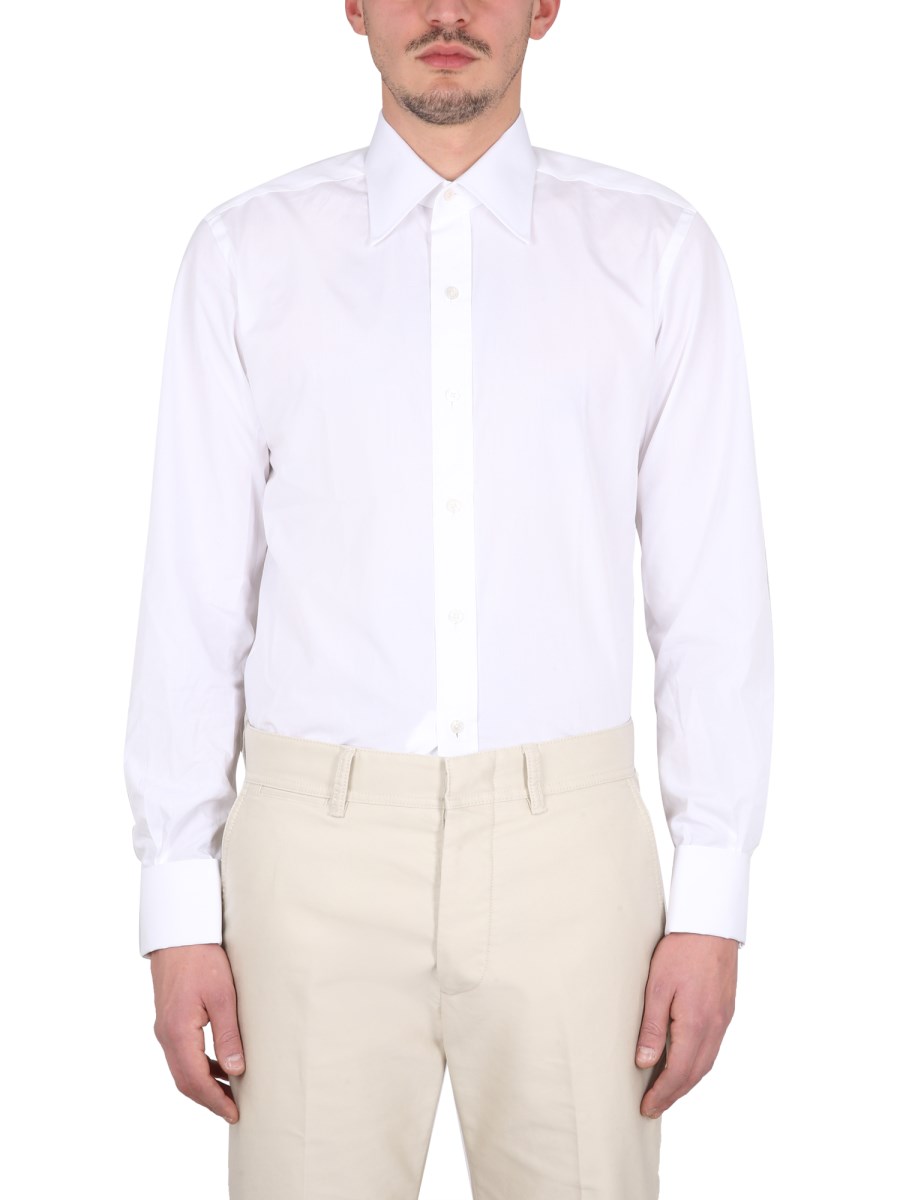 - CLASSIC COLLAR- FRONT BUTTON CLOSURE- 100% COTTON- THE MODEL IS 185 CM TALL AND WEARS SIZE 39