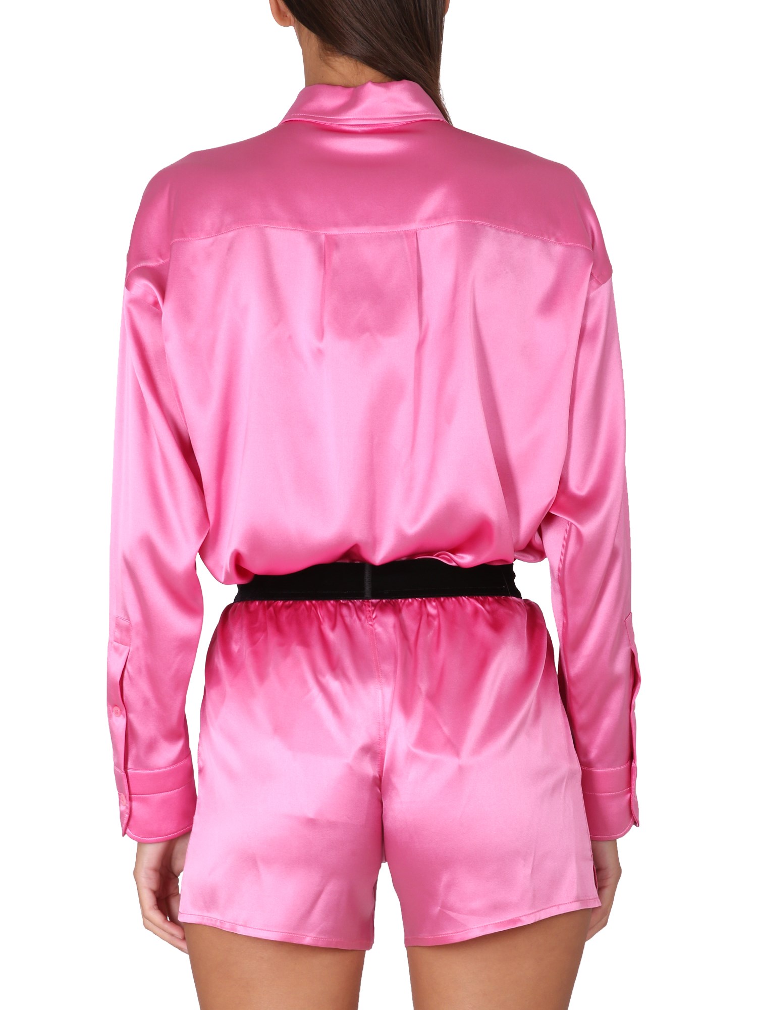This button-up shirt from Tom Ford features a relaxed fit and a soft silk satin material that is soft to the touch. It has a pointed collar and a front button closure. This relaxed fit shirt is a classy choice for any occasion. This shirt is made of a silk satin fabric that has a very luxurious feel. It is the perfect shirt to wear to an elegant event.