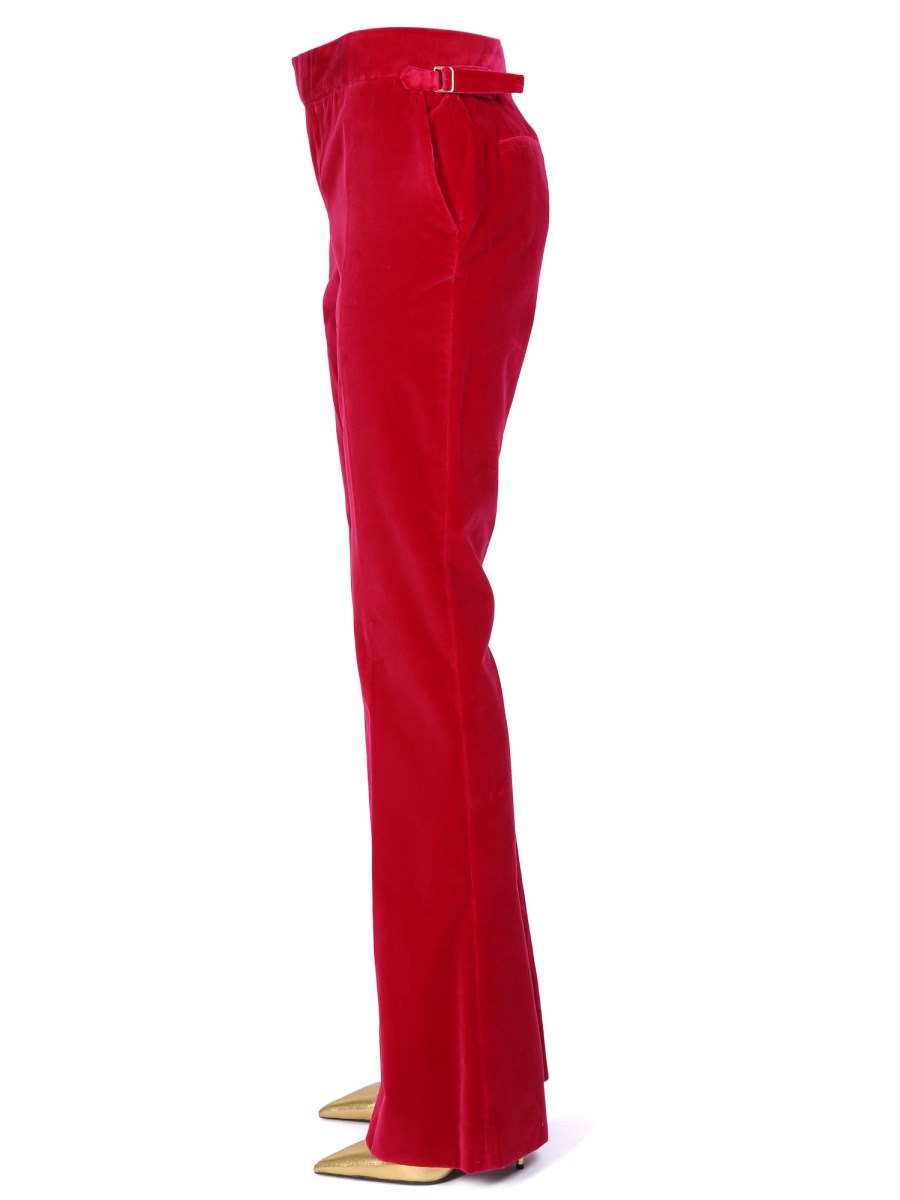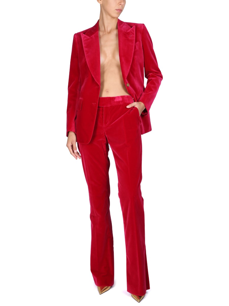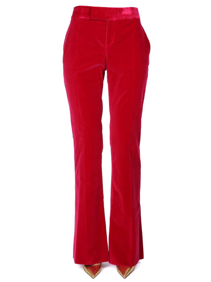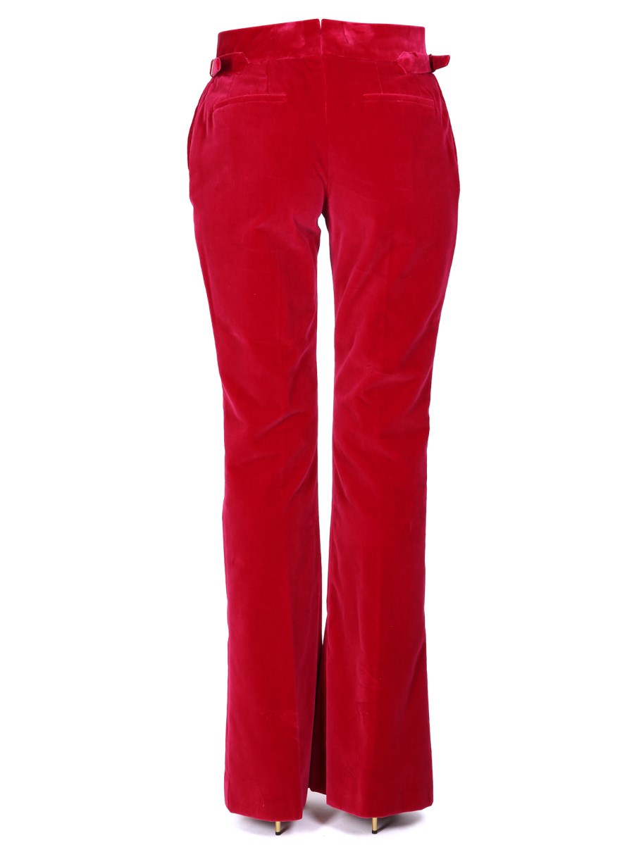 Update your style game by wearing velvet pants from the house of Tom Ford. The flare pants are a must-have item in any wardrobe. The pants have a hook, button, and zipper closure and a flared bottom. The pants have functional two pockets on the side and the back. They are made of soft and stretchy cotton material that has a wonderful feel to them.