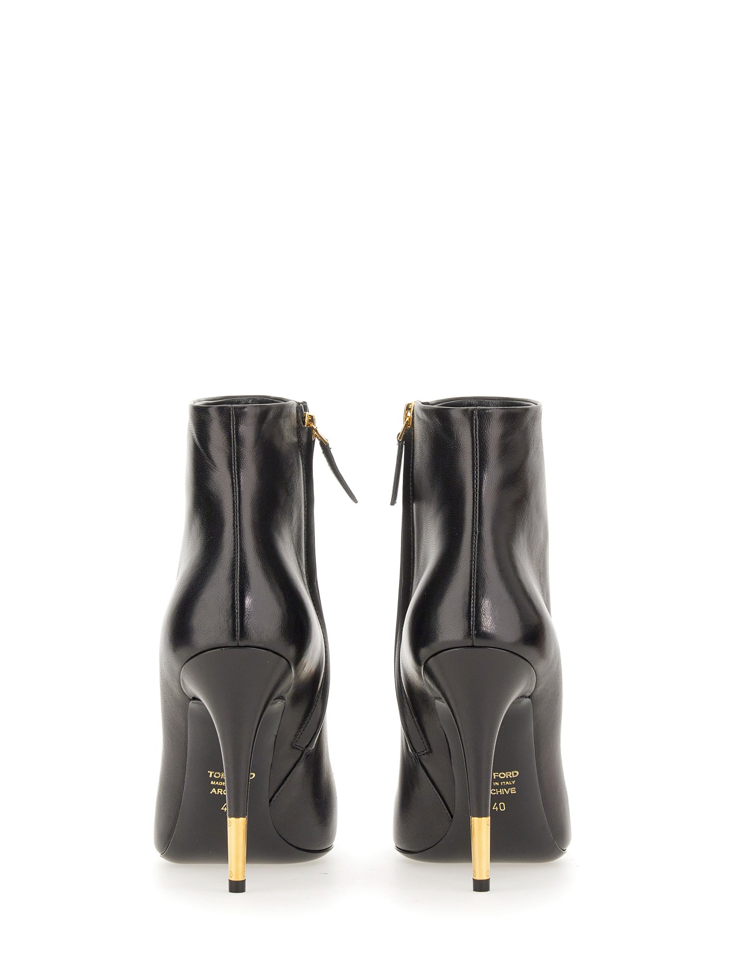 The Tom Ford ankle length leather boot is the perfect addition to any outfit. The ankle length boot features a high heel, a pointed toe, and a rich, luxurious leather. The boot is the perfect way to give your outfit a high fashion feel without sacrificing comfort. The Tom Ford leather boot is a high-end piece that is the perfect height for a polished and sophisticated look.