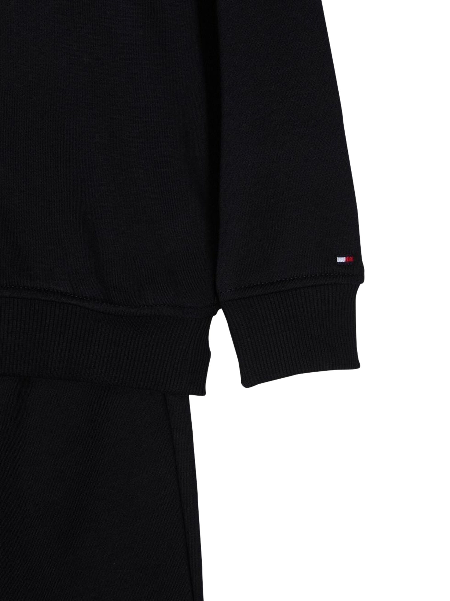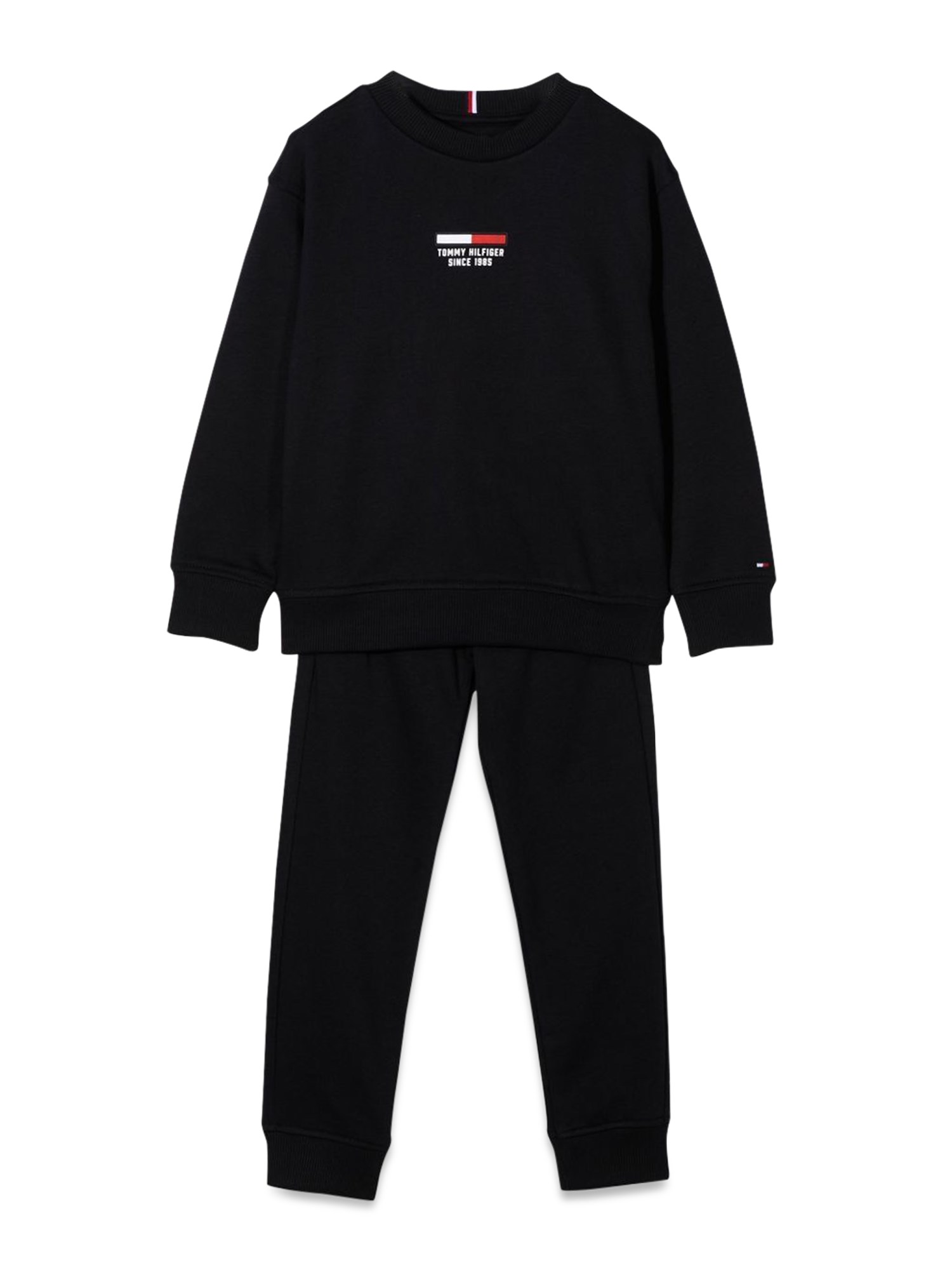 It's easy to stay comfortable and cool while you're on the go with this organic cotton black crewneck sweatshirt and jogger set from Tommy Hilfiger. This sweatshirt is made from stretchy and soft organic cotton. The jogger pants are made from a soft, stretchy, and breathable fabric. The set is meant to be worn for jogging or for casual use.