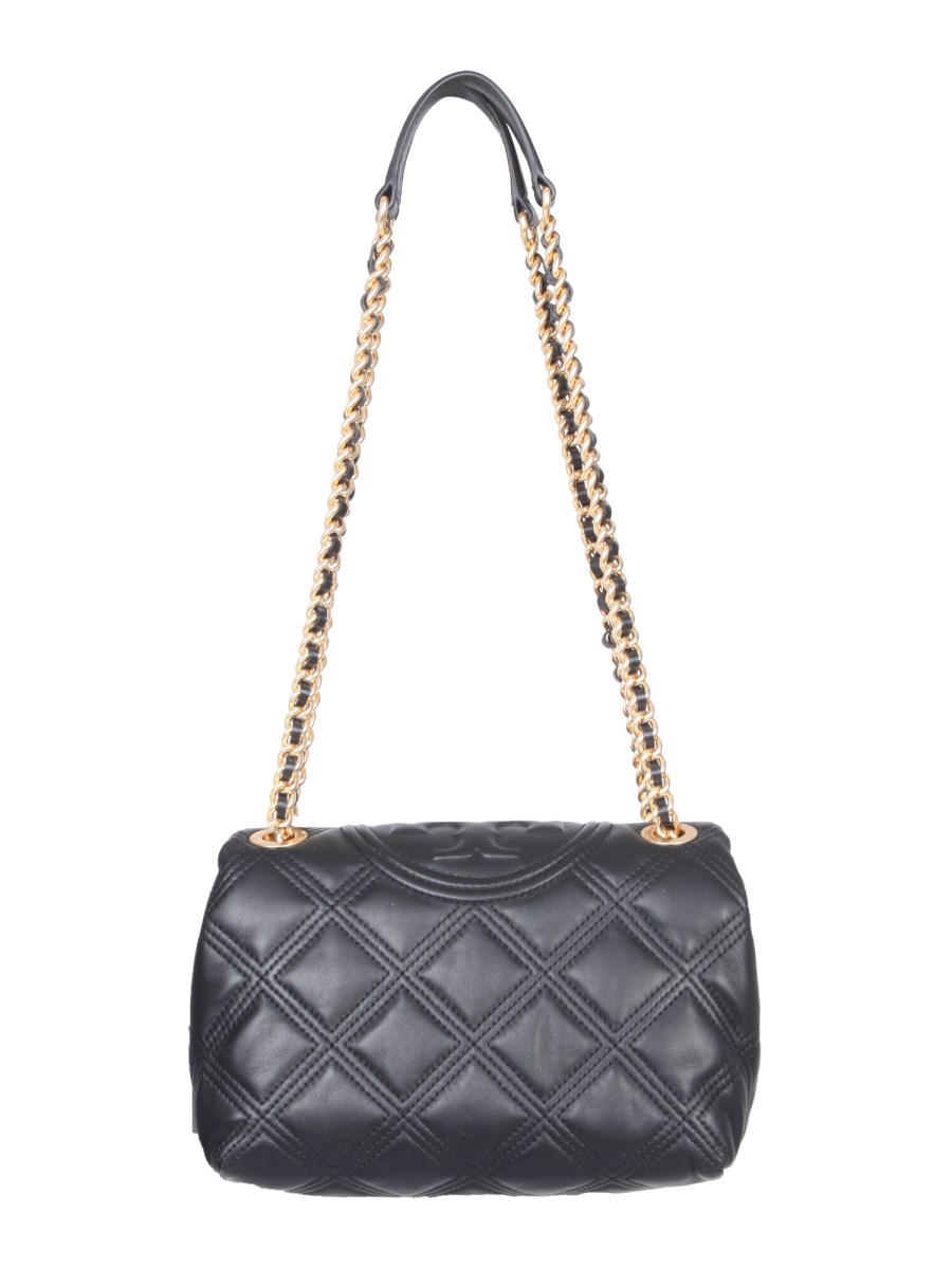 - DOUBLE CHAIN HANDLE WITH LEATHER INSERT