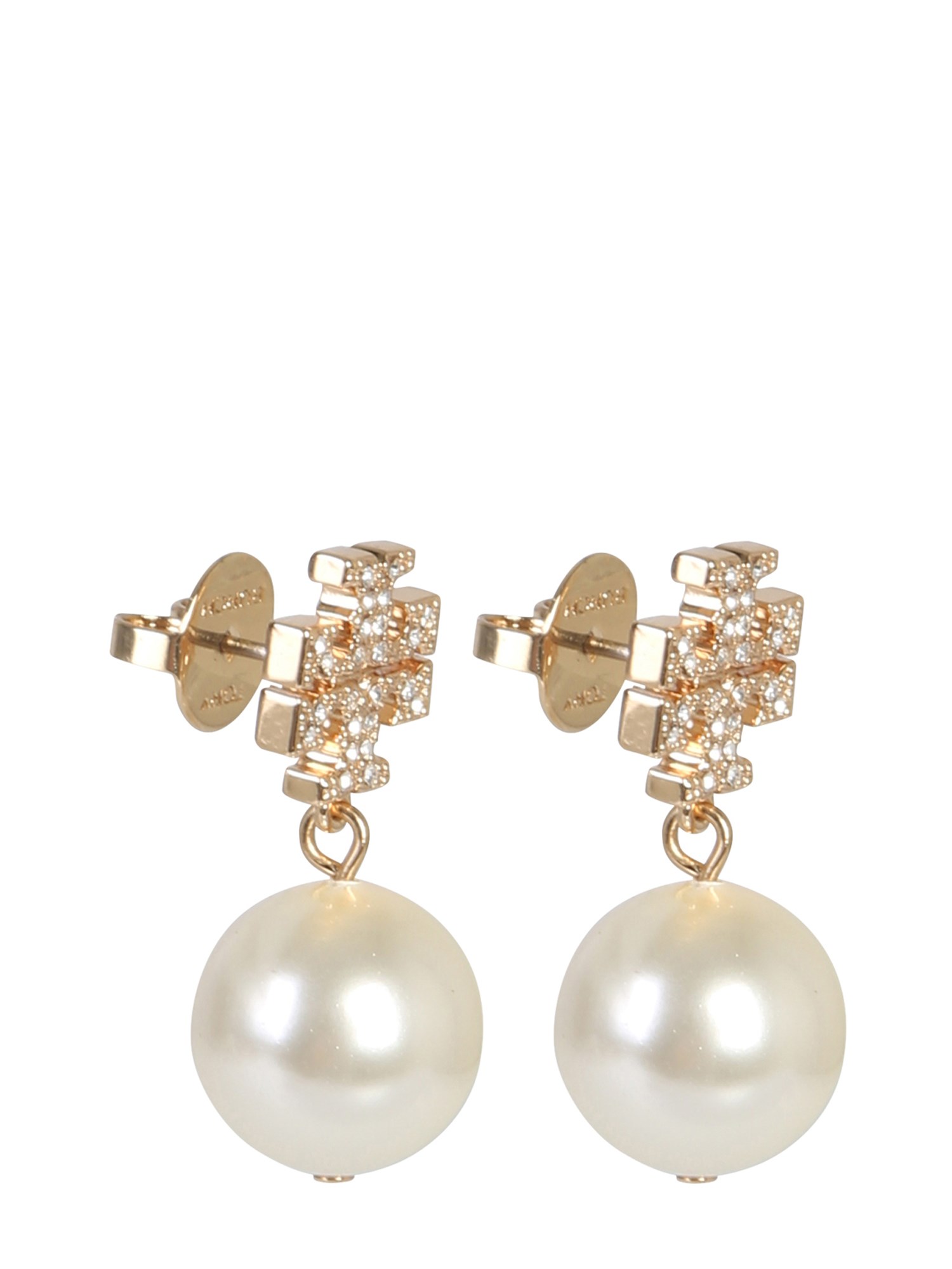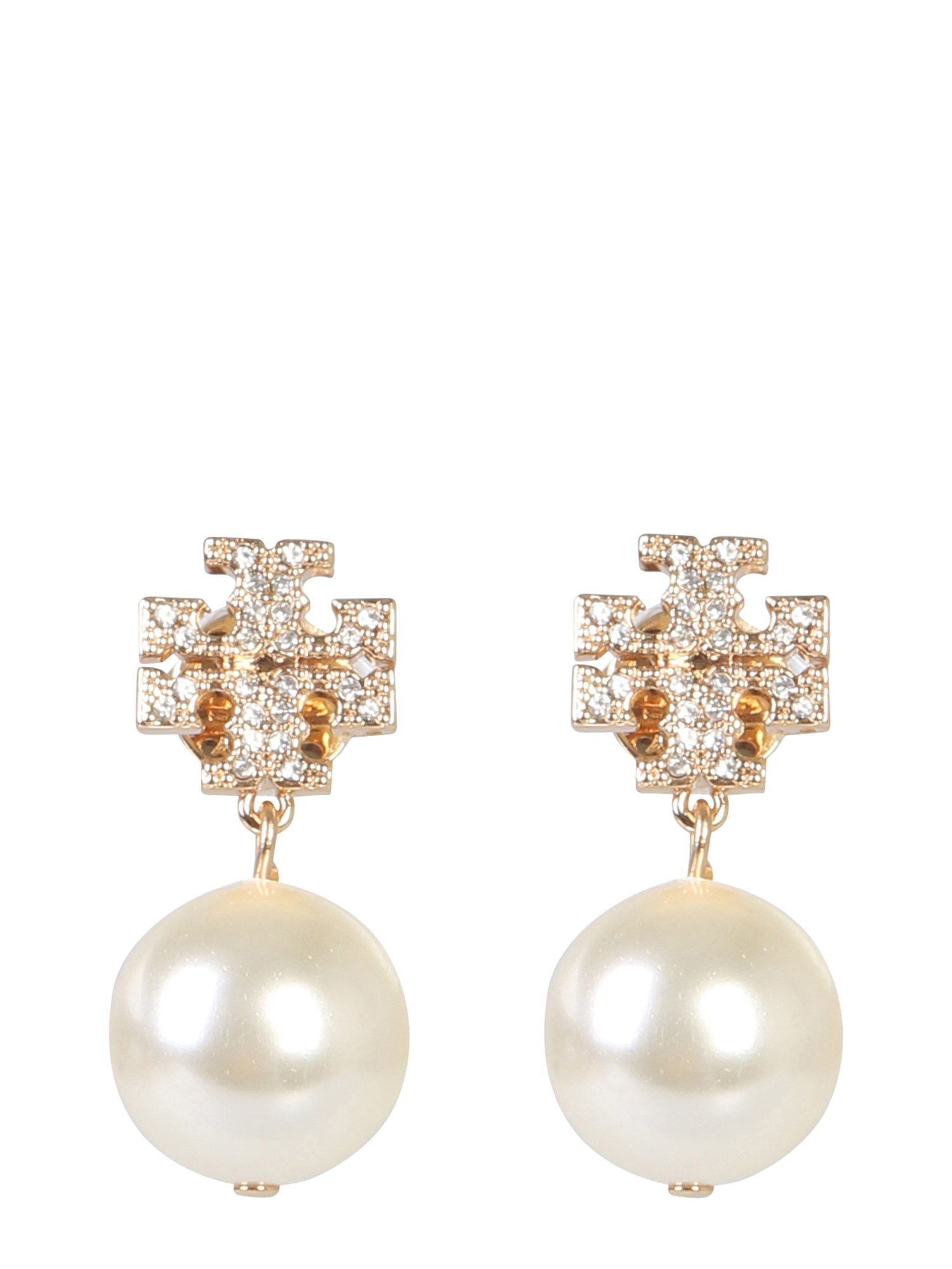 Excite your accessory collection with these crystal logo and pendant pearl earrings from Tory Burch. These earrings feature a snap closure which make them easy to wear. Having shimmery stud detailing, these earrings are perfect for your casual parties. They come with a pearl pendant that lends a classy finishing touch.
