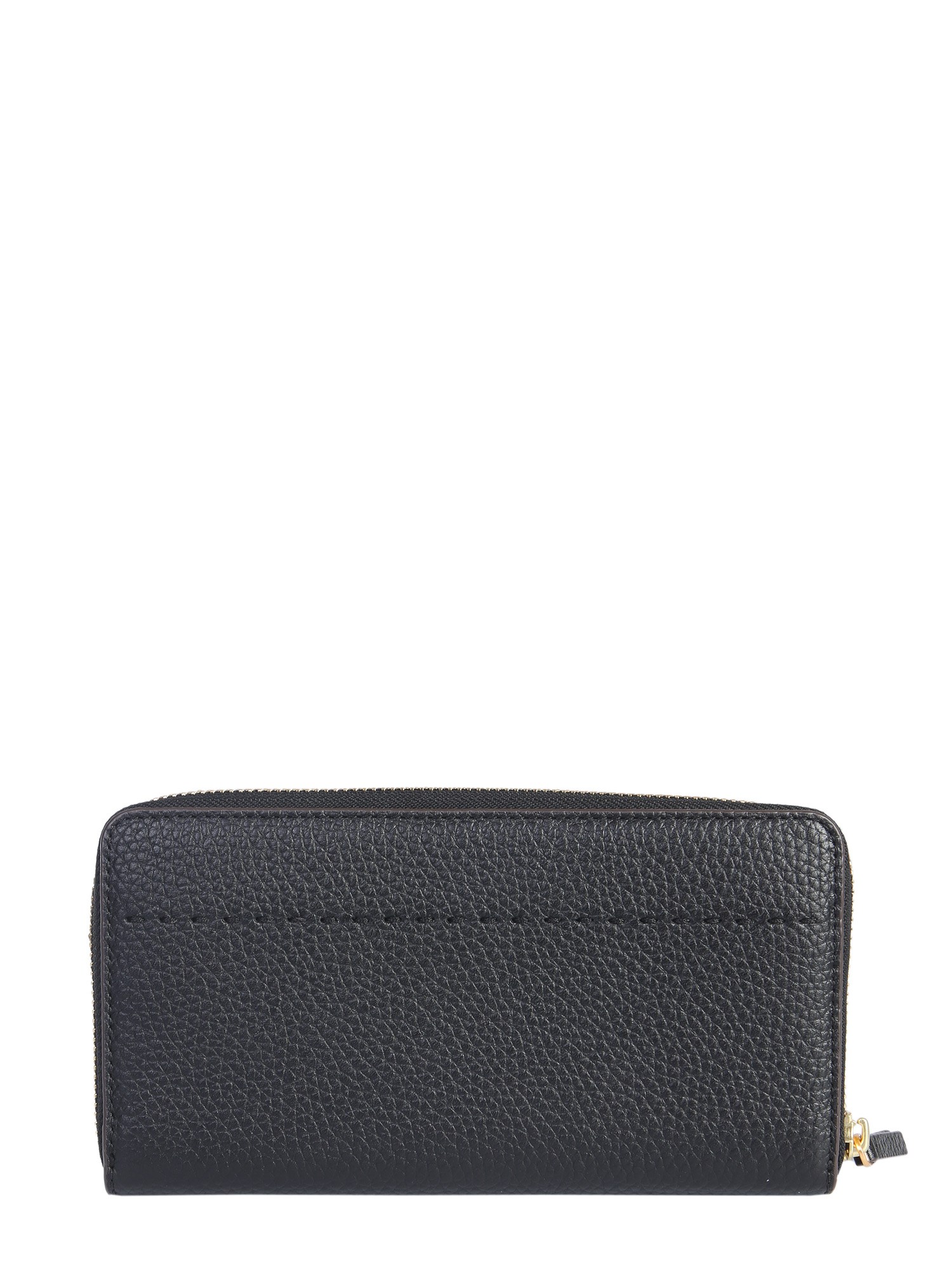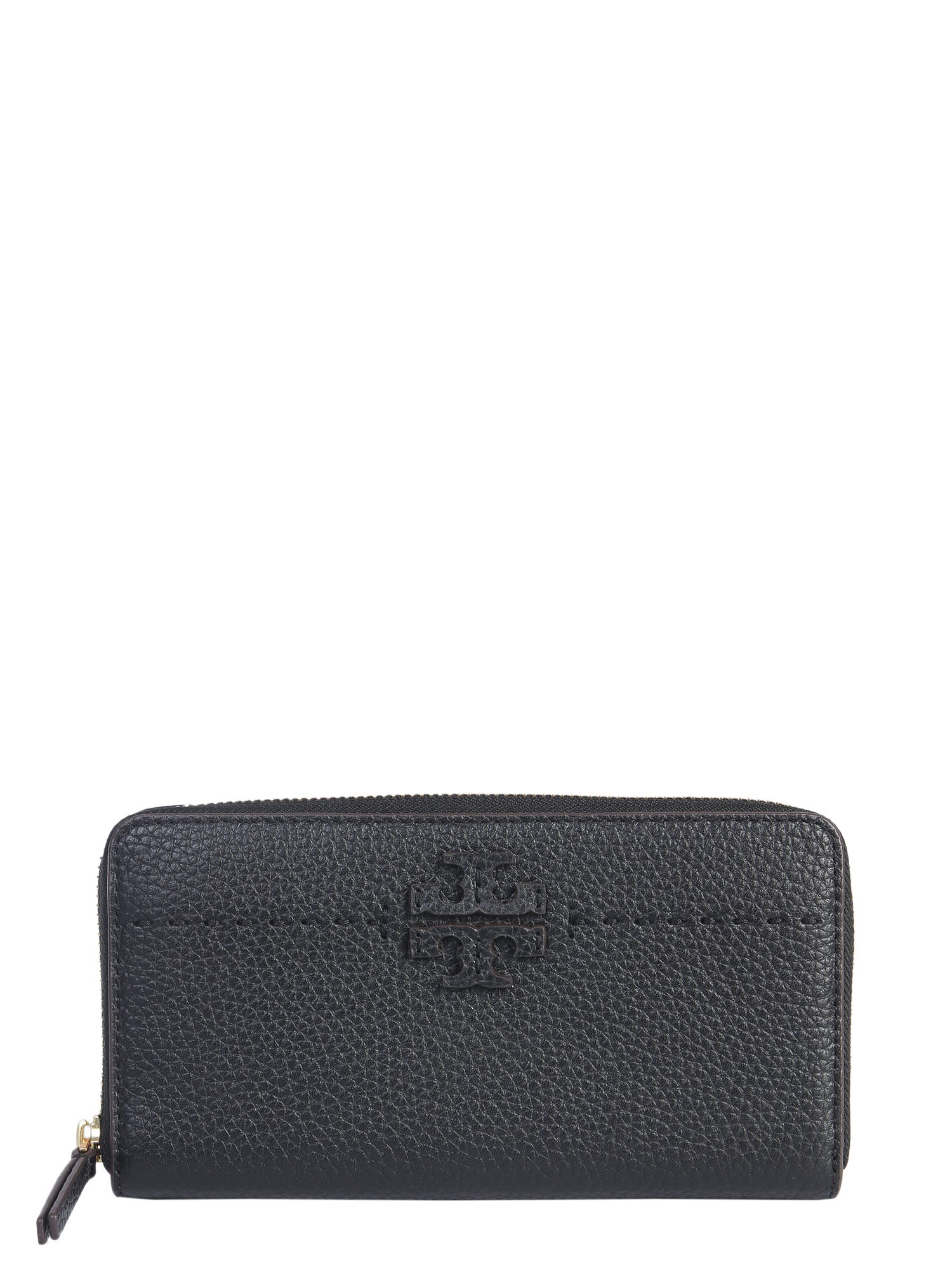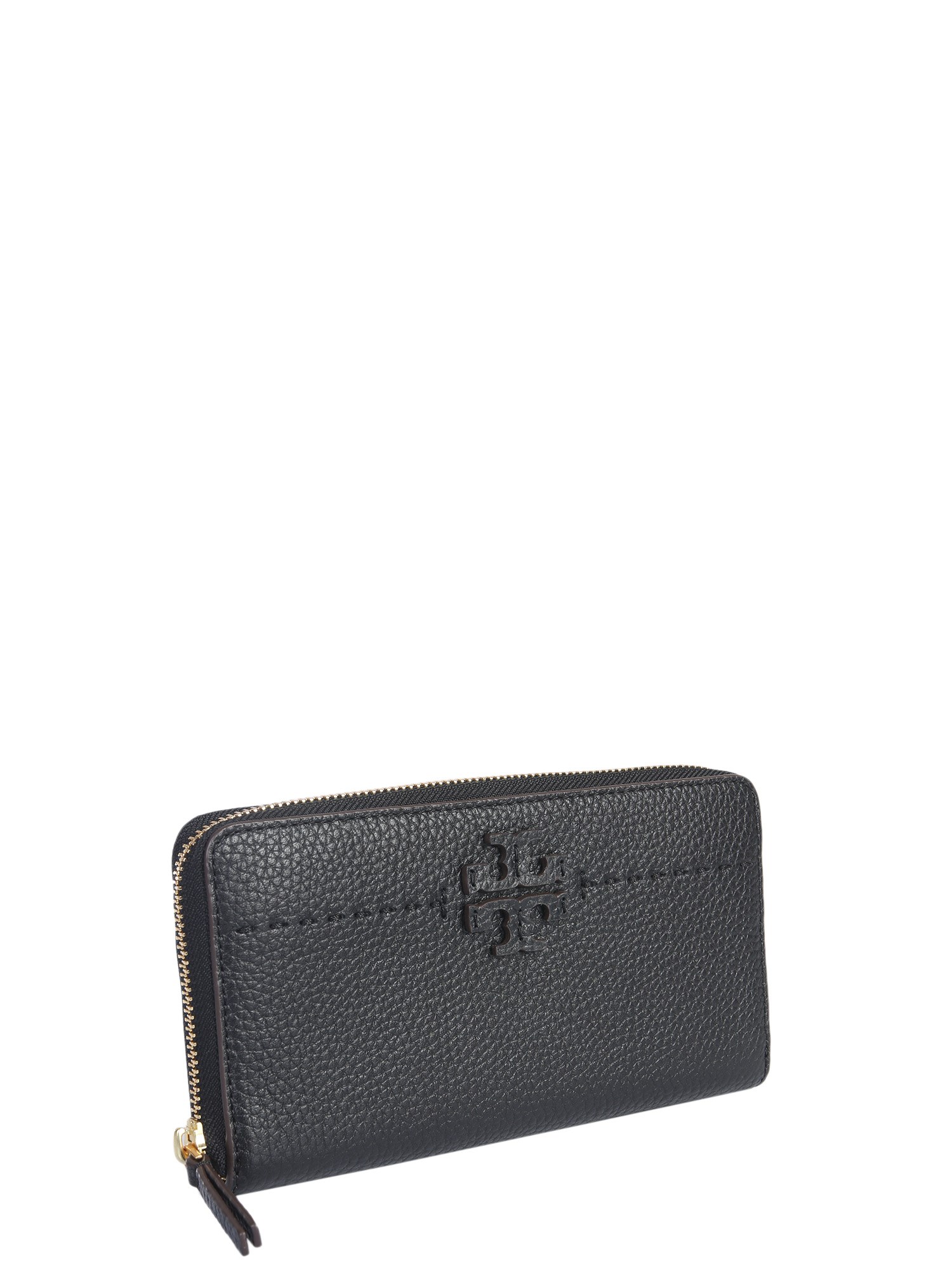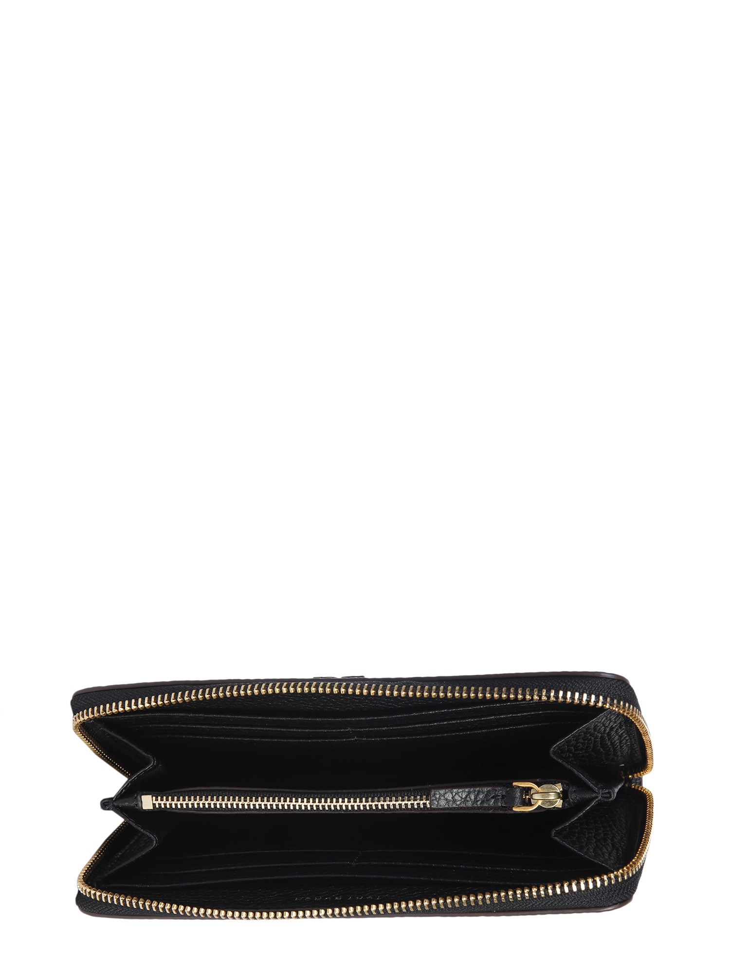 Designed and produced by Tory Burch, this zip-around wallet is a classic accessory to keep all your cards and cash organized. Its elegant leather construction boasts 3D double “T” logo on the front panel. The textured surface and zip puller complete the look of this wallet.