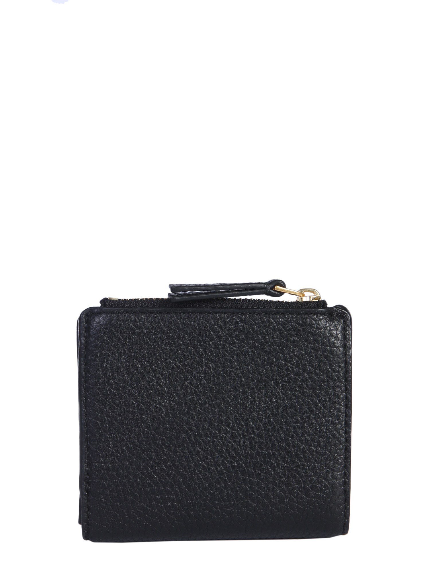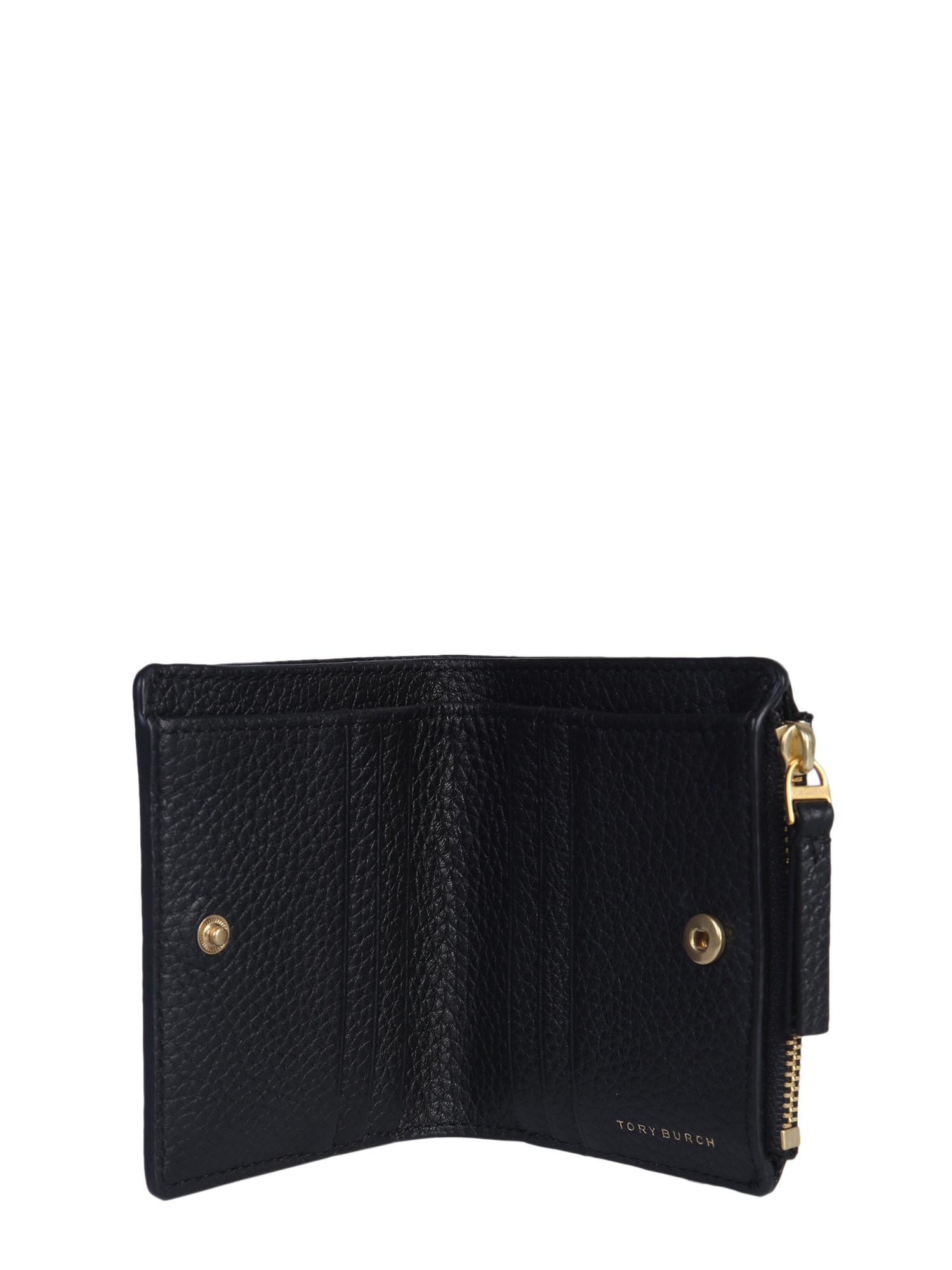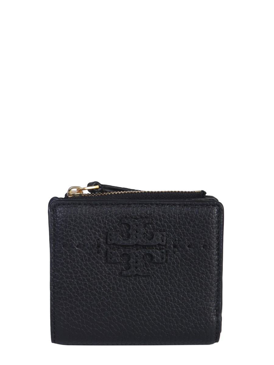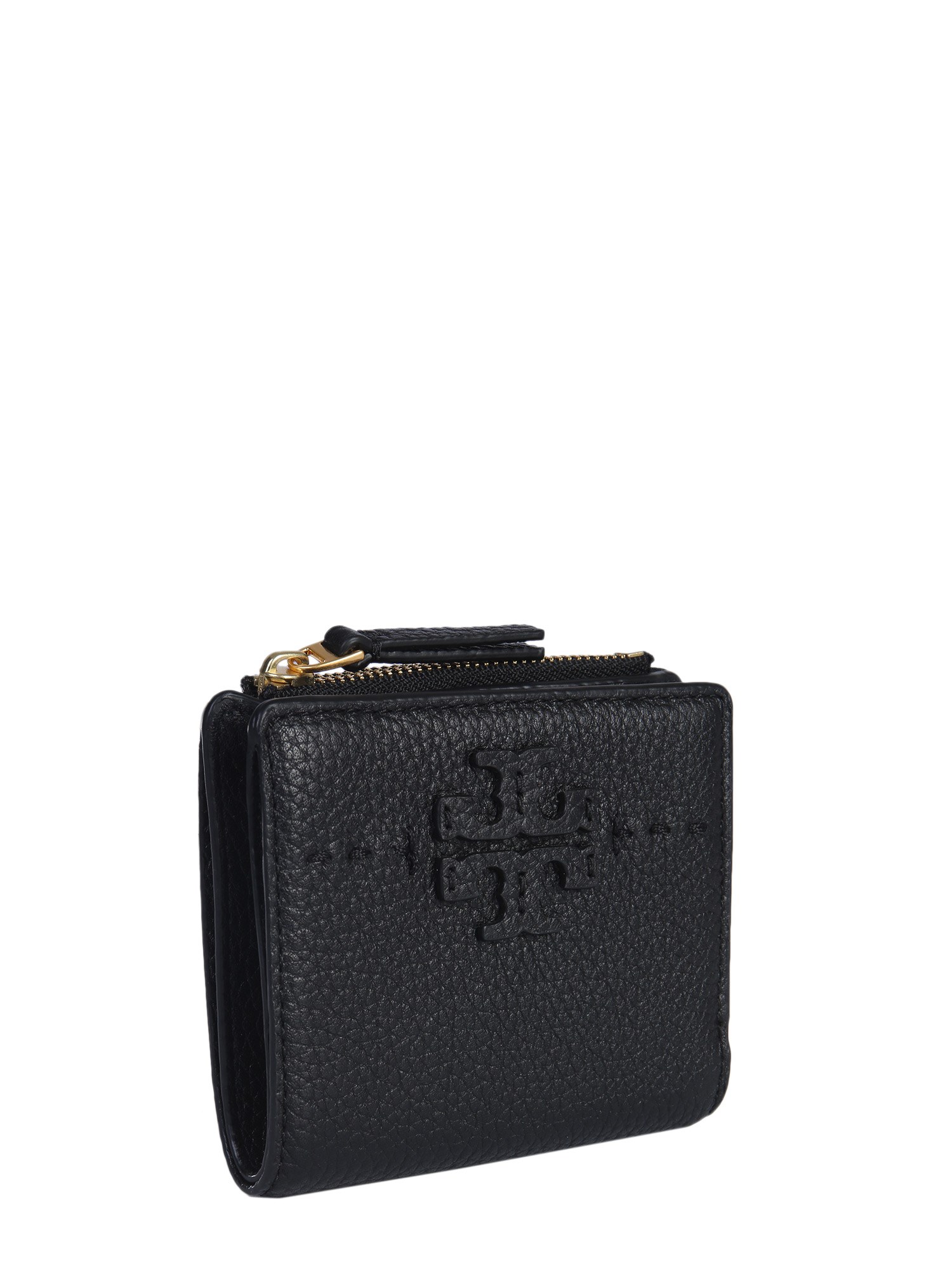 Mini McGraw wallet by Tory Burch is crafted in hammered leather with textured surface for