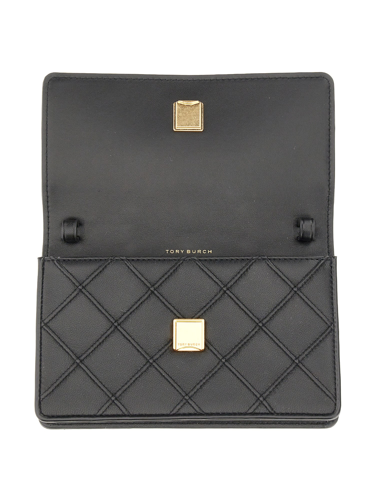 This wallet from Tory Burch is designed to hold all your essentials securely while adding a hint of sophistication to your everyday look. With its sleek and slim profile, this wallet easily fits into your pocket or small bag, allowing for convenient on-the-go access. The unique chain handle adds a trendy twist to the traditional wallet, giving it a modern and fashionable edge.