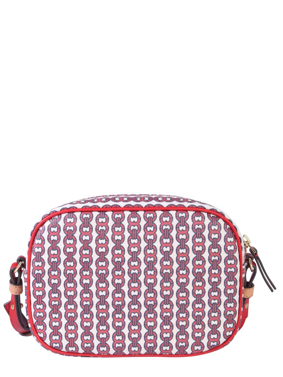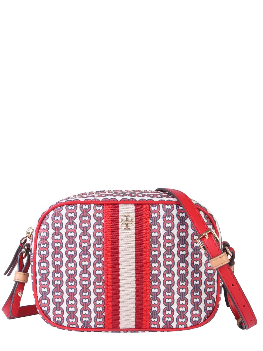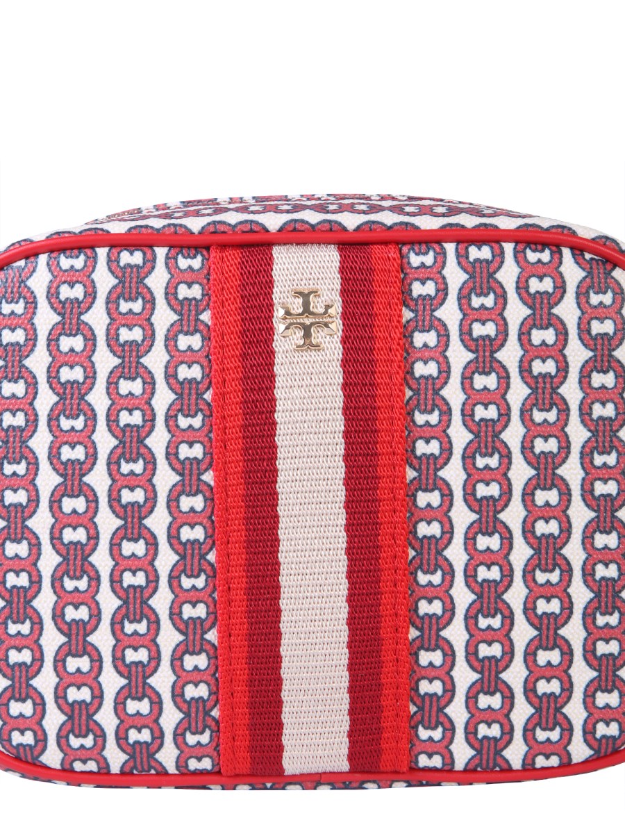 Renew your bag collection by adding this mini Gemini link bag from Tory Burch. The bag is made from fine quality cotton that makes it perfect for everyday use. It features a removable and adjustable shoulder strap with a zip closure that safely keeps everything inside. The gold-finished metal accessories add a refining touch to its design.