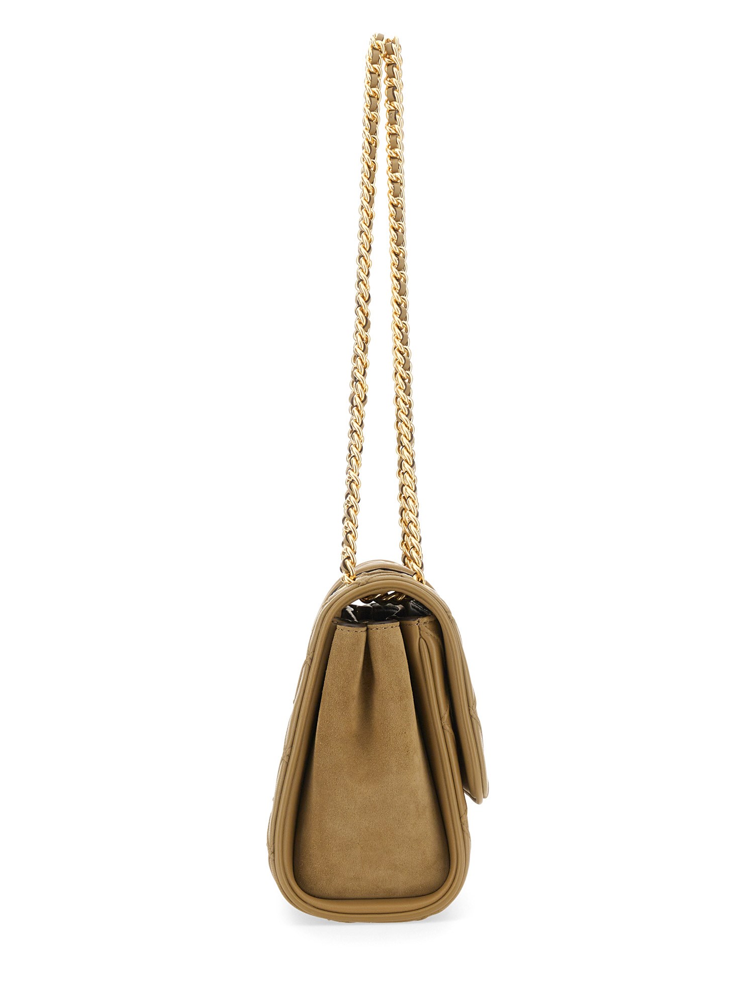 Enduring glamour. The new Fleming Soft Convertible Shoulder Bag is updated with pintucks in a diamond pattern and the softest leather. The feminine silhouette is sealed with an oversized bombé Double T. Braided with brushed chain, the strap can be worn long or short.