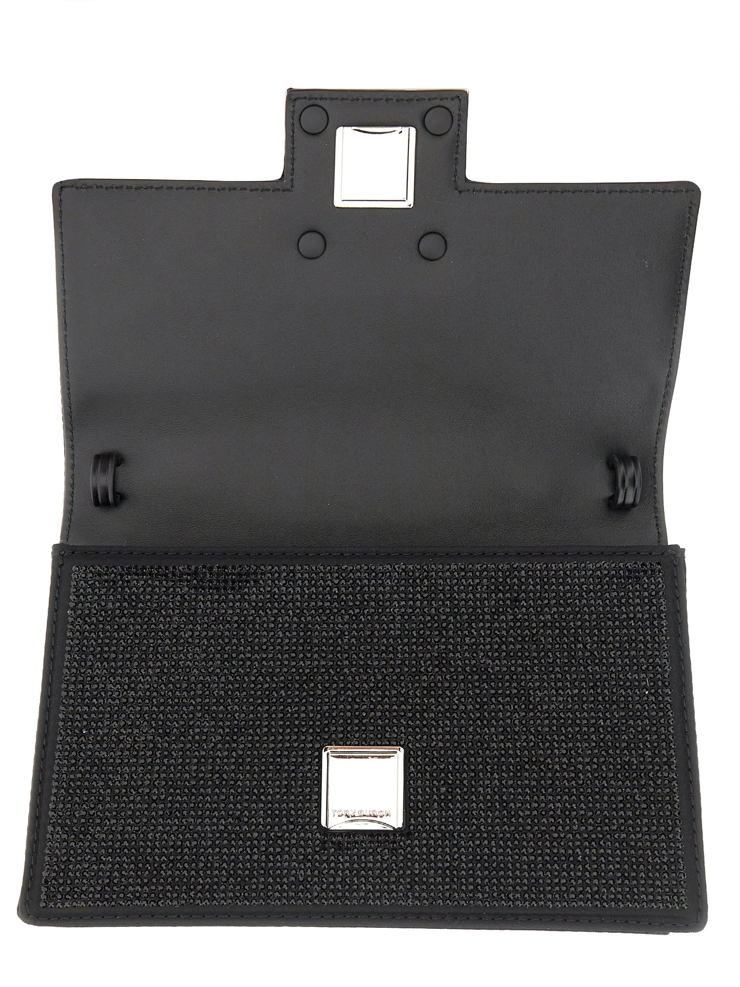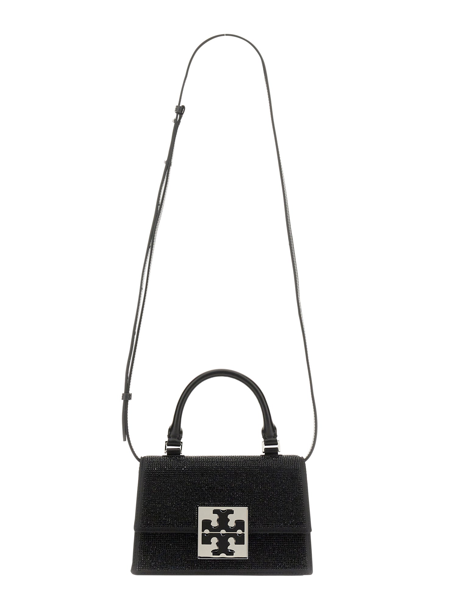 Upgrade your style game with Tory Burch’s Double Handle Front Buckle Closure Shoulder Bag. Adorned with sleek silver hardware, this bag exudes an elegant and polished vibe. Its metallic accents effortlessly elevate your outfit, making it perfect for both formal events and casual outings.