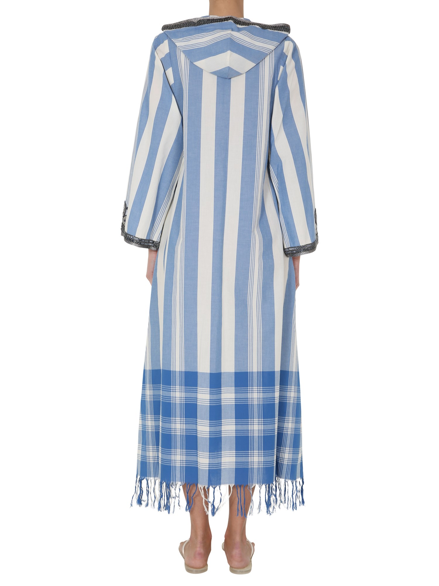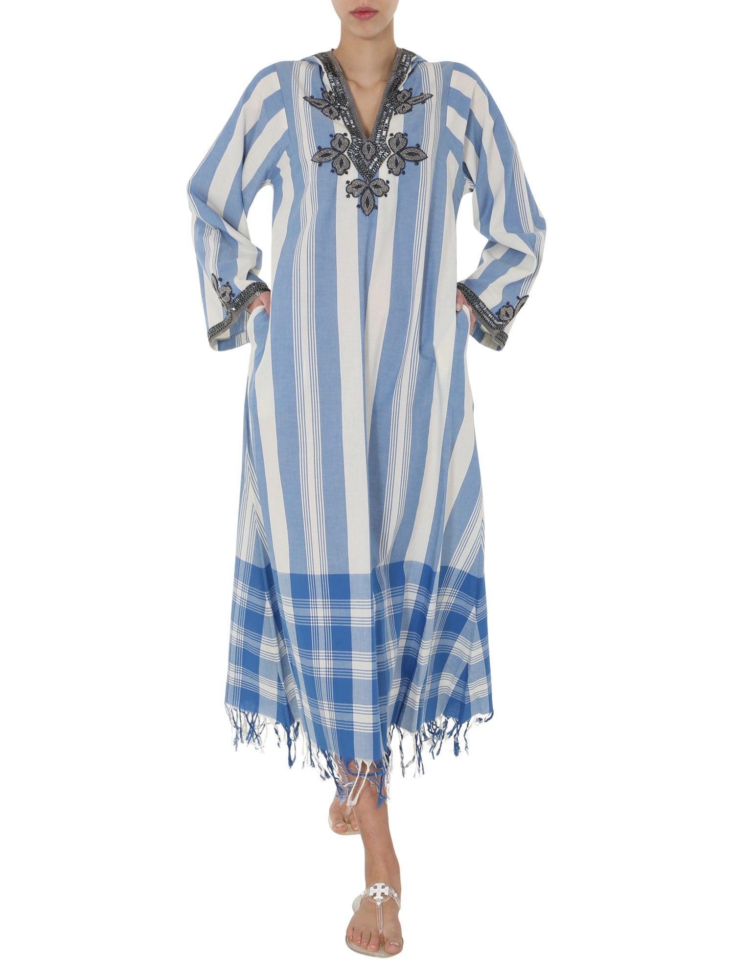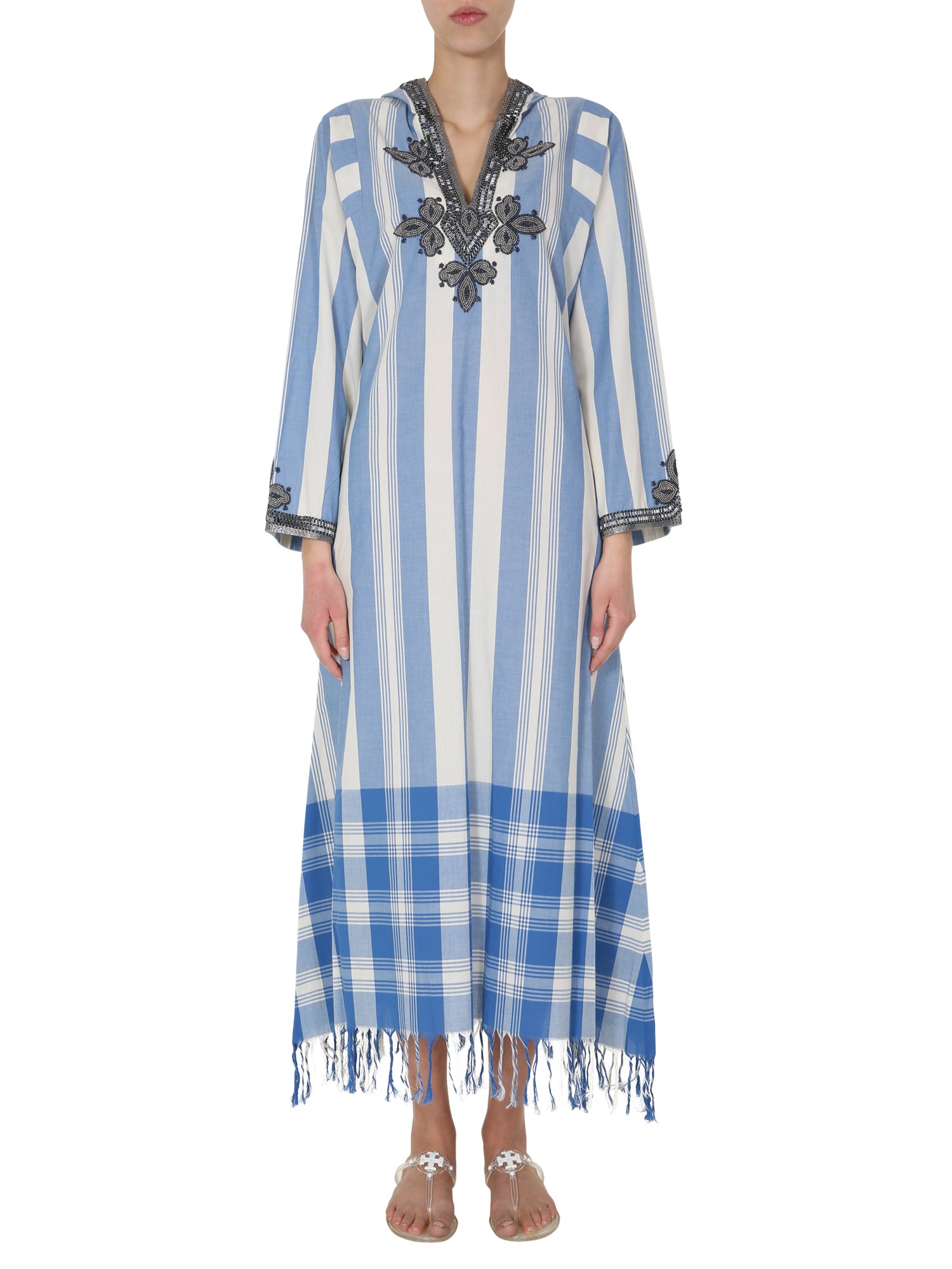 Perfect for the beach, this caftan dress from Tory Burch is likely to be the softest thing you’ve ever worn. The loose-fit and classic striped print adds to its irresistibility. It has a flattery V-neckline which is adorned with beads. All you need is pair of slippers to complete the look.