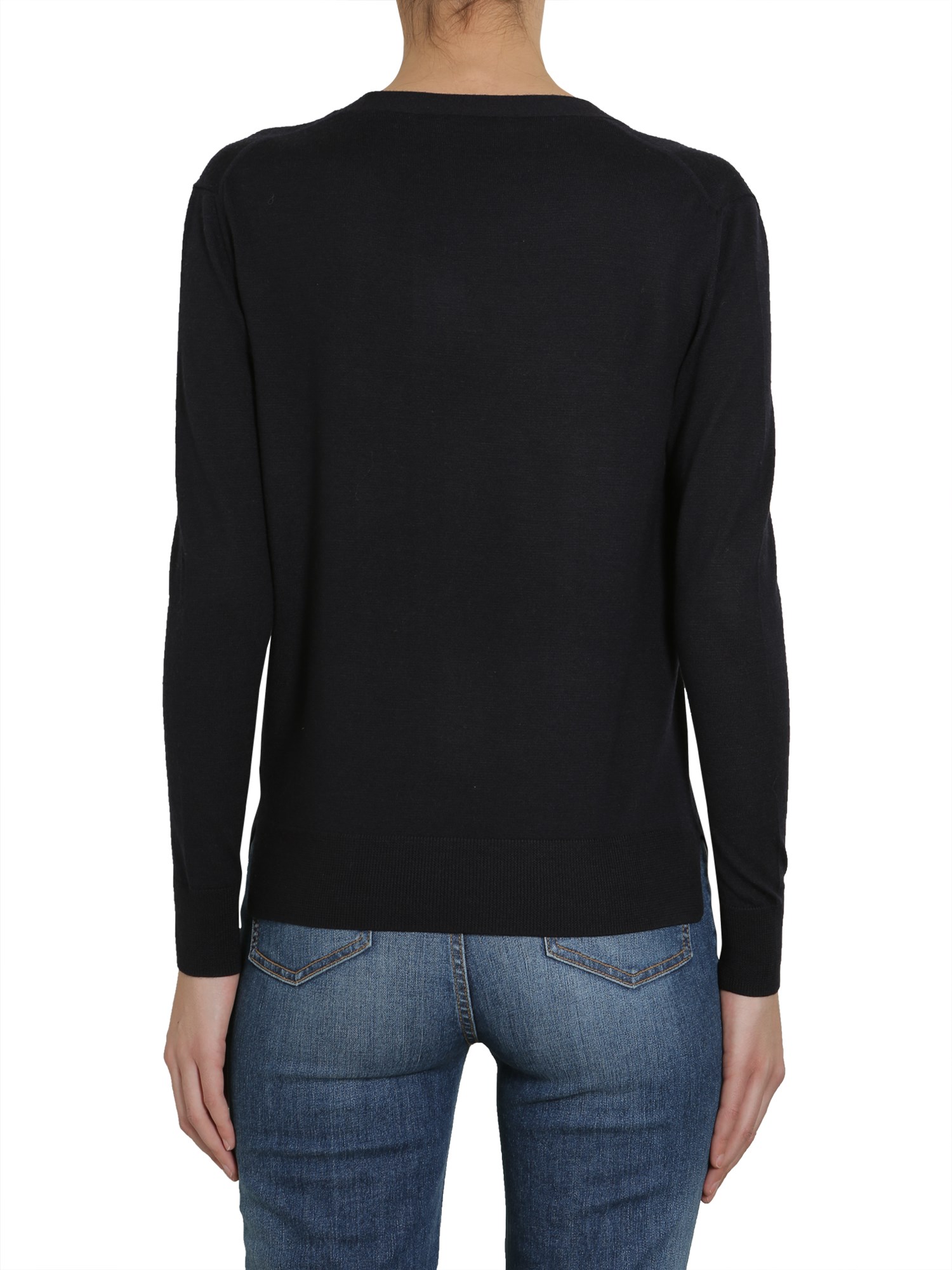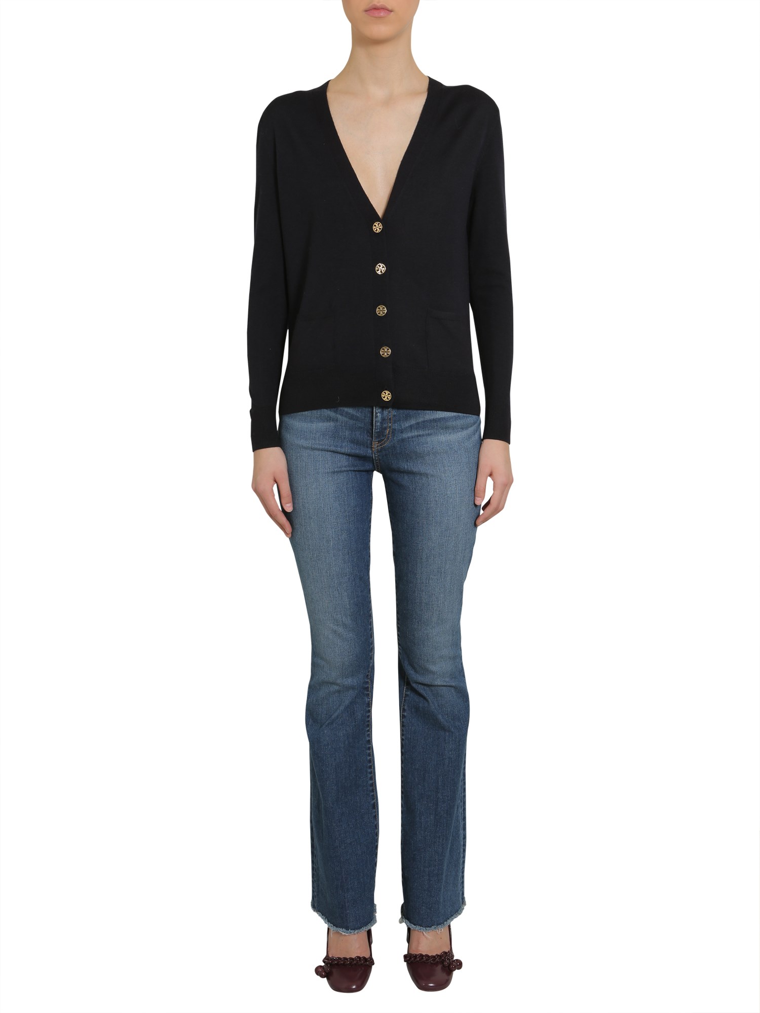 Elevated yet easy, this “Madeline” cardigan from Tory Burch gives this everyday layer a luxurious feel via its 100% merino wool fabric. Besides the great look, the fabric also keeps you warm during cold days. Its amazing design features a V-neck, long sleeves, ribbed cuffs, and button that can easily be carried for a laid-back look. Also, the two front pockets are added for maximum functionality.