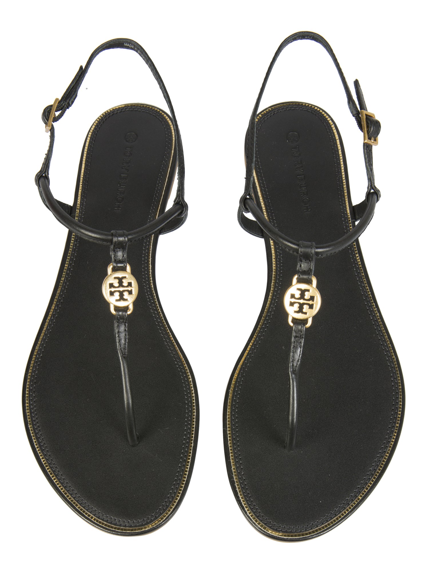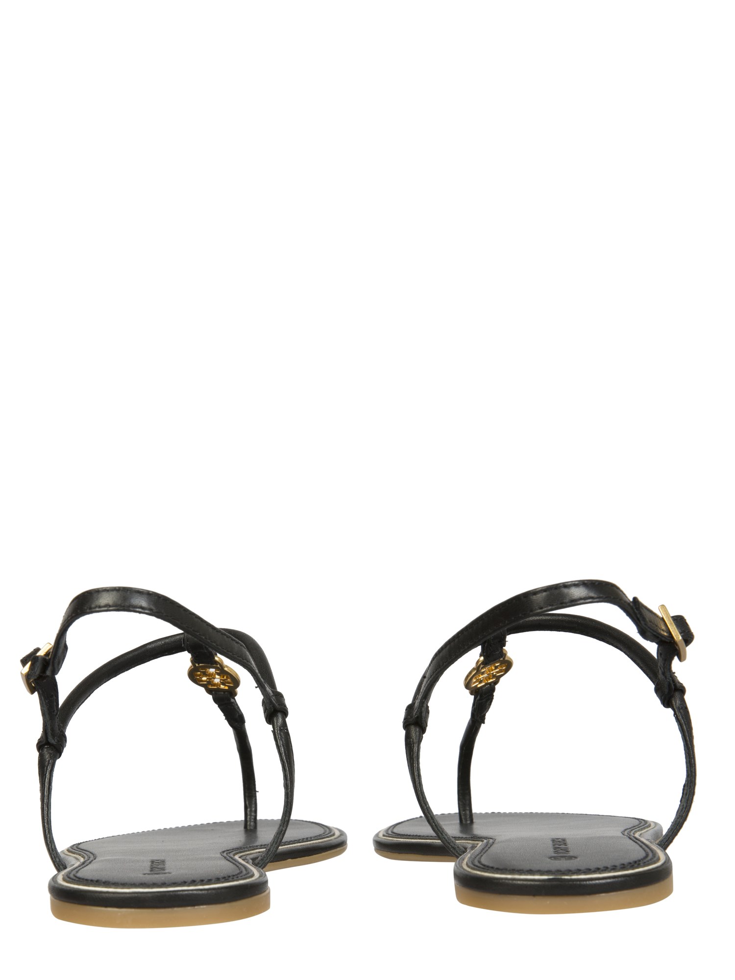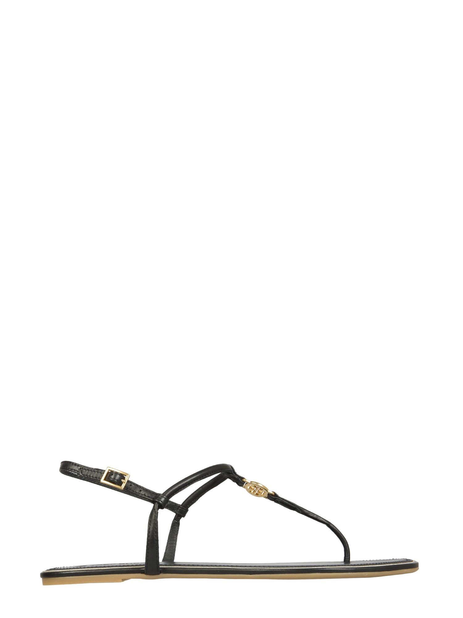 These Emmy Sandals by Tory Burch is sure to make an impression. The footwear features a leather upper with a logo that adds a stylish touch. The sandals come with adjustable buckle closure. The soles are of rubber for your easy walk. The metal accessories which the bag features come with a golden finish.