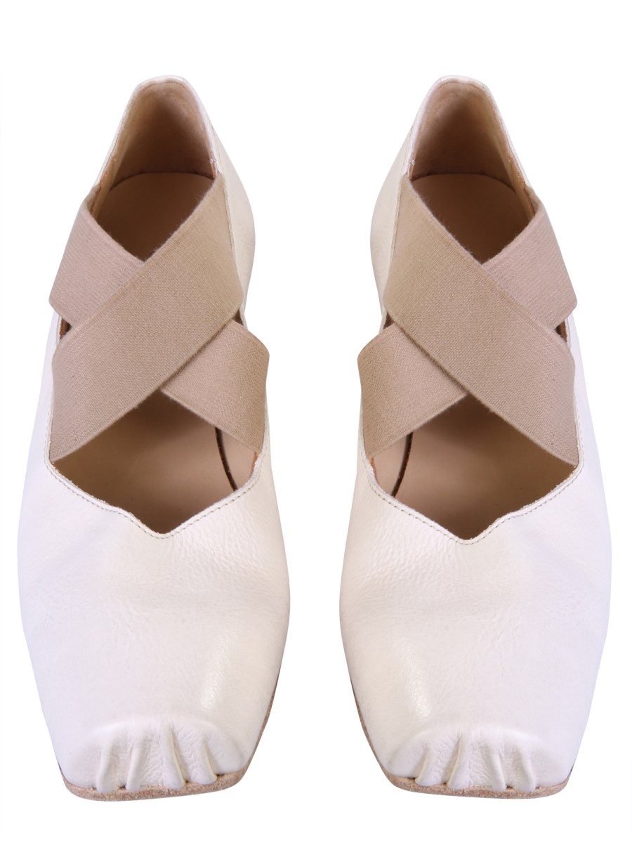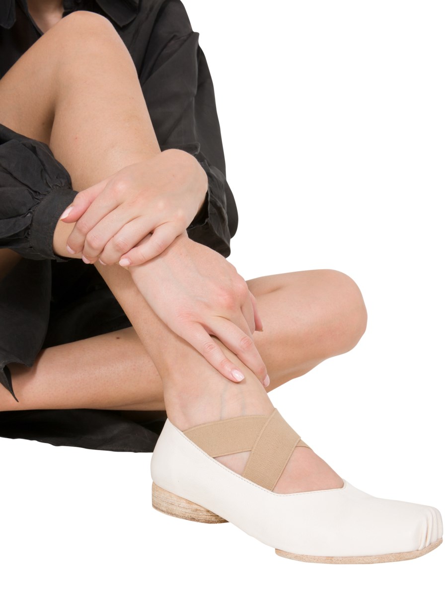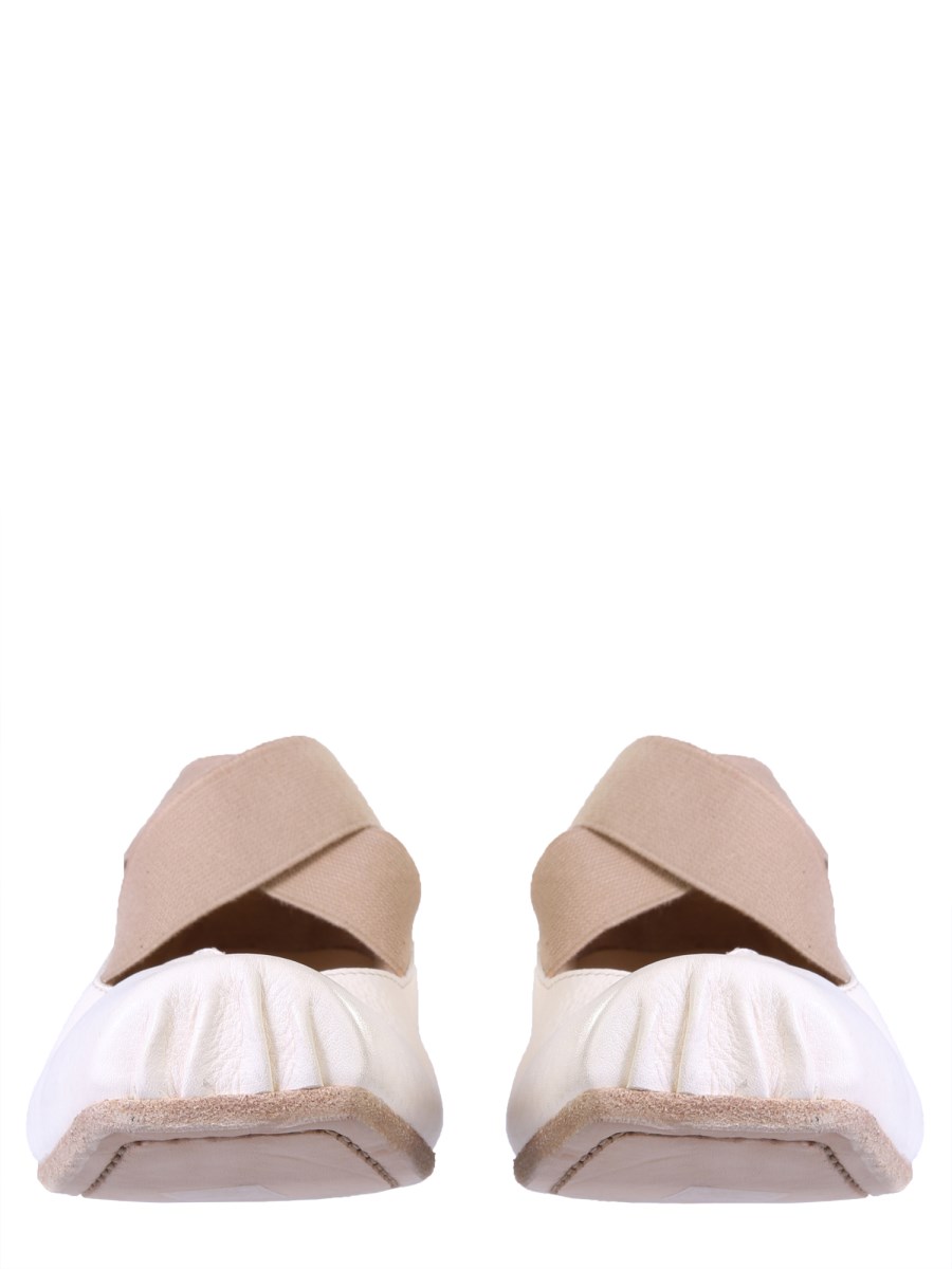Feel light as a feather and get ready to dance the night away in these leather ballerinas by Uma Wang. Featuring a slip-on design, these shoes are easy to put on and take off. Made of fine-quality leather, you can easily dedicate a permanent spot for them in your collection.You can take the full advantage of its fanciness and match it with anything in your wardrobe.