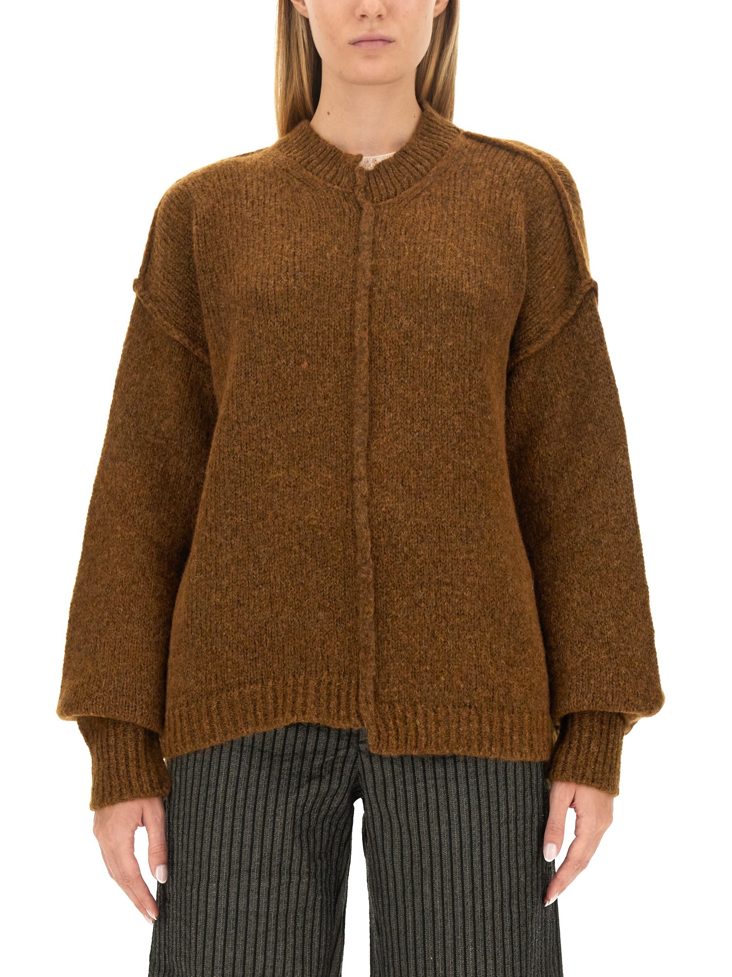 This sweater from Uma Wang is made from alpaca wool, which has a luxurious feel and is resistant to pilling and lint. It's perfect for a cosy day at home or an outdoor adventure. It is soft, warm, and has a silky feel. It's warm and cosy, which is why it's been the fabric of choice for many fashionable items.