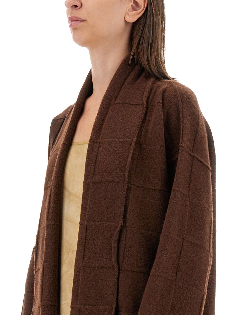 The oversized fit cardigan from Uma Wang offers a contemporary blend of comfort and style, designed for those who appreciate relaxed elegance. Crafted from high-quality materials, this cardigan features a loose silhouette that drapes effortlessly, making it an ideal layering piece for any wardrobe. Its versatile design allows for easy pairing with both casual and formal outfits, while the unique detailing reflects Uma Wang's signature aesthetic. Perfect for transitional seasons, this cardigan is a must-have for fashion-forward individuals seeking both warmth and sophistication.