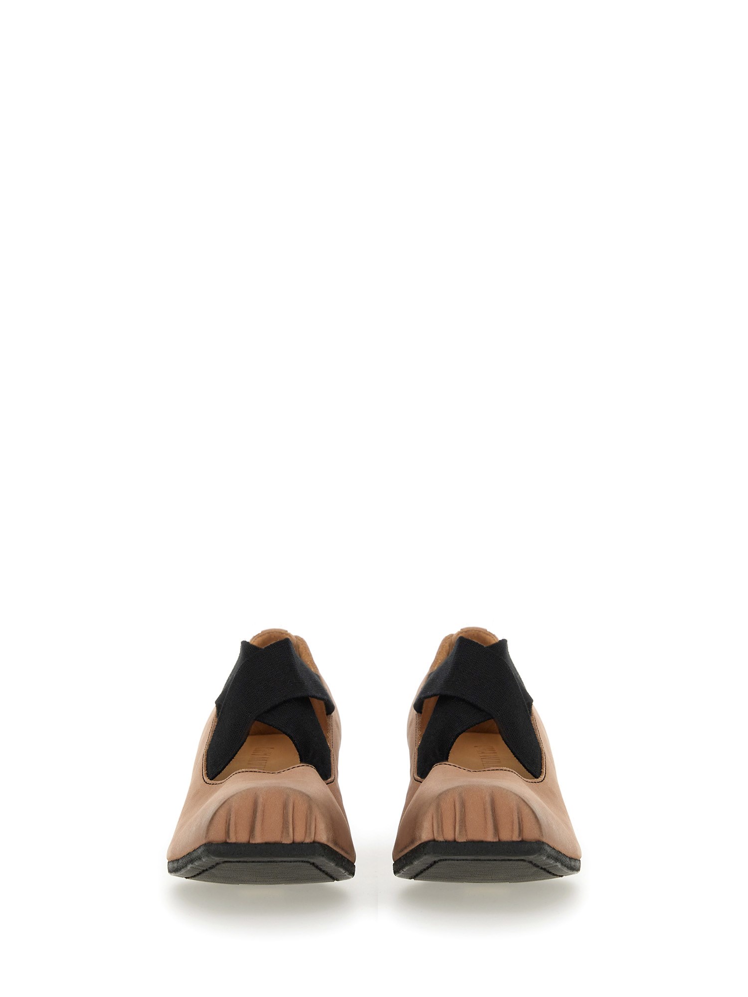 LEATHER BALLERINA WITH ELASTIC BAND AND RUBBER TOE CAP