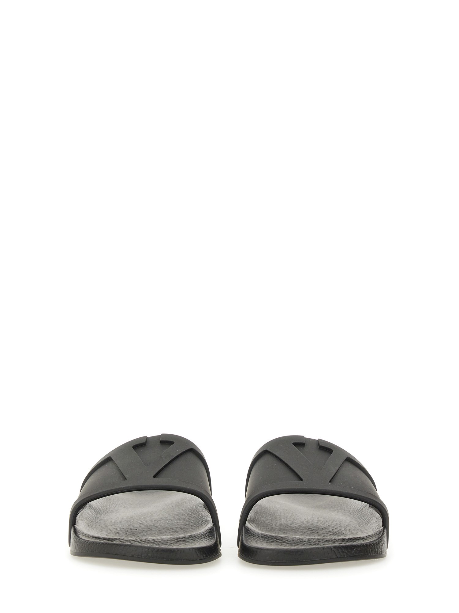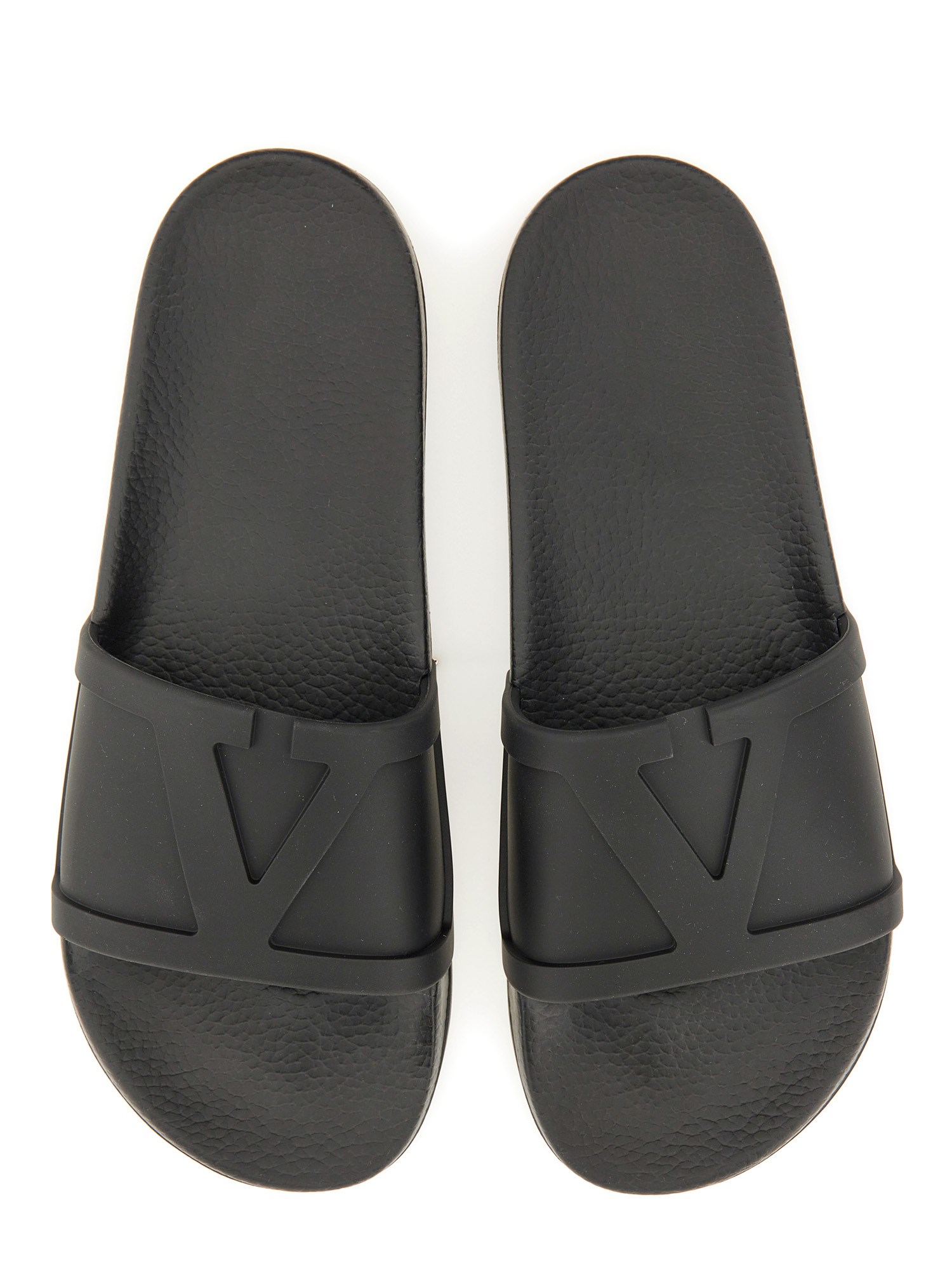 Experience unparalleled comfort and style with the "Coolside" slide sandal from Valentino Garavani. Crafted with premium materials, these sandals feature a sleek design that effortlessly combines luxury and casual elegance. The cushioned footbed ensures all-day comfort, while the iconic Valentino branding adds a touch of sophistication. Perfect for both beach outings and urban adventures, the "Coolside" slide sandal is a must-have addition to your footwear collection. Elevate your summer wardrobe with this versatile and chic option.